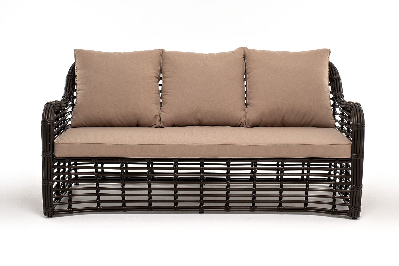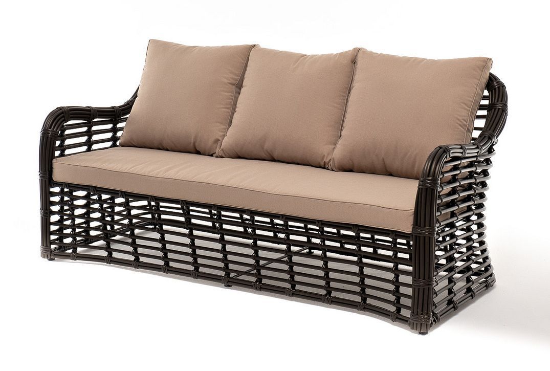 В комплекте с трехместным диваном идут мягкие подушки для комфортного расположения. Чехлы съёмные бежевого цвета из высококлассного полиэстера с плотностью 300гр/м2. Защитные свойства ткани усиливаются при помощи влагоотталкивающей пропитки.