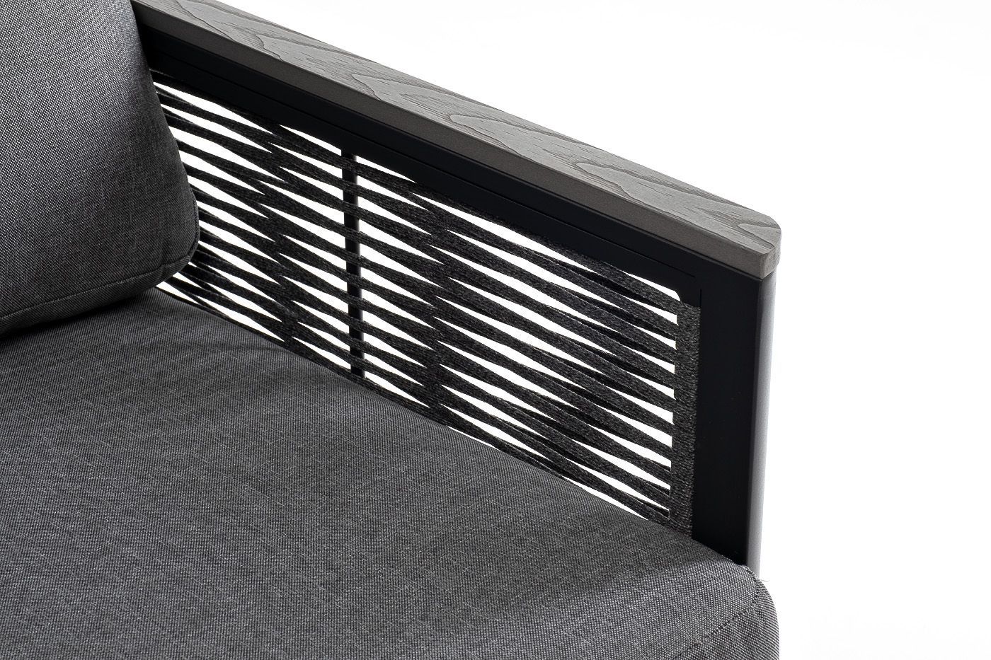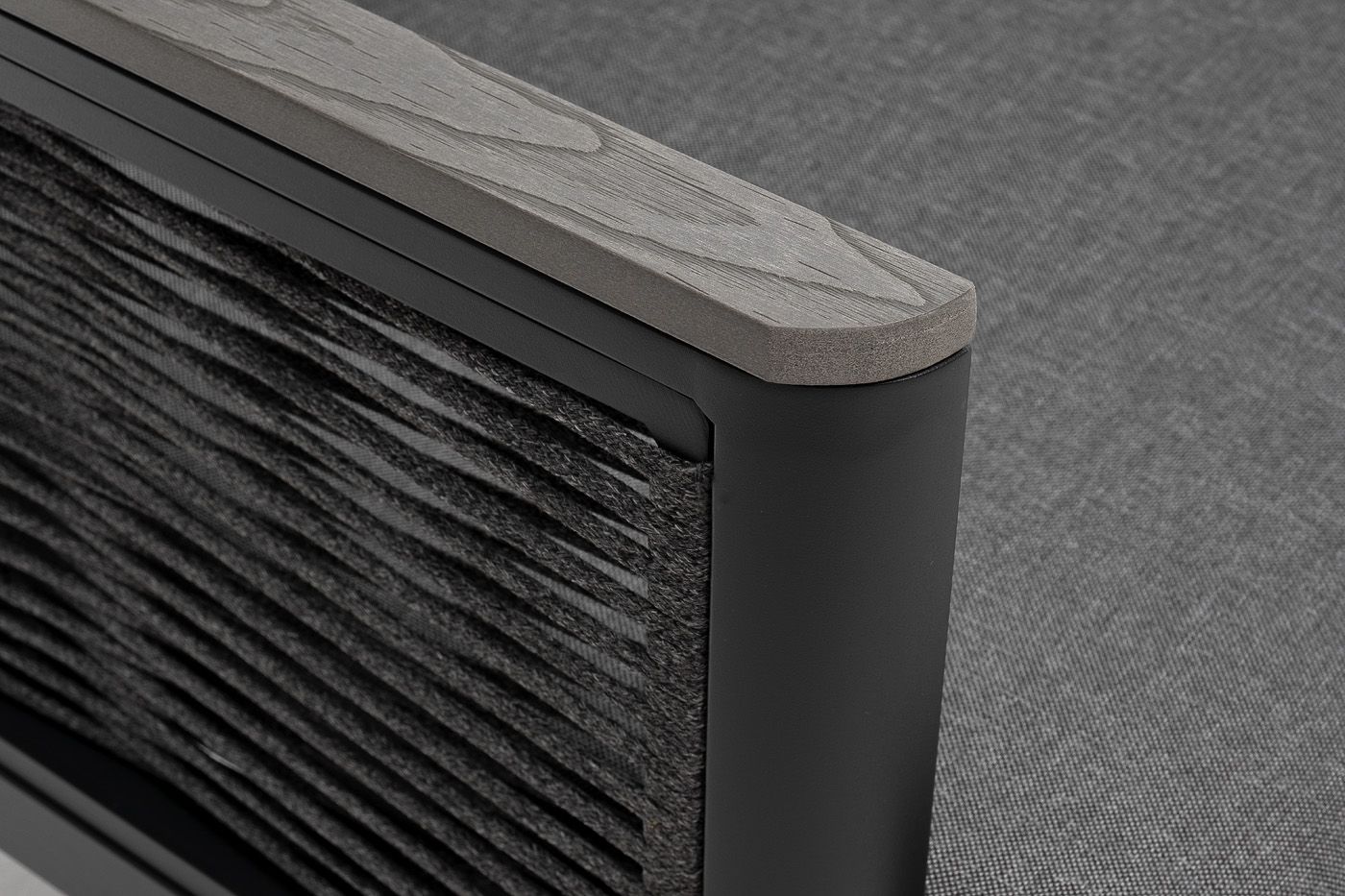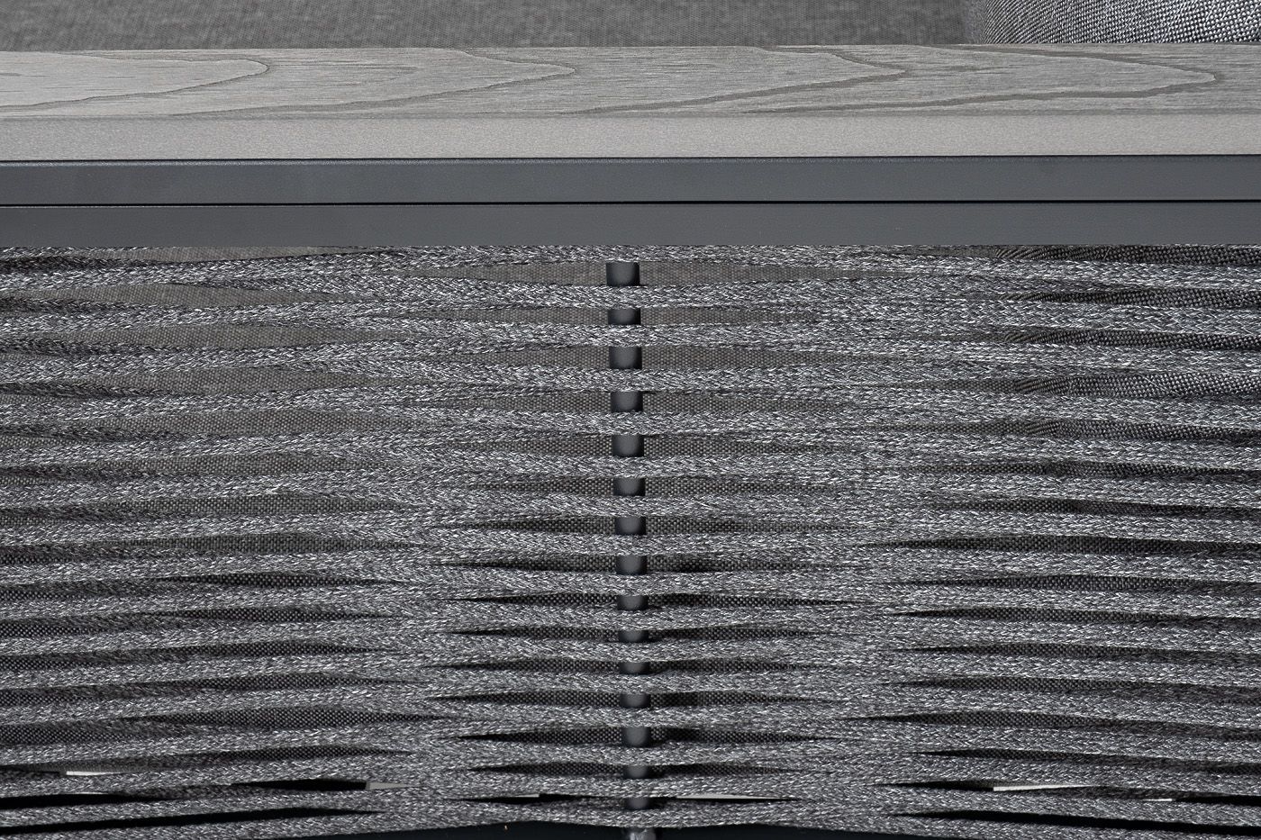 Диван можно трансформировать под нужный размер и расположение. Состоит из алюминиевого каркаса темно-серого цвета, который дополняет серая оплетка из эластичных синтетических лент, состоящих из высокопрочных полиэфирных волокон.