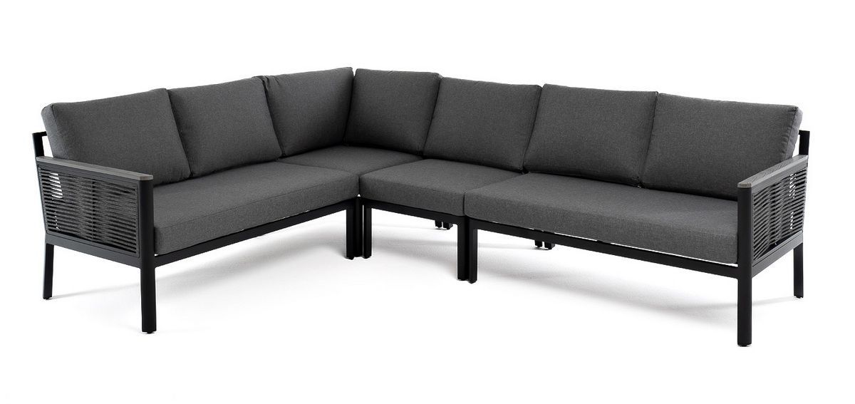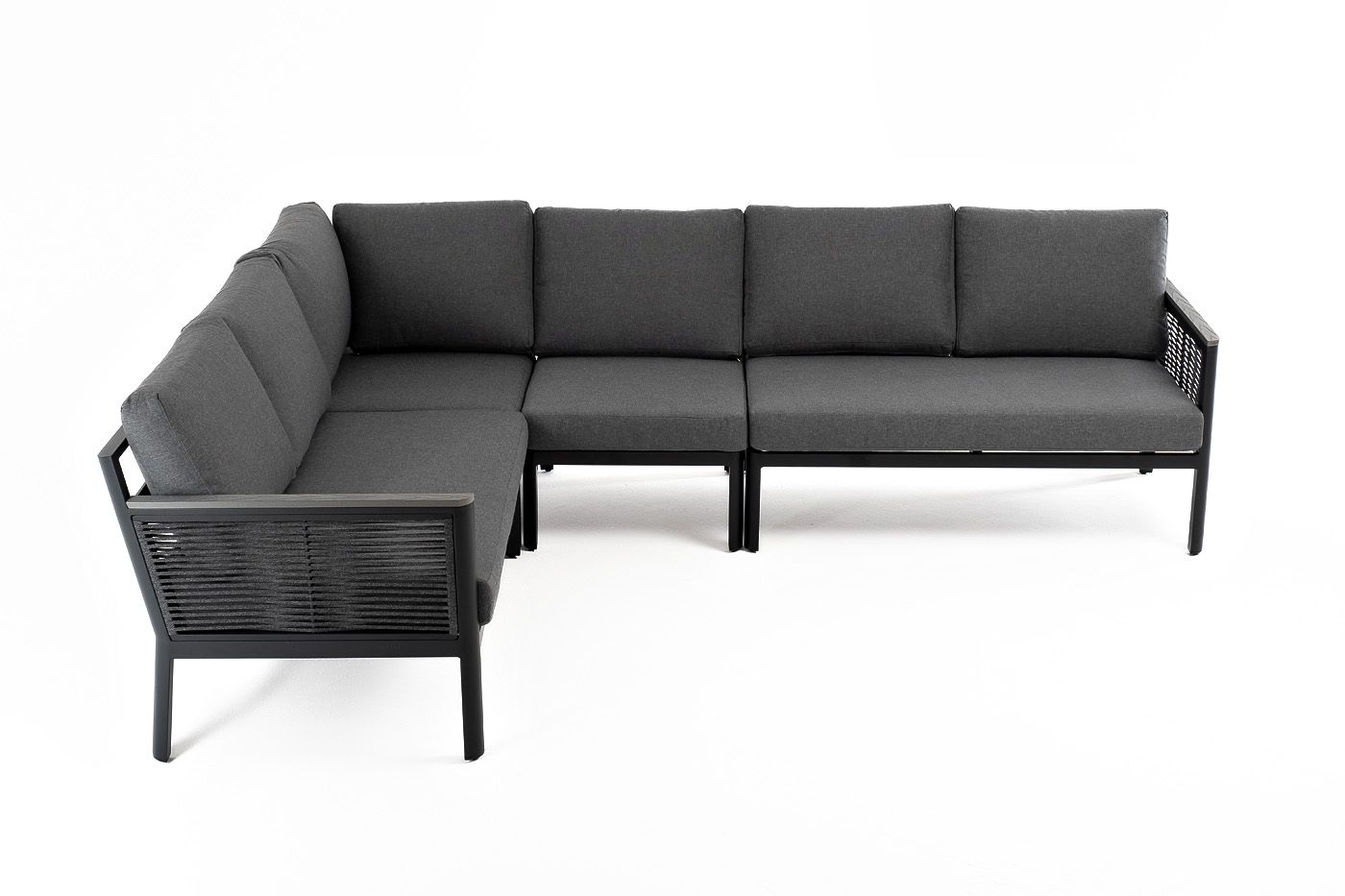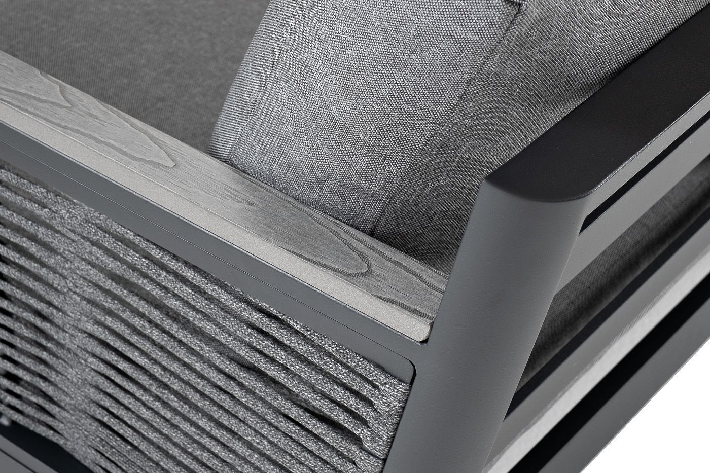 Диван можно трансформировать под нужный размер и расположение. Состоит из алюминиевого каркаса темно-серого цвета, который дополняет серая оплетка из эластичных синтетических лент, состоящих из высокопрочных полиэфирных волокон.