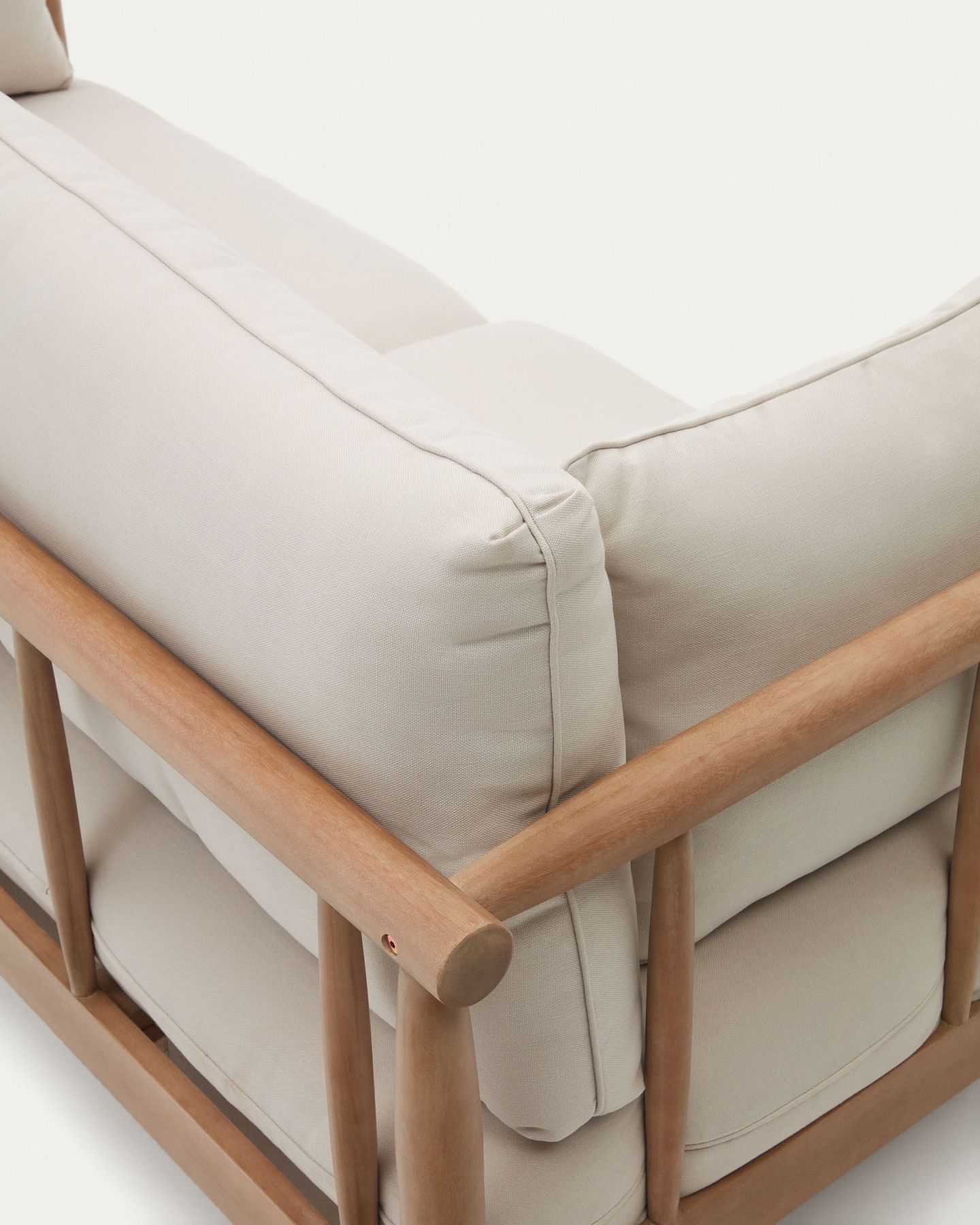 Диван полностью сделан из древесины эвкалипта, которая покрыта лаком для защиты от атмосферных воздействий.