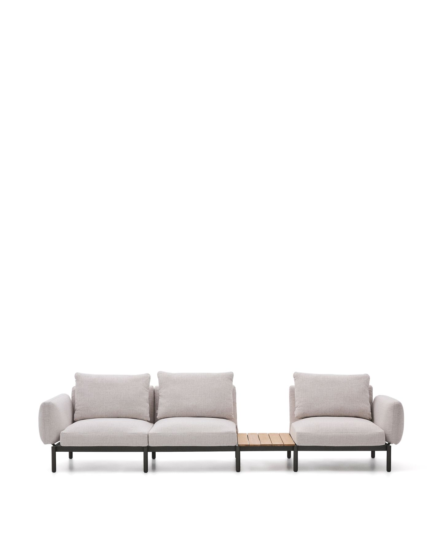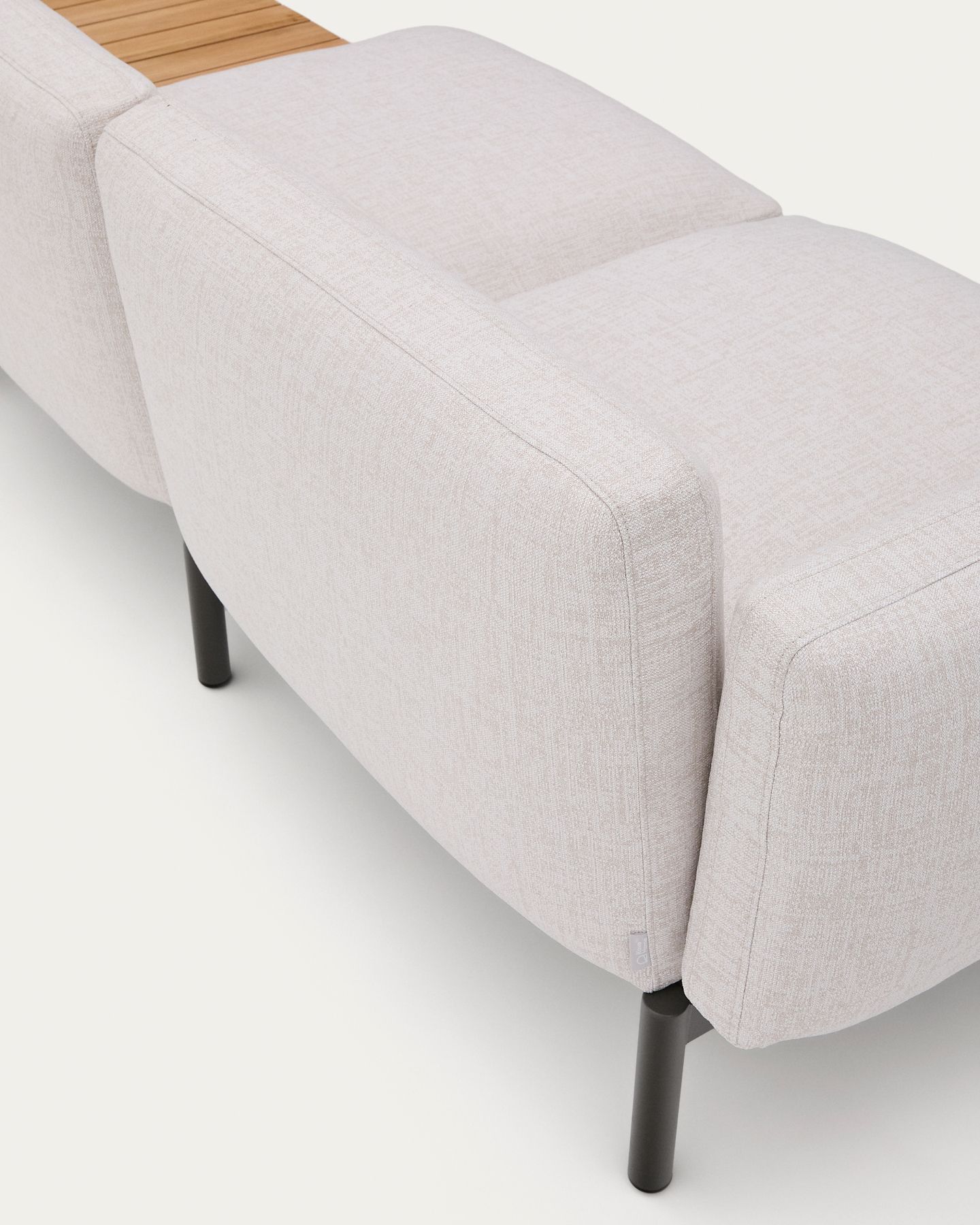 Sorells — это гораздо больше, чем просто модульный диван, это ключевой элемент для преобразования вашего пространства на открытом воздухе с аутентичным стилем и комфортом. Разработанный эксклюзивно Made Studio для Kave Home, Sorells сочетает в себе универсальность модульной конструкции с прочностью высококачественных материалов. Его алюминиевая структура, которая легкая и устойчива к ржавчине, коррозии и ультрафиолетовому излучению, обеспечивает исключительную долговечность на открытом воздухе. К этому добавляется бежевая обивка, призванная привнести изысканность и тепло.
