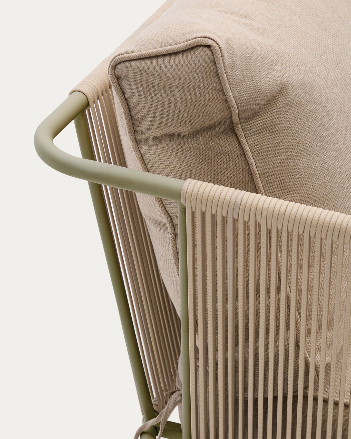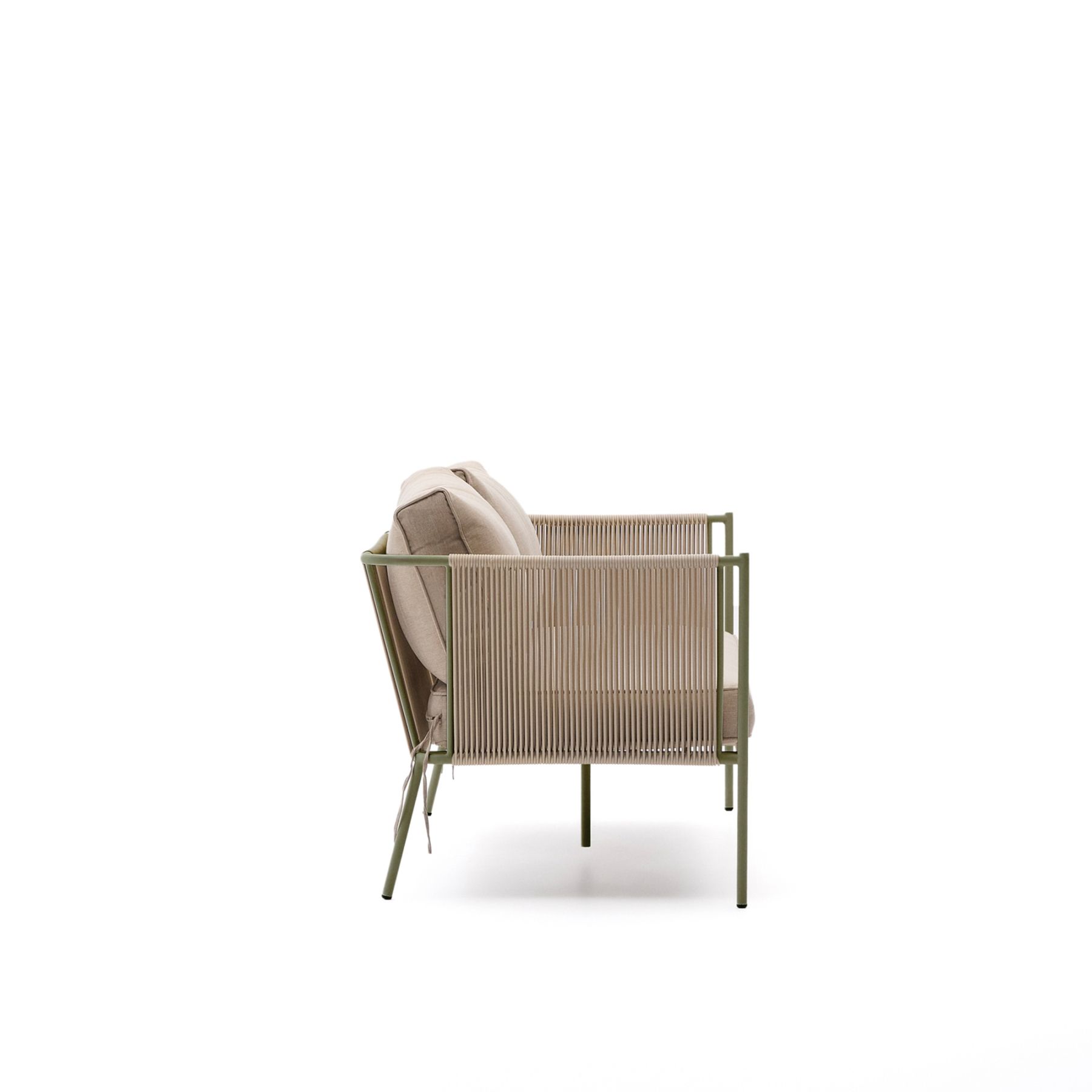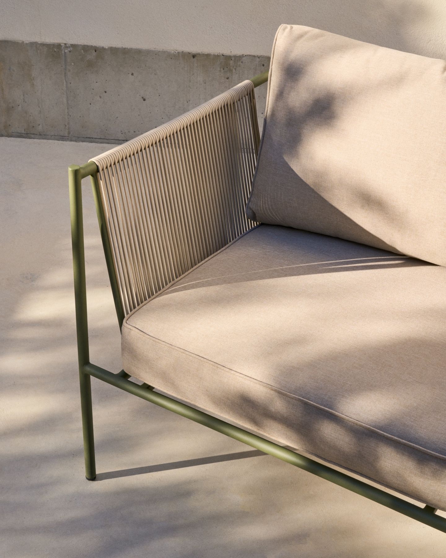 Дизайн коллекции Zivia отличается прямыми и строгими линиями, обеспечивая минималистский и современный стиль. Ее изделия сочетают в себе прочность оцинкованной стали и элегантность плетеного вручную синтетического канатного шнура. Идеальный баланс комфорта и долговечности для ваших уличных пространств.