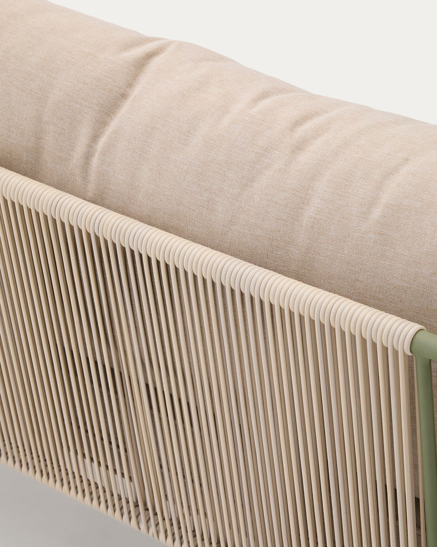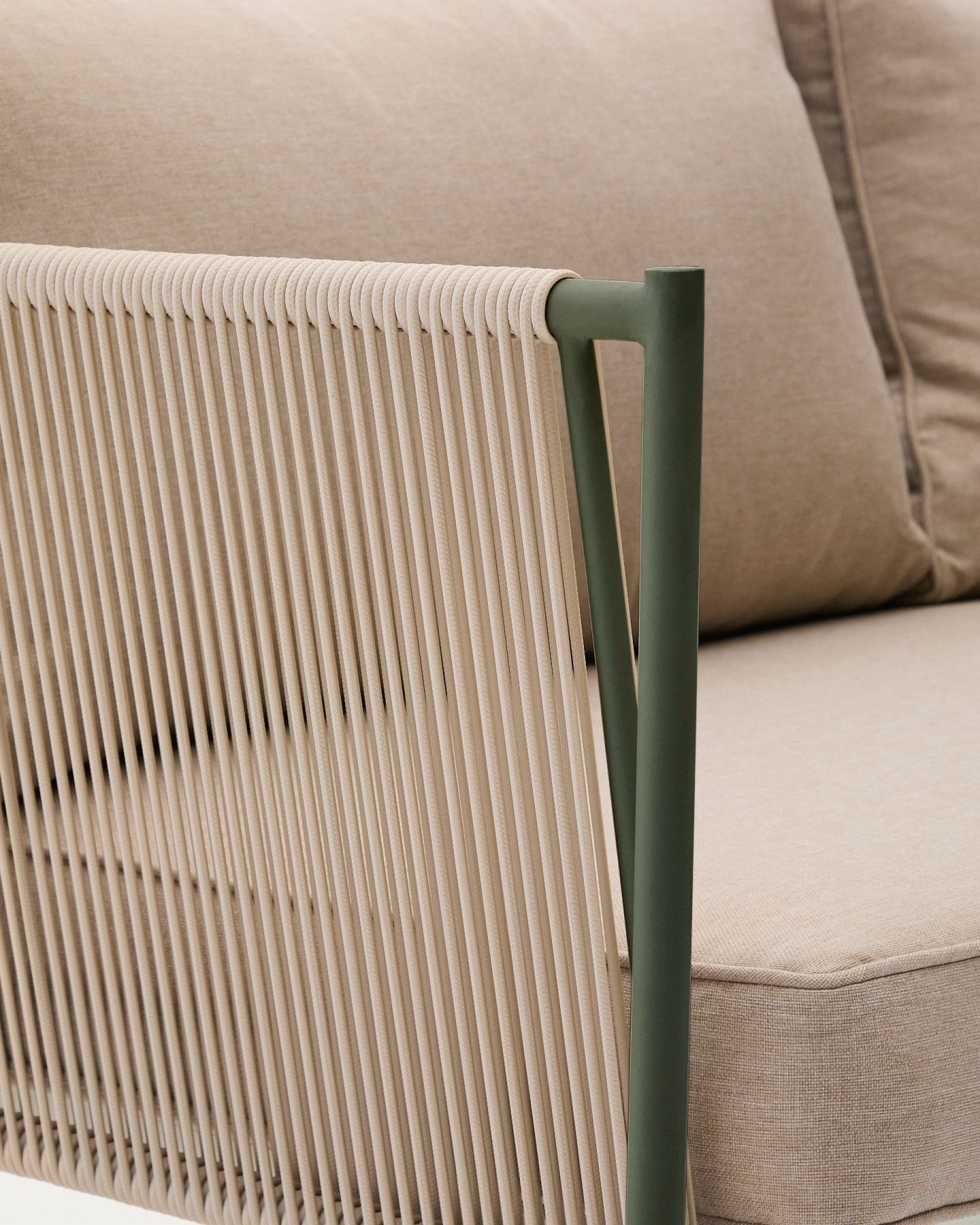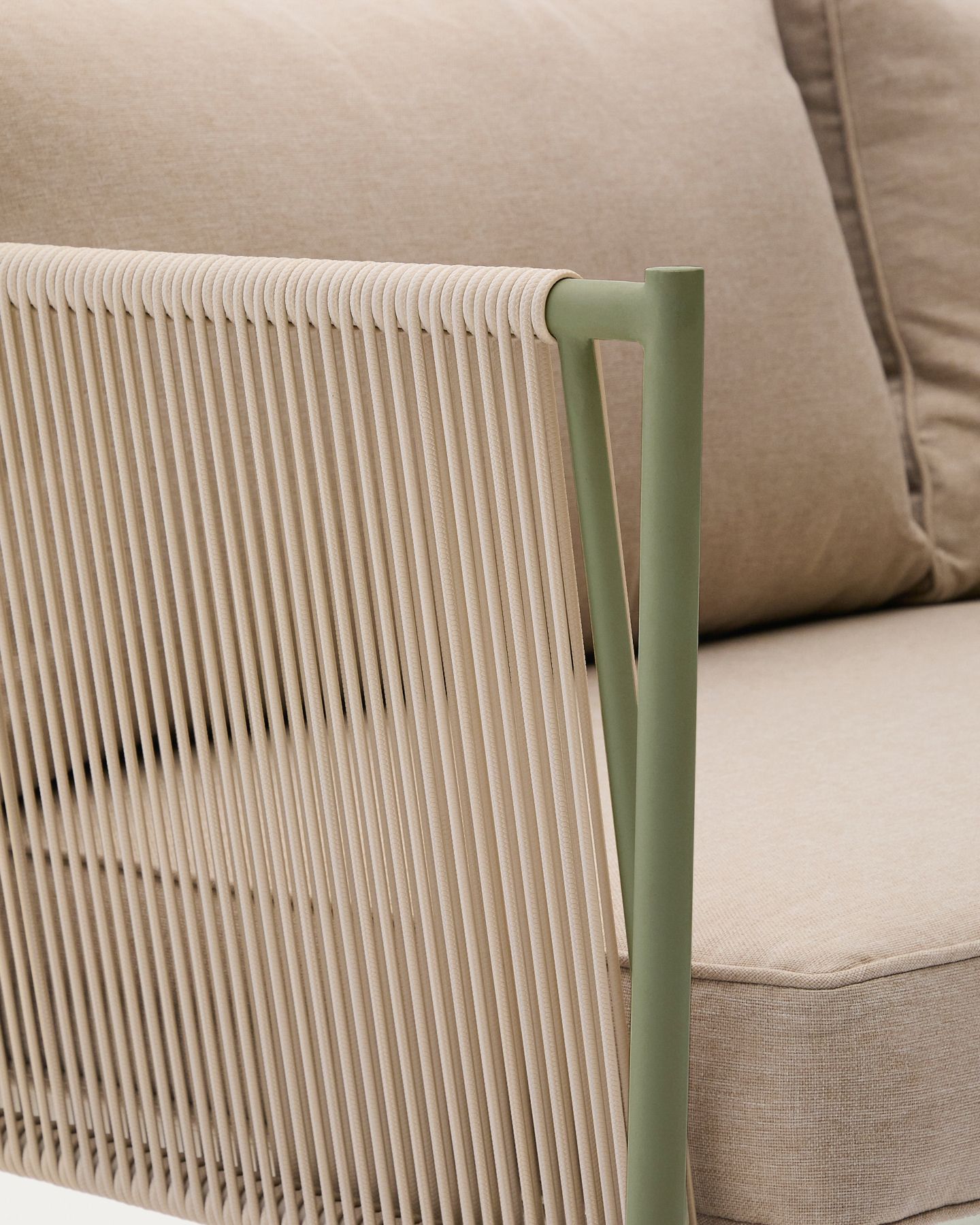Дизайн коллекции Zivia отличается прямыми и строгими линиями, обеспечивая минималистский и современный стиль. Ее изделия сочетают в себе прочность оцинкованной стали и элегантность плетеного вручную синтетического канатного шнура. Идеальный баланс комфорта и долговечности для ваших уличных пространств.