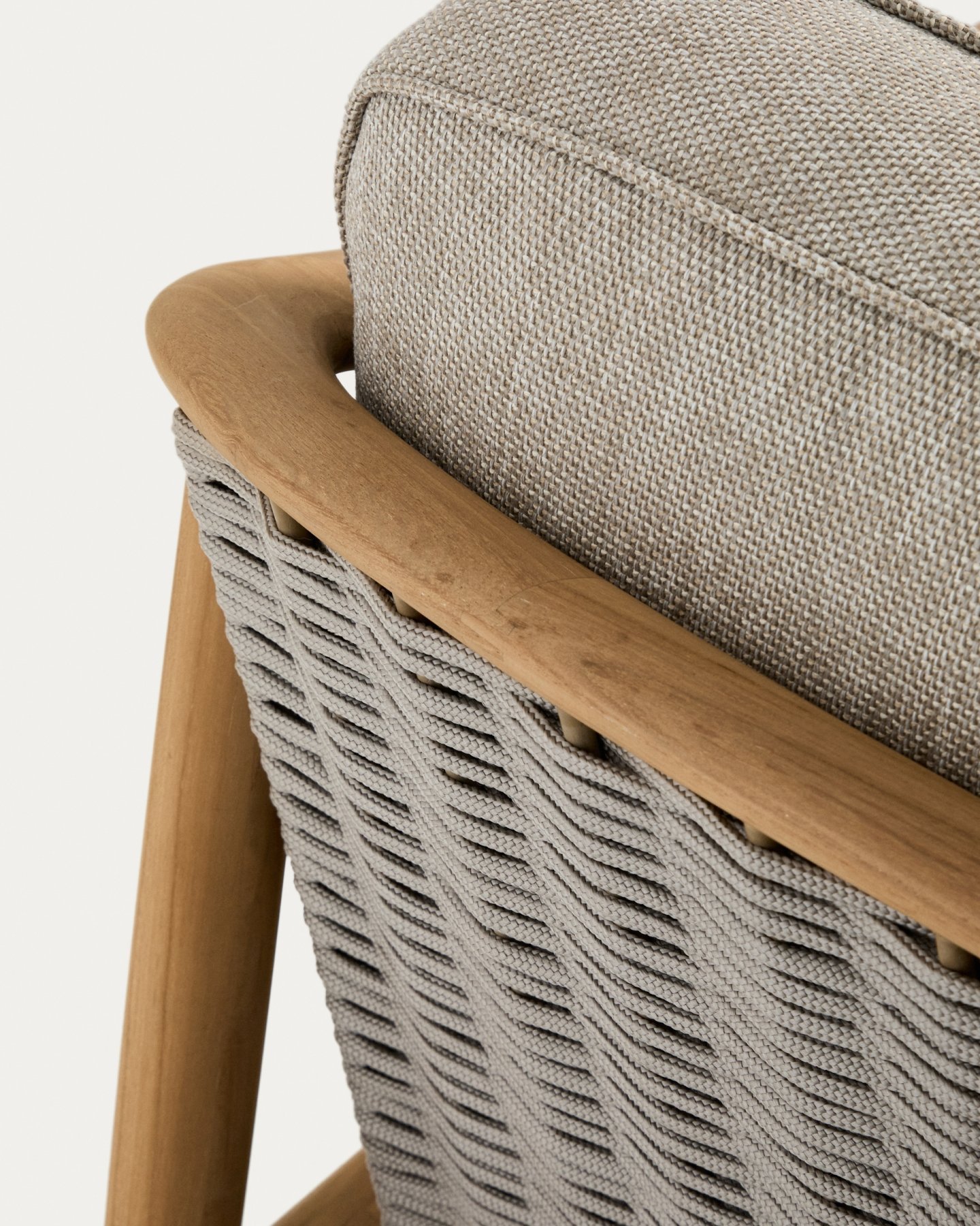 Коллекция Elunda включает в себя предметы мебели из массива тикового дерева, подходящие для использования на открытом воздухе и предназначенные для создания уютных пространств. Ее конструкция сочетает в себе плавные линии и спинку из плетеного вручную, устойчивого к УФ-излучению шнура, обеспечивающего комфортную поддержку. Подушки имеют съемные чехлы и изготовлены из сетчатого пеноматериала, который пропускает воду и способствует быстрому высыханию, что позволяет использовать их на открытом воздухе в течение длительного времени. Коллекция изготовлена из древесины, сертифицированной по стандарту FSC™ 100%, полученной из ответственно управляемых лесов.