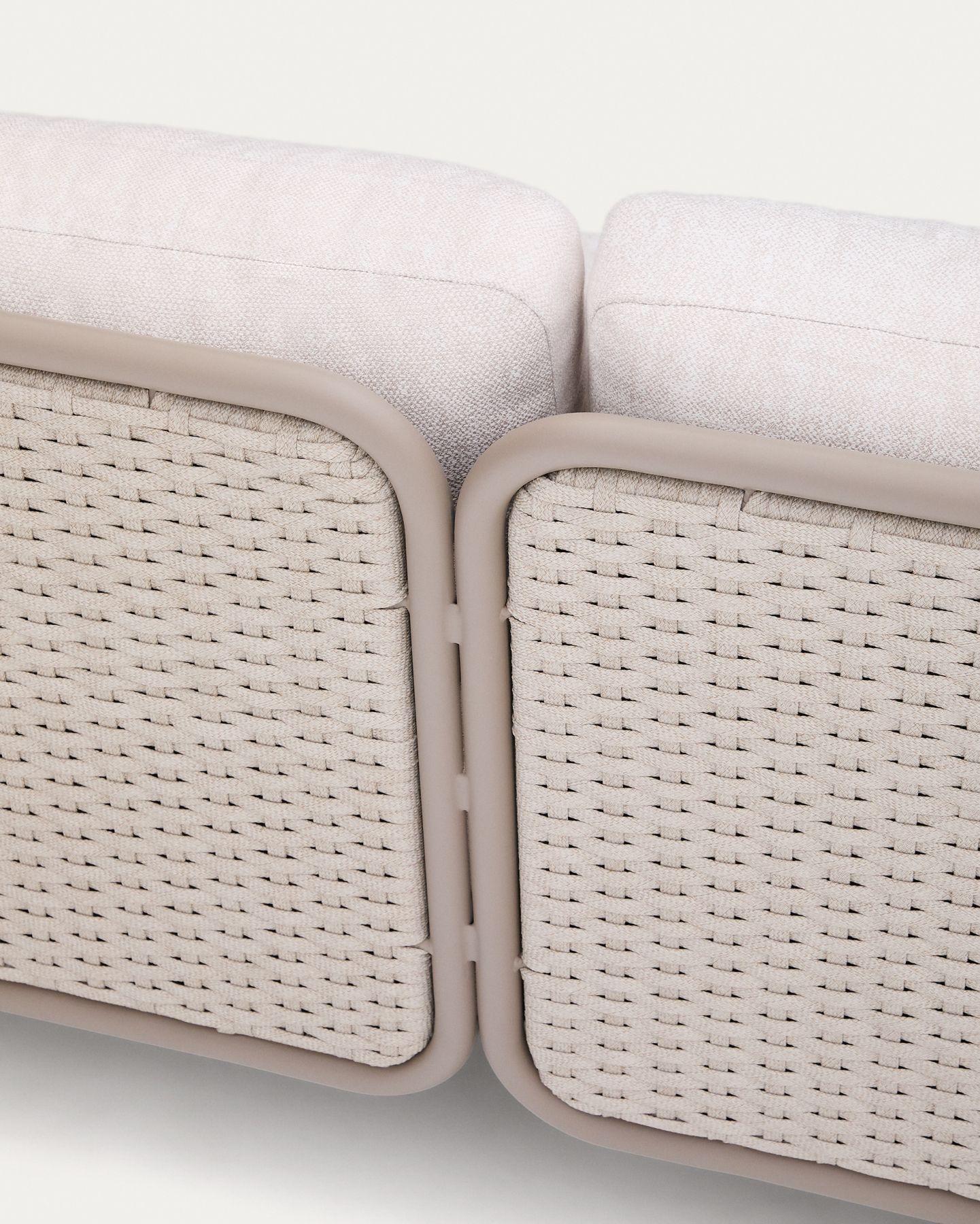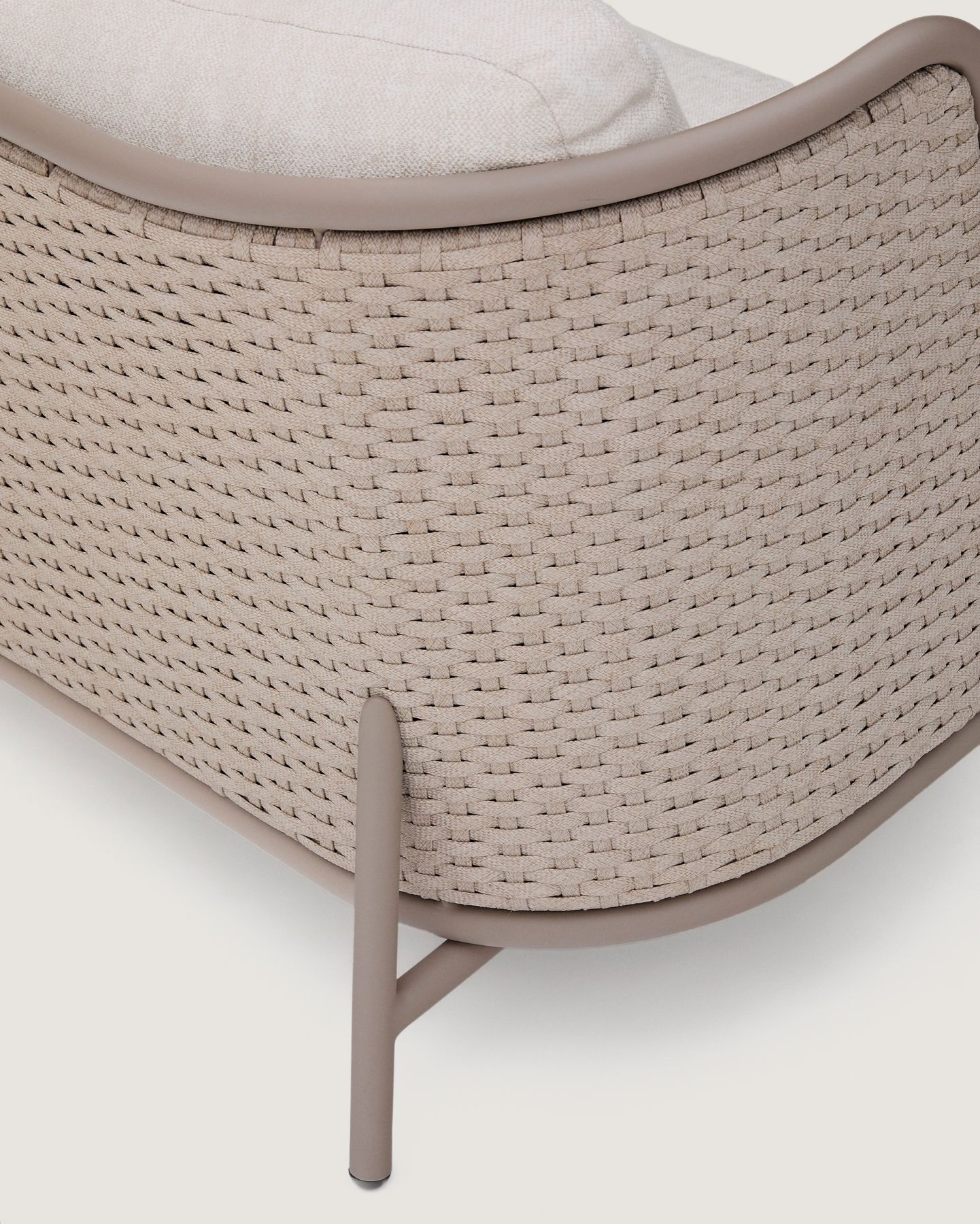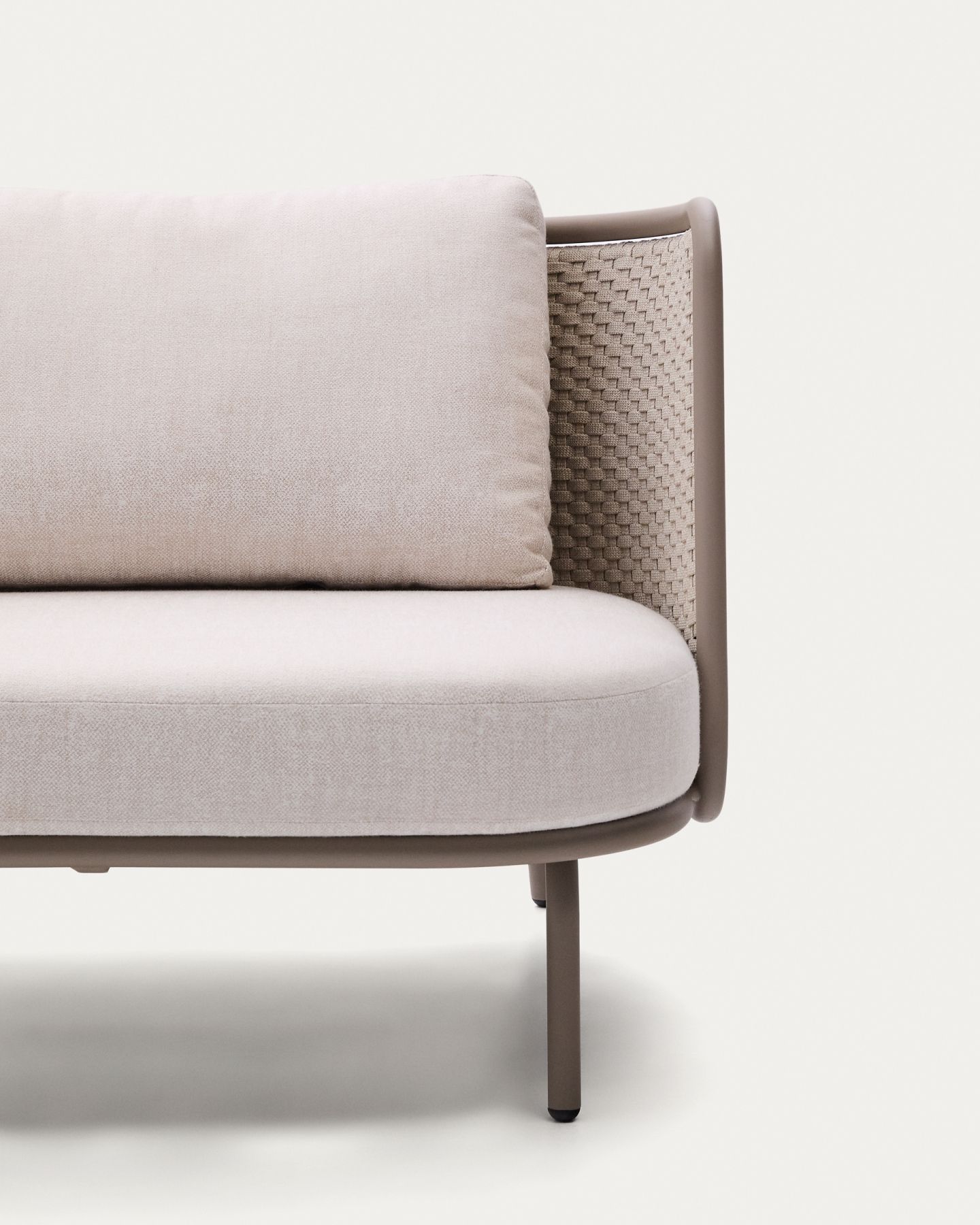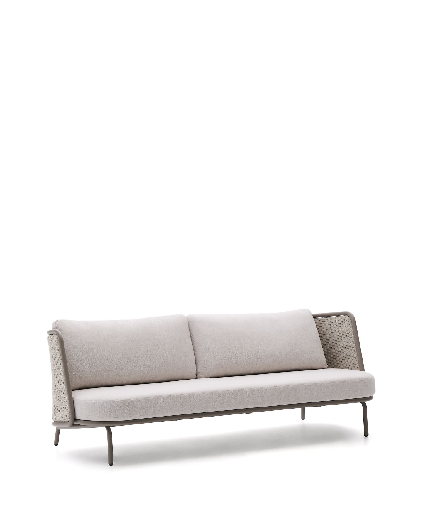 Трёхместный диван Sedalis сочетает в себе элегантность и долговечность и подходит для любого помещения. Благодаря алюминиевой конструкции и сиденью и спинке из веревочных канатов, сплетённых вручную и устойчивых к ультрафиолетовому излучению, он отличается лёгким и современным дизайном. Инновационный процесс E-покрытия обеспечивает максимальную устойчивость к ржавчине и коррозии, что делает его идеальным для использования как в помещении, так и на улице. Съемные подушки устойчивы к воде и ультрафиолетовому излучению. Кроме того, они на 95% состоят из переработанных материалов и поставляются от сертифицированного поставщика Global Recycled Standard, что гарантирует снижение ущерба от производства первичного материала. Для дополнительной защиты мы рекомендуем убирать их в дождливые дни.