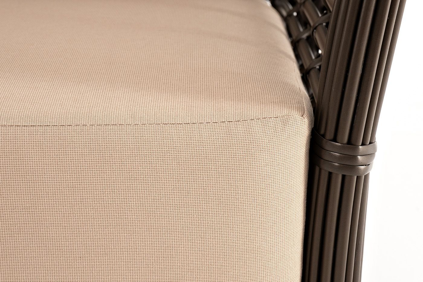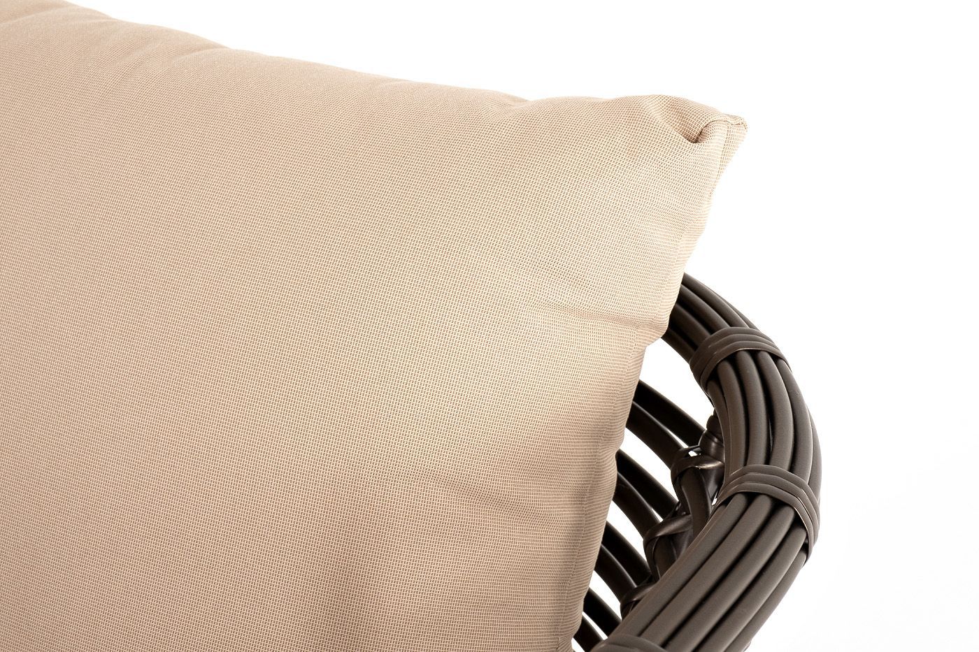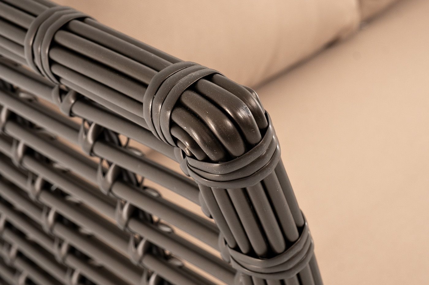 Ручное круглое плетение является основным декоративным элементом мебели. Оно выполнено из искусственного ротанга в бронзовом цвете.