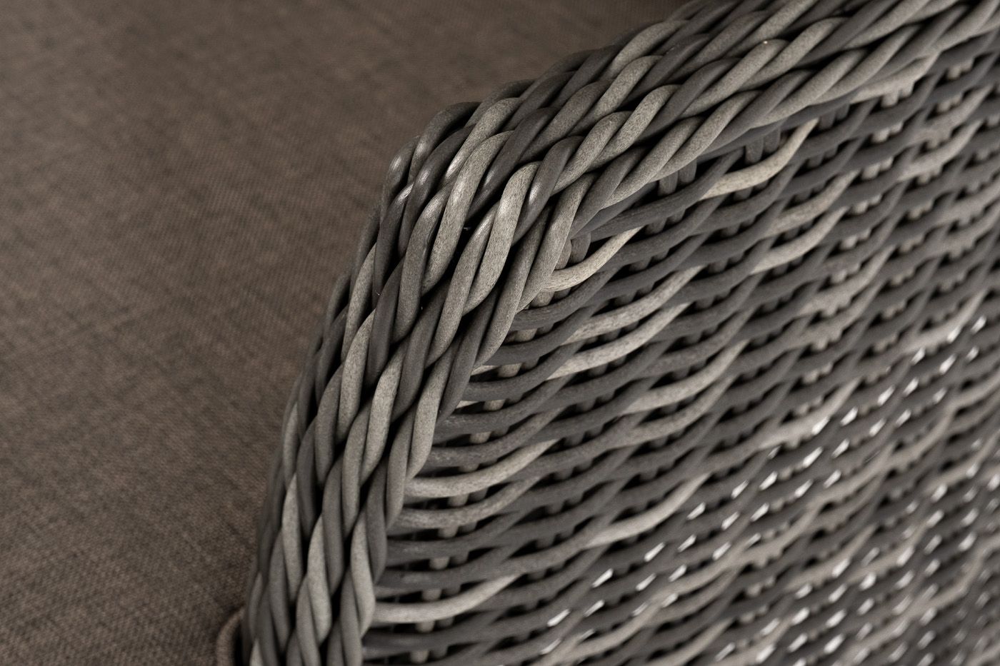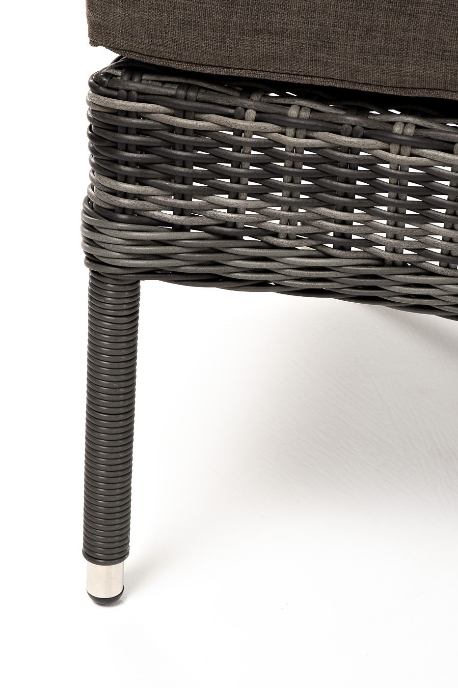 Каркас выполнен из высококачественного алюминия, который оплетен круглым искусственным ротангом графитового цвета.