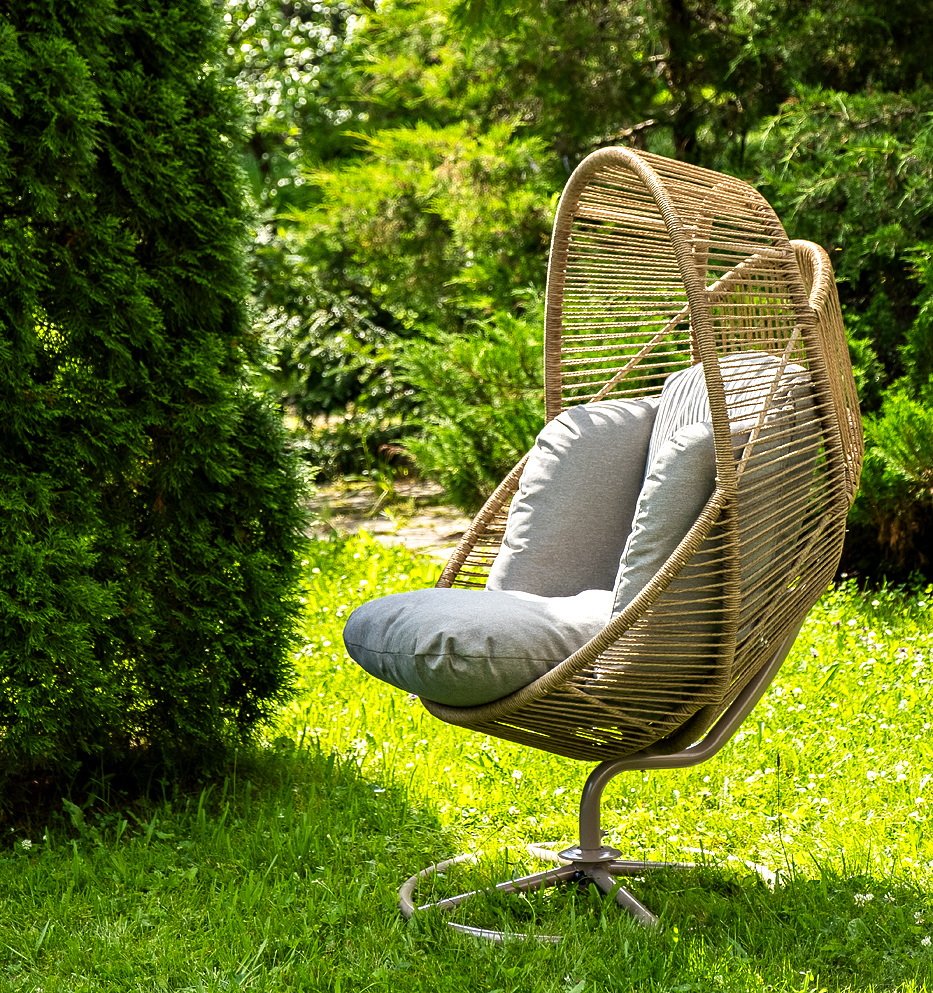 - "Барселона" кресло-кокон качели из искусственного ротанга, цвет соломенный
