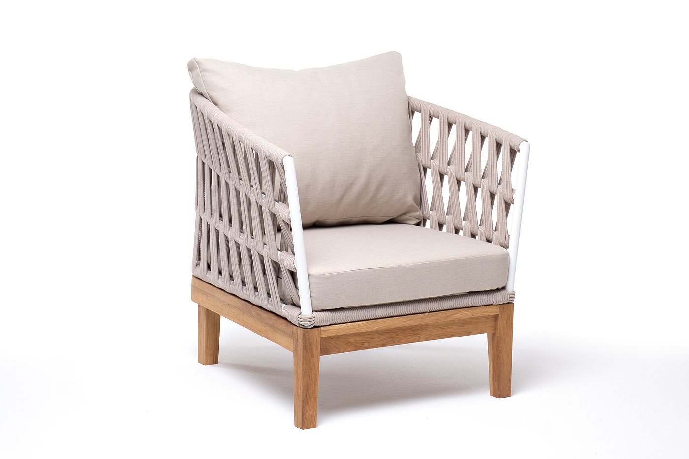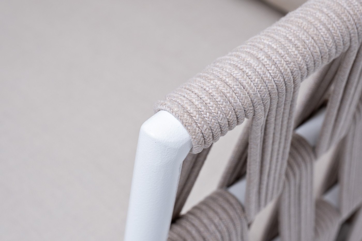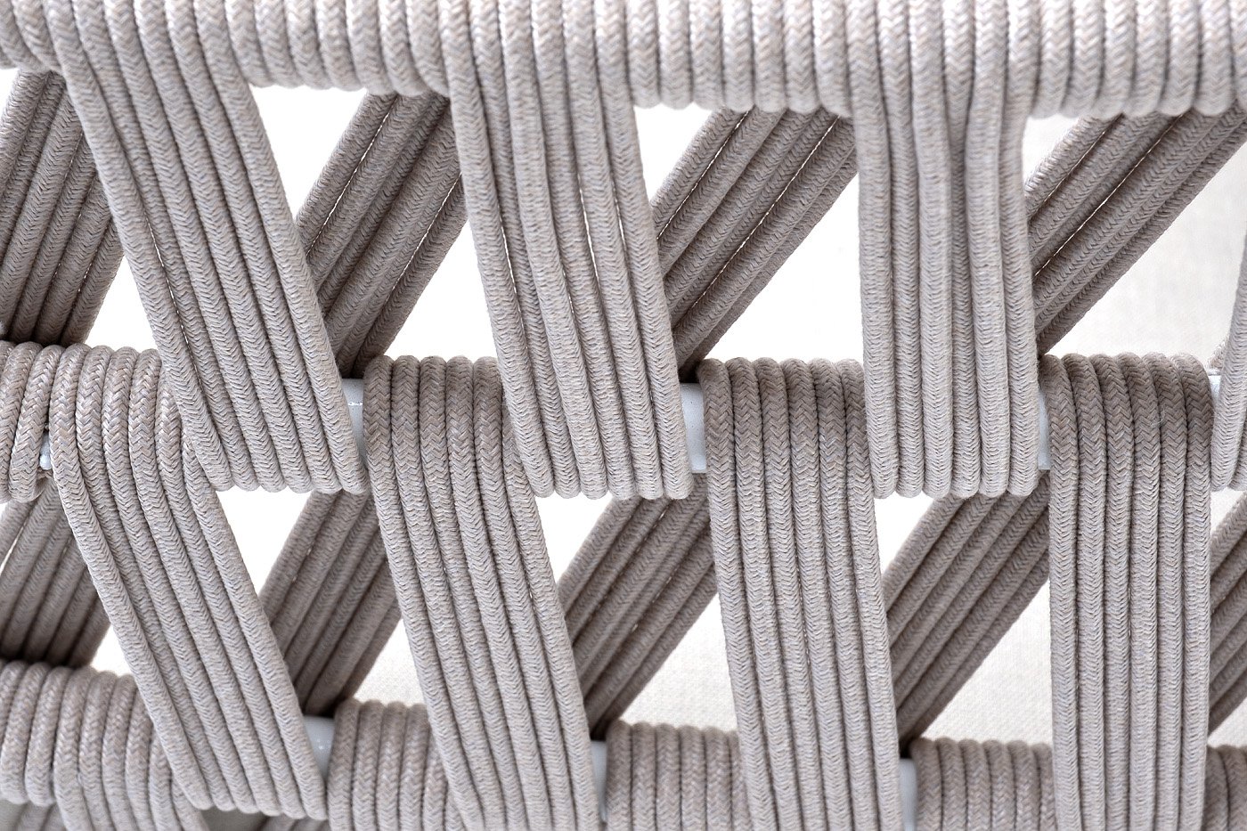 Боковины каркаса вручную оплетены роупом - эластичными синтетическими лентами, изготовленными из высокопрочных полиэфирных волокон. Цвет оплетки - бежевый.