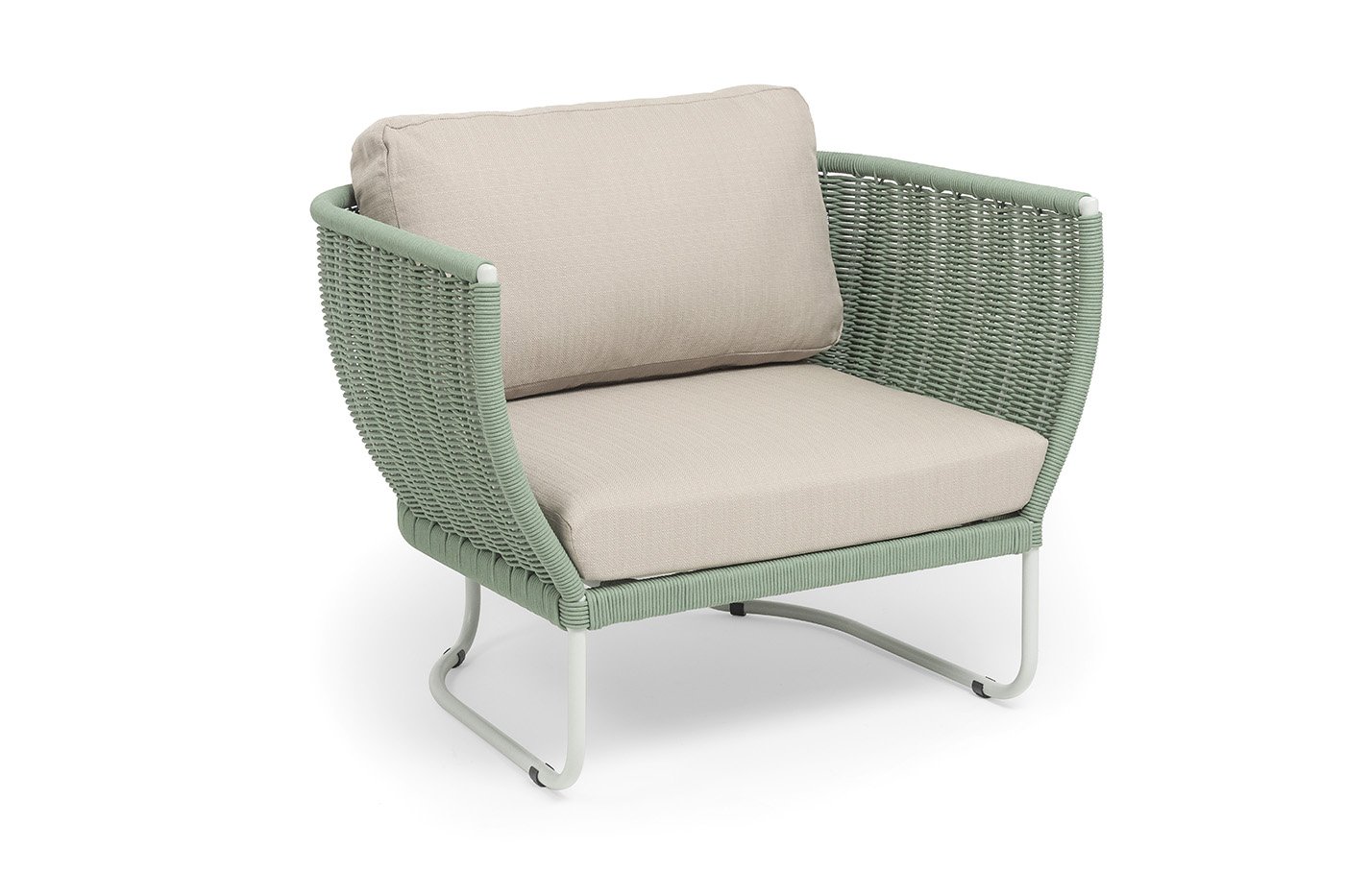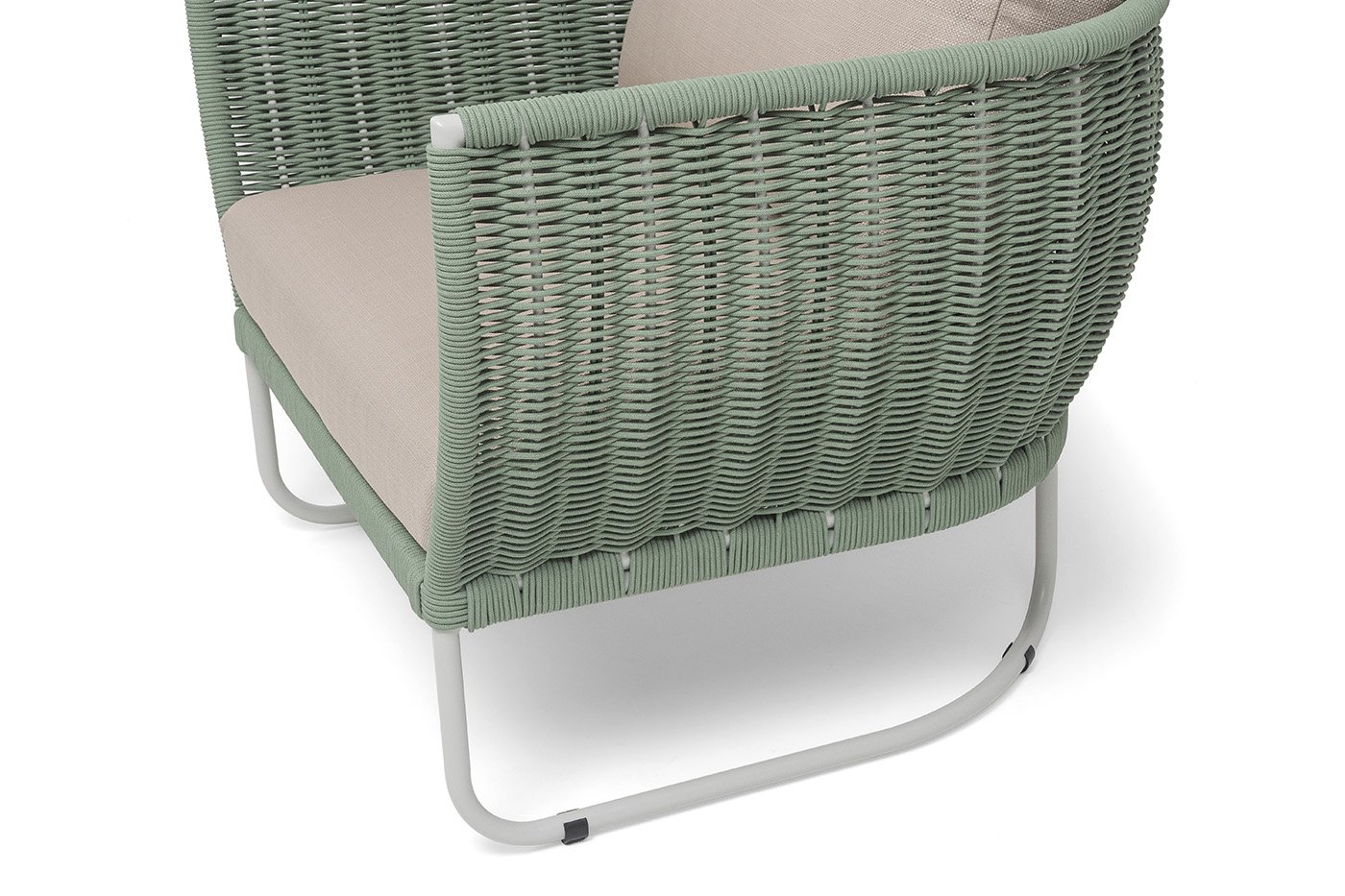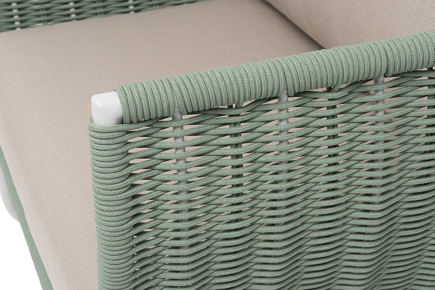 Плетение боковины каркаса вручную оплетены роупом — эластичными синтетическими лентами из высокопрочных полиэфирных волокон. Оплетка - круглый tex, что придает креслу изысканный и оригинальный внешний вид.