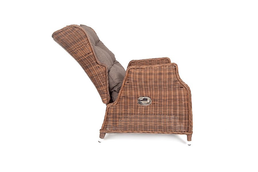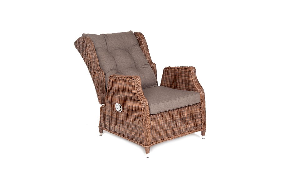 Данная модель с откинутой спинкой в максимальном положении вмещает в себя комфорт шезлонга, а в собранном виде – классического кресла.