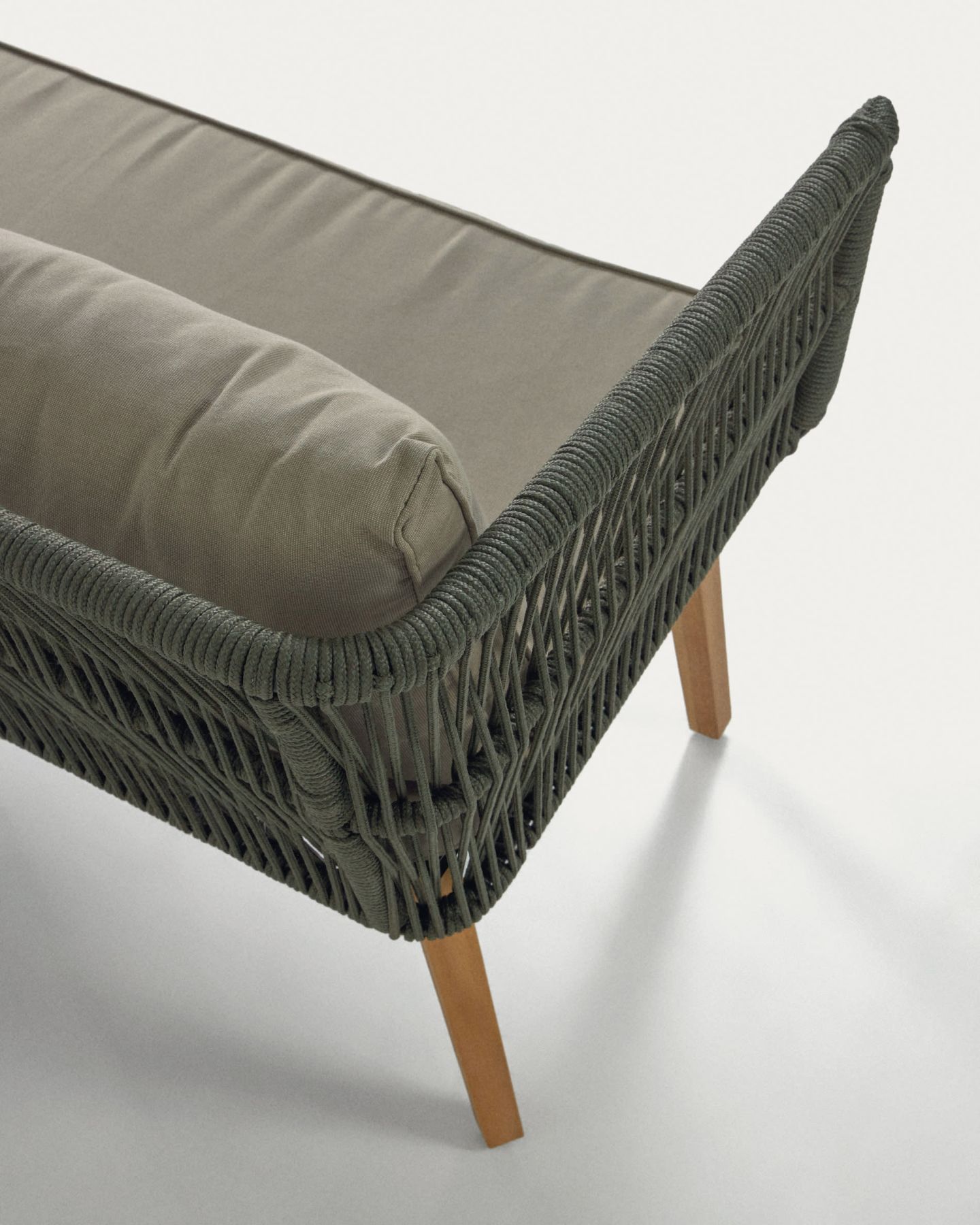 Кресла и диван имеют каркасную конструкцию. Она сделана из алюминиевых трубок, которые окрашены в цвет оплетки эпоксидной эмалью. Покрытие защищает металл от негативного влияния внешней среды. Плетеная структура сиденья выполнена из прочного полимерного шнура. Он создает комфортную упругость, не выгорает под воздействием солнечных лучей. Сиденье дополнено двумя подушками со съемными чехлами из полиэстера. Толщина нижней подушки – 5 см. Наполнитель – пена плотностью 20 кг/м3.