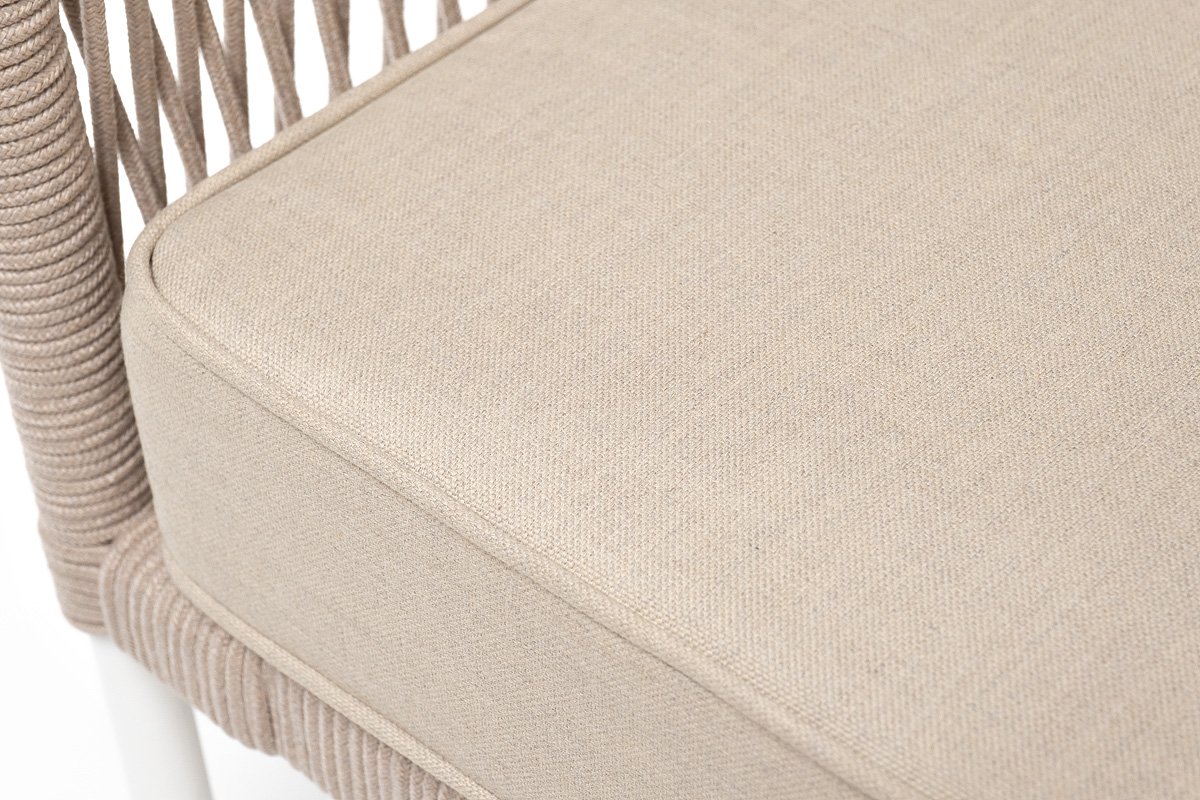 Приятное дополнение − подушки со съёмными чехлами аналогичного бежевого оттенка из влагоотталкивающей ткани, устойчивой к ультрафиолетовым лучам и неблагоприятным атмосферным воздействиям.