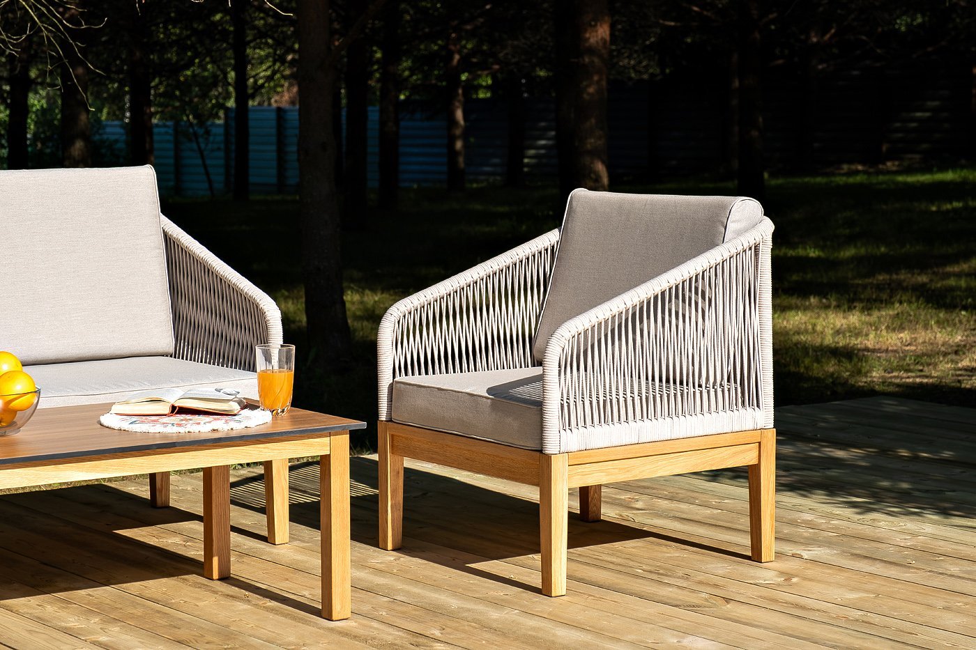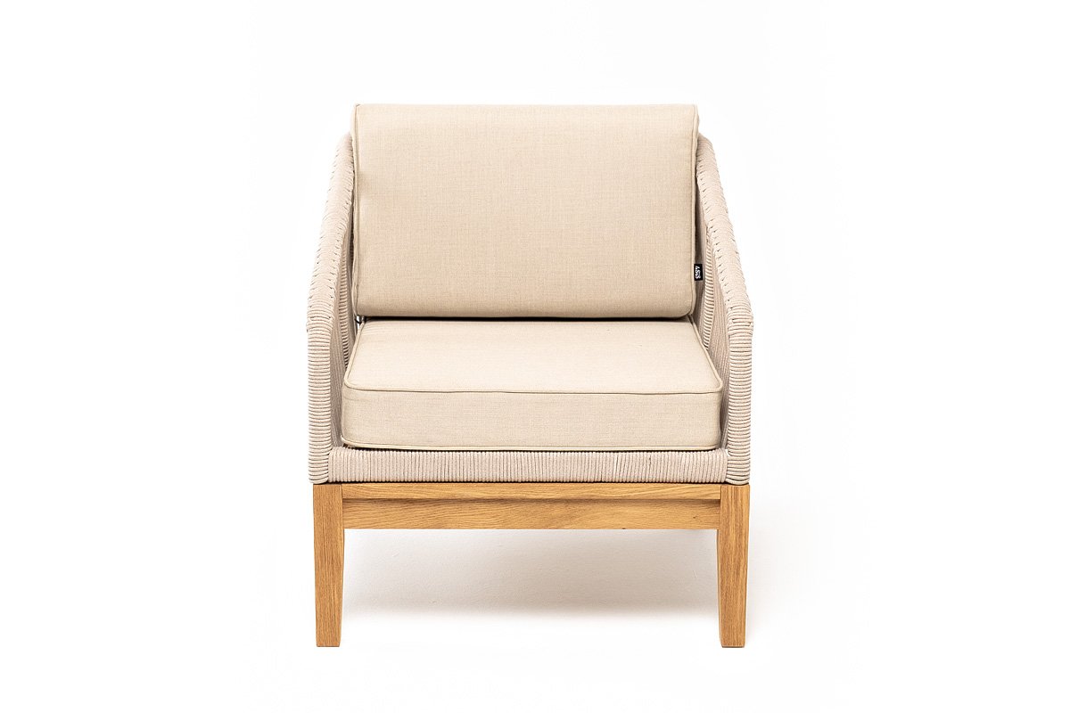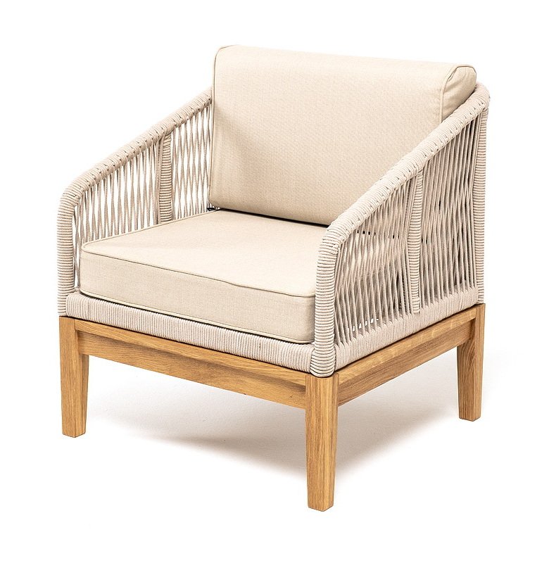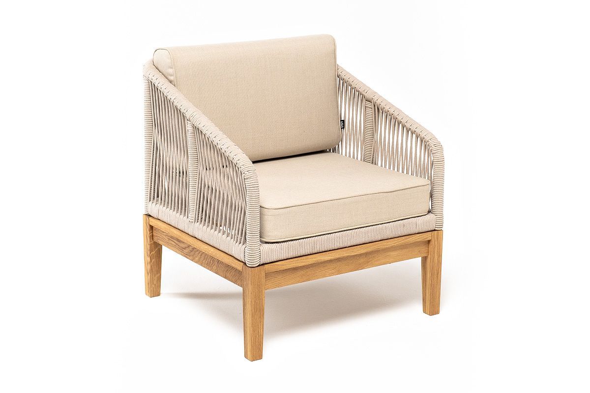 На боковинах - оплетка из синтетических лент, выполненных из полиэфирных волокон высокой прочности. Цвет плетения - бежевый. Основание - дуб.