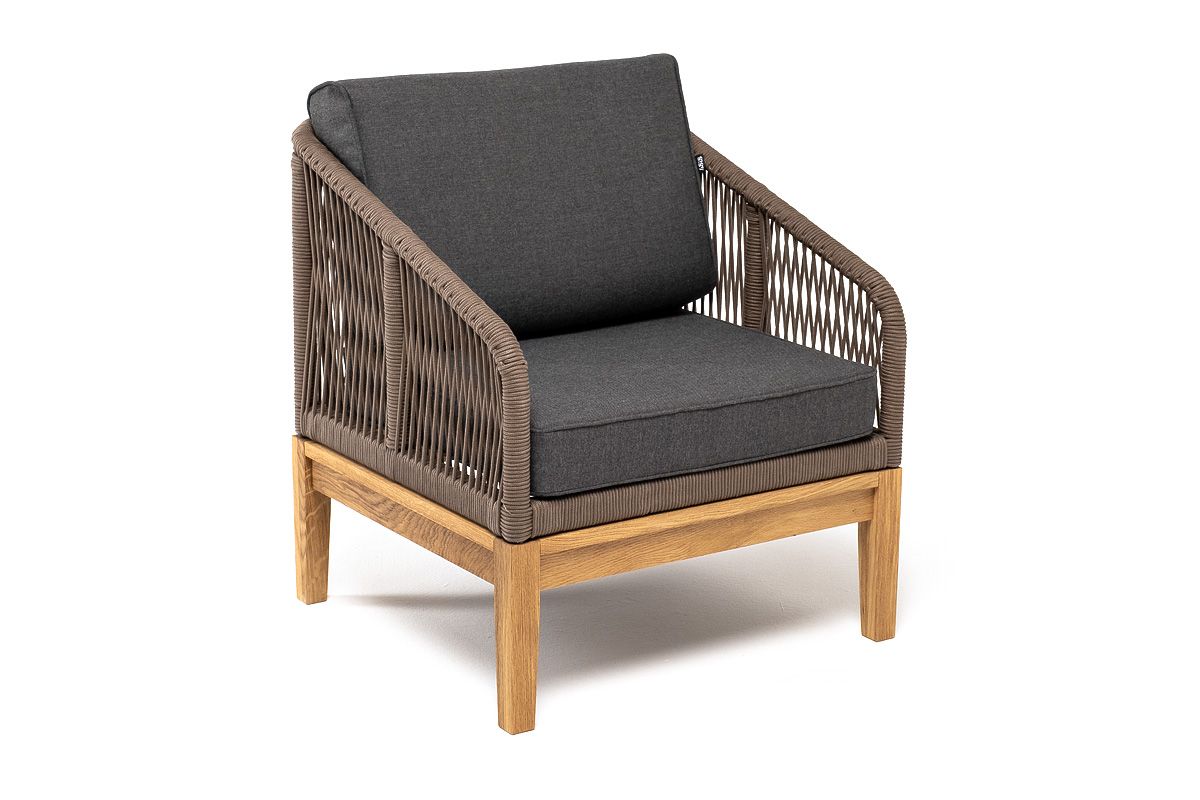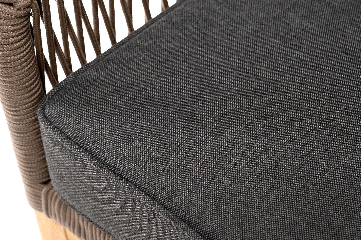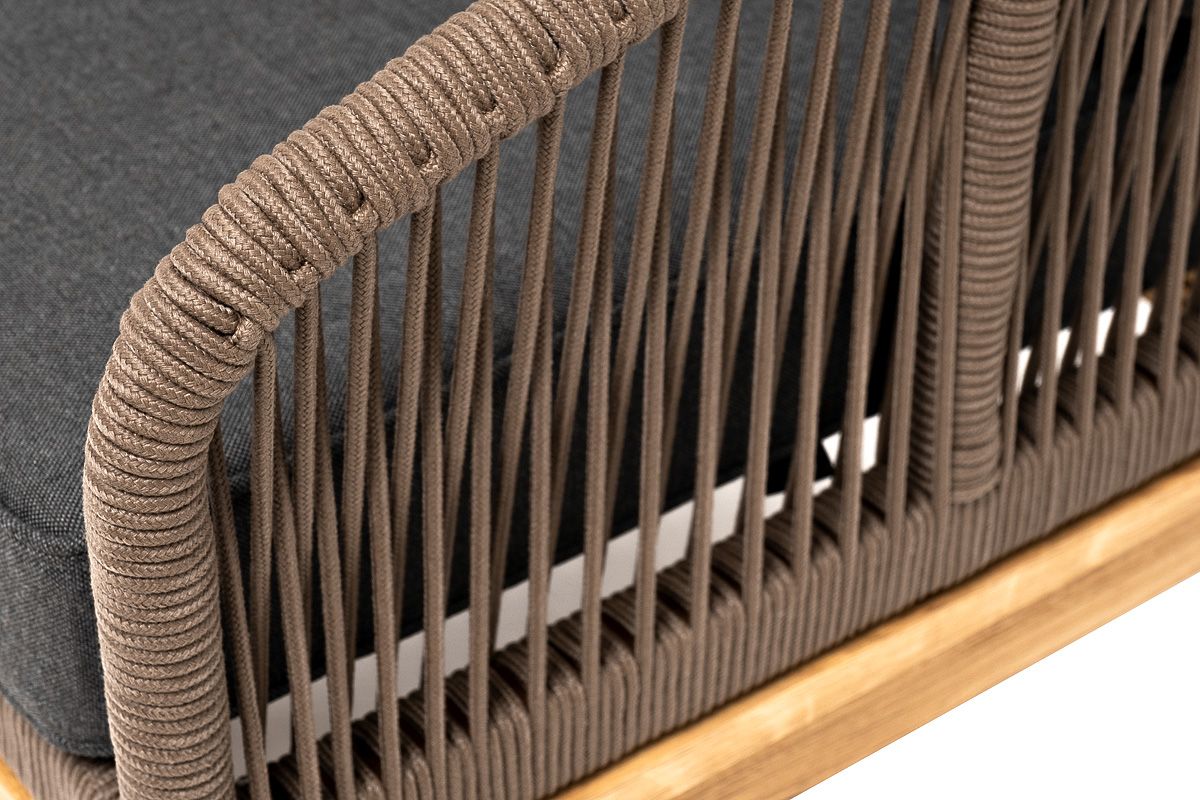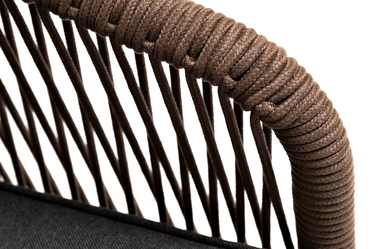 На боковинах - оплетка из синтетических лент, выполненных из полиэфирных волокон высокой прочности. Цвет плетения - коричневый. Основание - дуб.