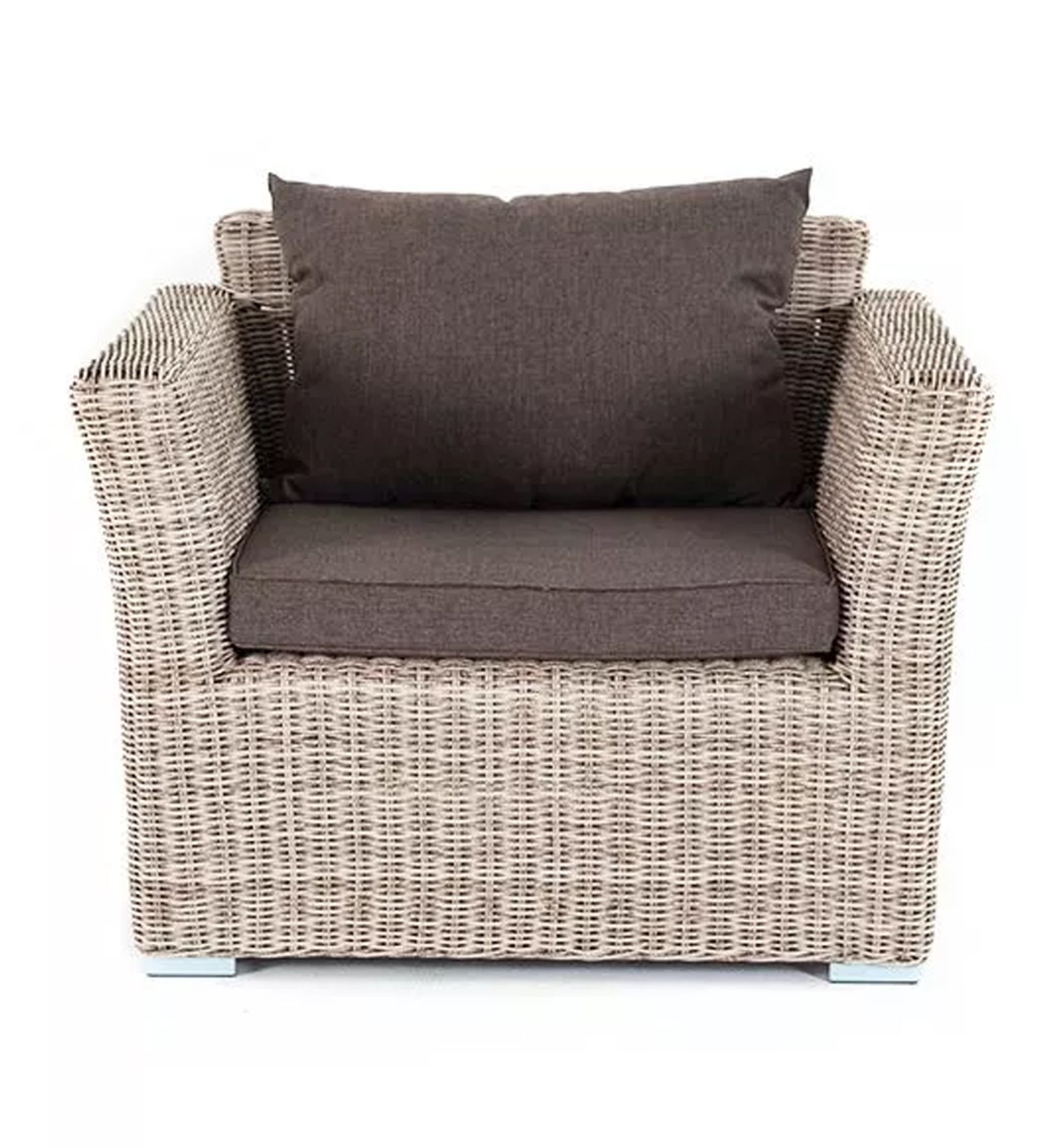 Размеры кресла - 1040×865×815 мм, в комплектацию входят две подушки, произведенные из полиэстера с влагоотталкивающей пропиткой.