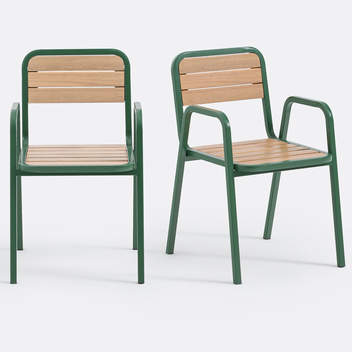 Эстетичные, комфортные и штабелируемые. Два кресла Jaja из оцинкованной стали и массива акации идеально сочетаются с табуретами для садового стола из той же коллекции, чтобы превратить ваше внешнее пространство в место для приема гостей и релакса. Творение La Redoute Intérieurs.Описание • Из оцинкованной стали с эпоксидным покрытием и массива акации с покрытием олифой • Древесина с сертификатом FSC® • Штабелируемые • Комплект из двух штукКачество • Акация — древесина с отличными механическими свойствами, в числе которых долговечность (устойчивость к насекомым и грибкам) и устойчивость к влаге (чередование сухих и влажных сезонов). Размеры • Ширина: 50 см • Высота: 83 см • Глубина: 57 см • Сиденье: Ш44 x В45 x Г57 см • Вес: 7,3 кг • Продается в собранном виде. • ДРЕВЕСИНА ИЗ УСТОЙЧИВО УПРАВЛЯЕМЫХ ЛЕСОВ. Наличие знака FSC® означает, что древесина, из которой изготовлено изделие, добыта с соблюдением международных стандартов: в процессе добычи не были нарушены права коренных народов, местных жителей и работников, и заготовка велась методом устойчивого лесопользования.Размеры и вес упаковкиОдна упаковка • Ш105 x В56 x Д62 см, 21 кг