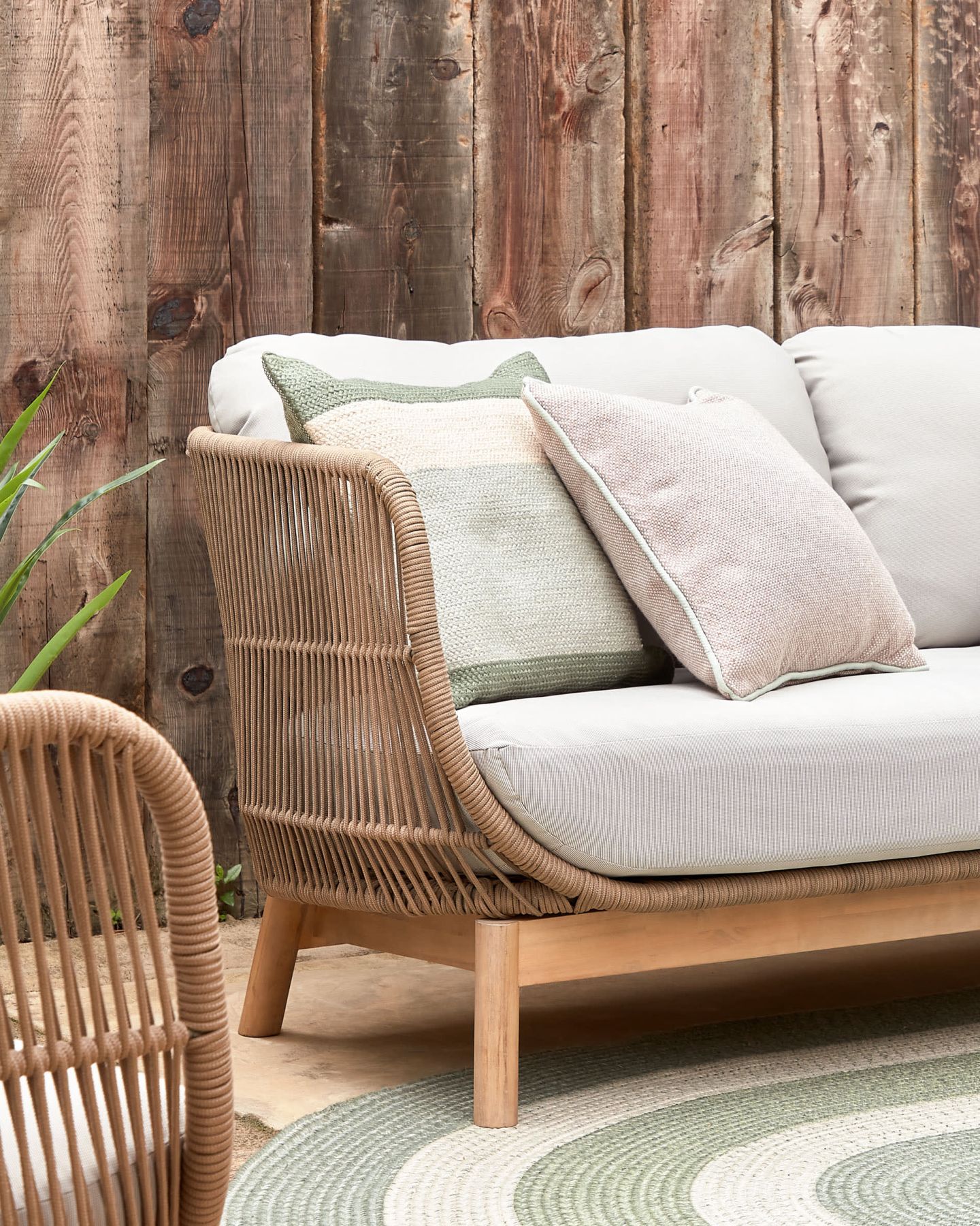 Catalina наполнит ваши крытые открытые пространства тропическим стилем. Он выделяется своим детальным дизайном, прочным каркасом из прочного дерева акации и плетеной вручную веревкой, оба из которых устойчивы к ультрафиолетовому излучению. Конструкцию можно размещать в помещении и на улице.