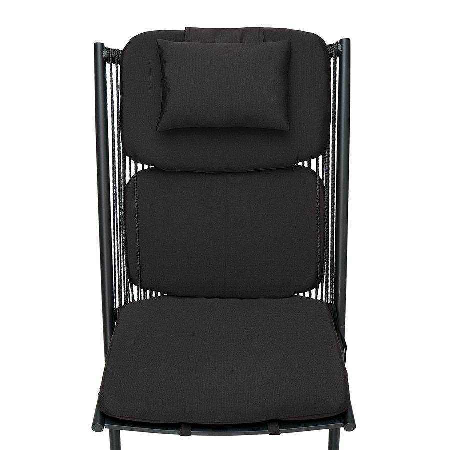 Кресло Hakon имеет прочный алюминиевый каркас, который делает конструкцию надежной и долговечной. Вы можете быть уверены, что оно прослужит вам долгие годы, сохранив первоначальные характеристики и эстетический вид. Наклонная спинка позволяет занять удобное положение и расслабиться. Мягкие подушки из полиэстера для сиденья, спины и головы обеспечивают дополнительный комфорт и качественную поддержку тела. Материал плотный, влагостойкий, не боится износа. Модель с минималистичным дизайном гармонично впишется в любой современный интерьер или экстерьер.