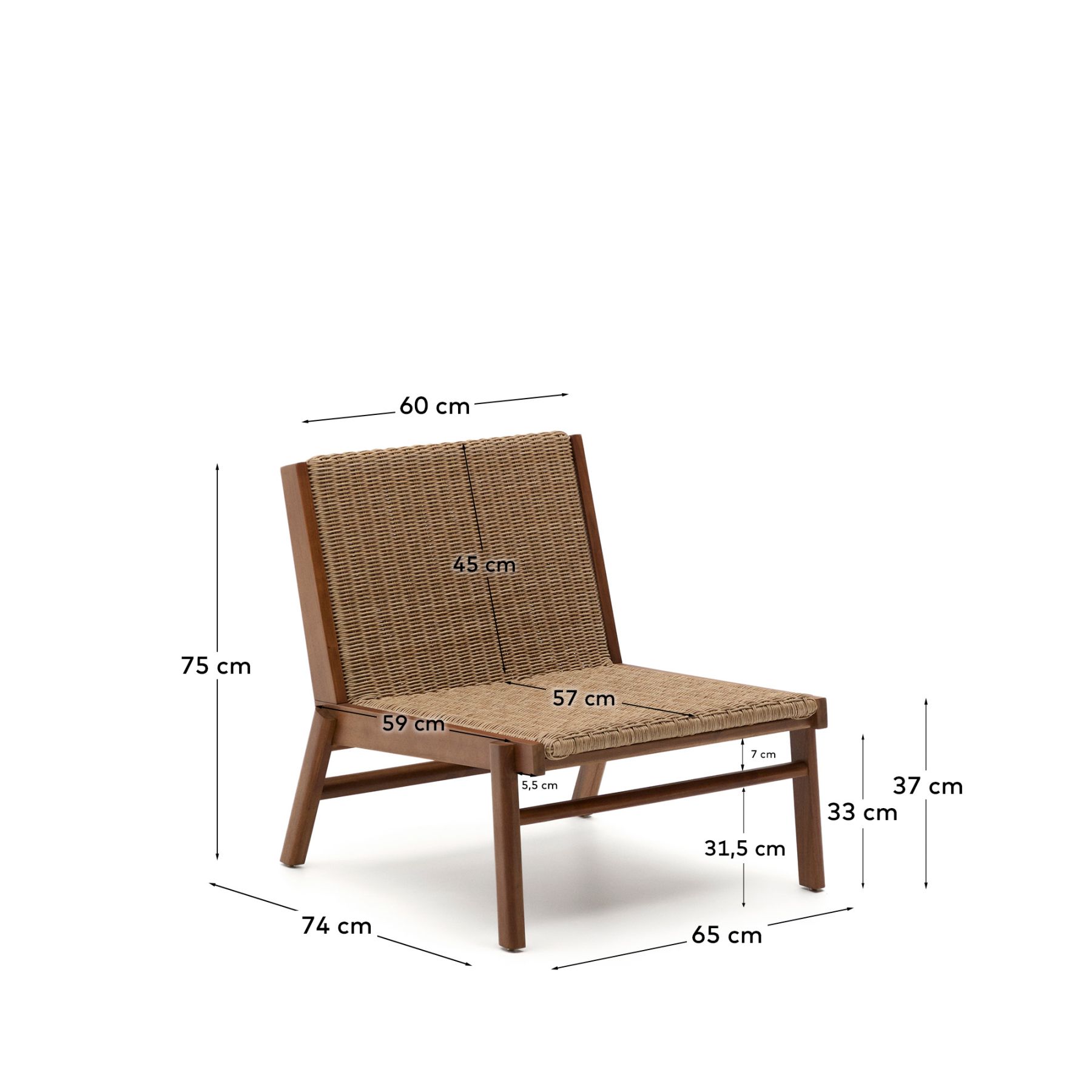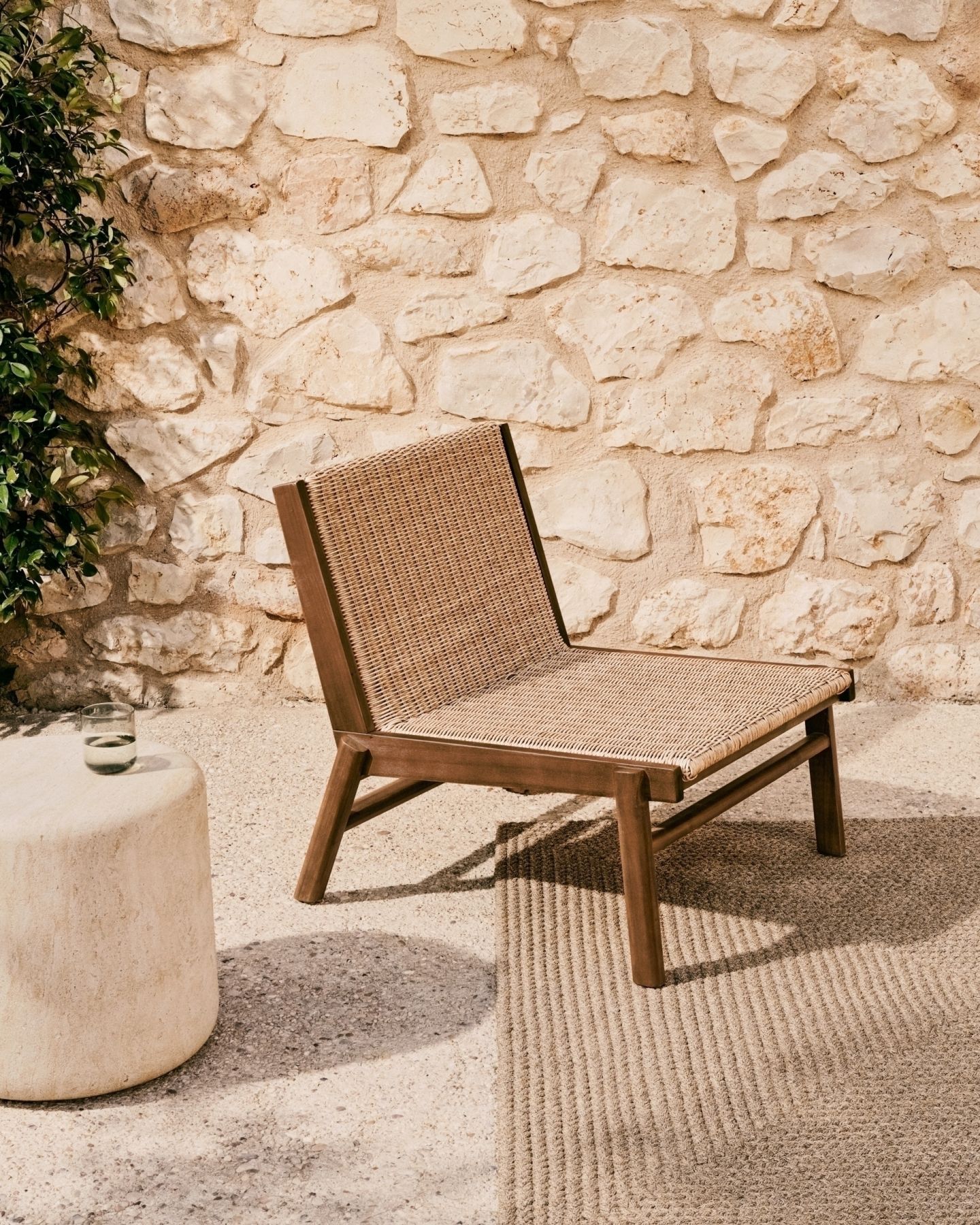 Сиденья и спинки, вручную сотканные из синтетического ротанга, визуально выглядят теплыми и изысканными, а также очень прочными и простыми в уходе. Этот материал специально разработан для использования на открытом воздухе, обеспечивая практичность без ущерба для эстетики. Структура включает полиуретановое покрытие на водной основе, а также оцинкованную железную конструкцию с порошковым покрытием, что обеспечивает отличную устойчивость к самым суровым условиям.
