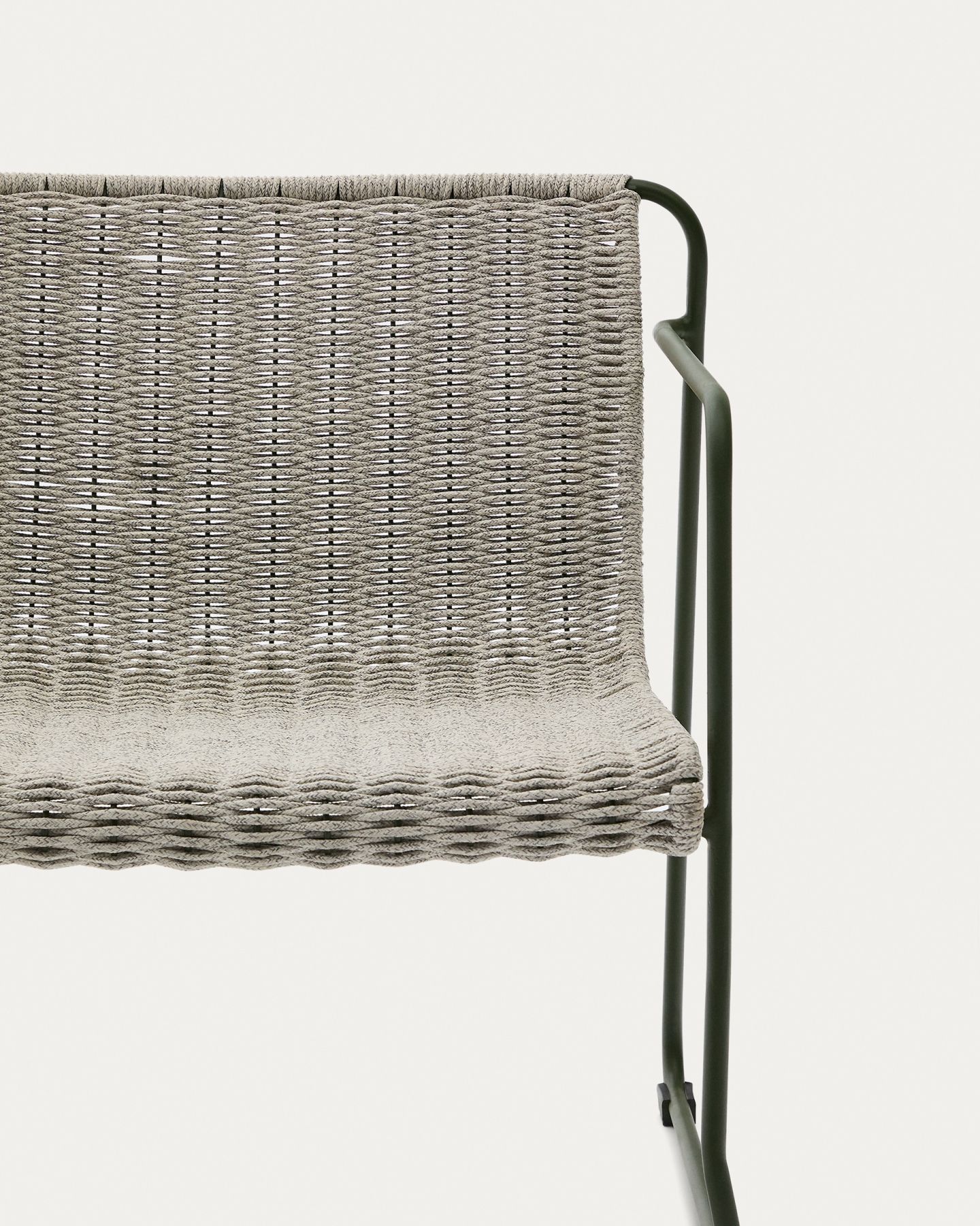 С оцинкованной стальной конструкцией, он выделяется своей прочностью благодаря своей устойчивости к ржавчине и коррозии, а также своей способностью вписываться в любые виды открытых пространств. Сиденье и спинка, изготовленные из сплетенного вручную шнура, устойчивого к ультрафиолетовому излучению, в стержневой конструкции, обеспечивают комфорт и уникальный стиль.