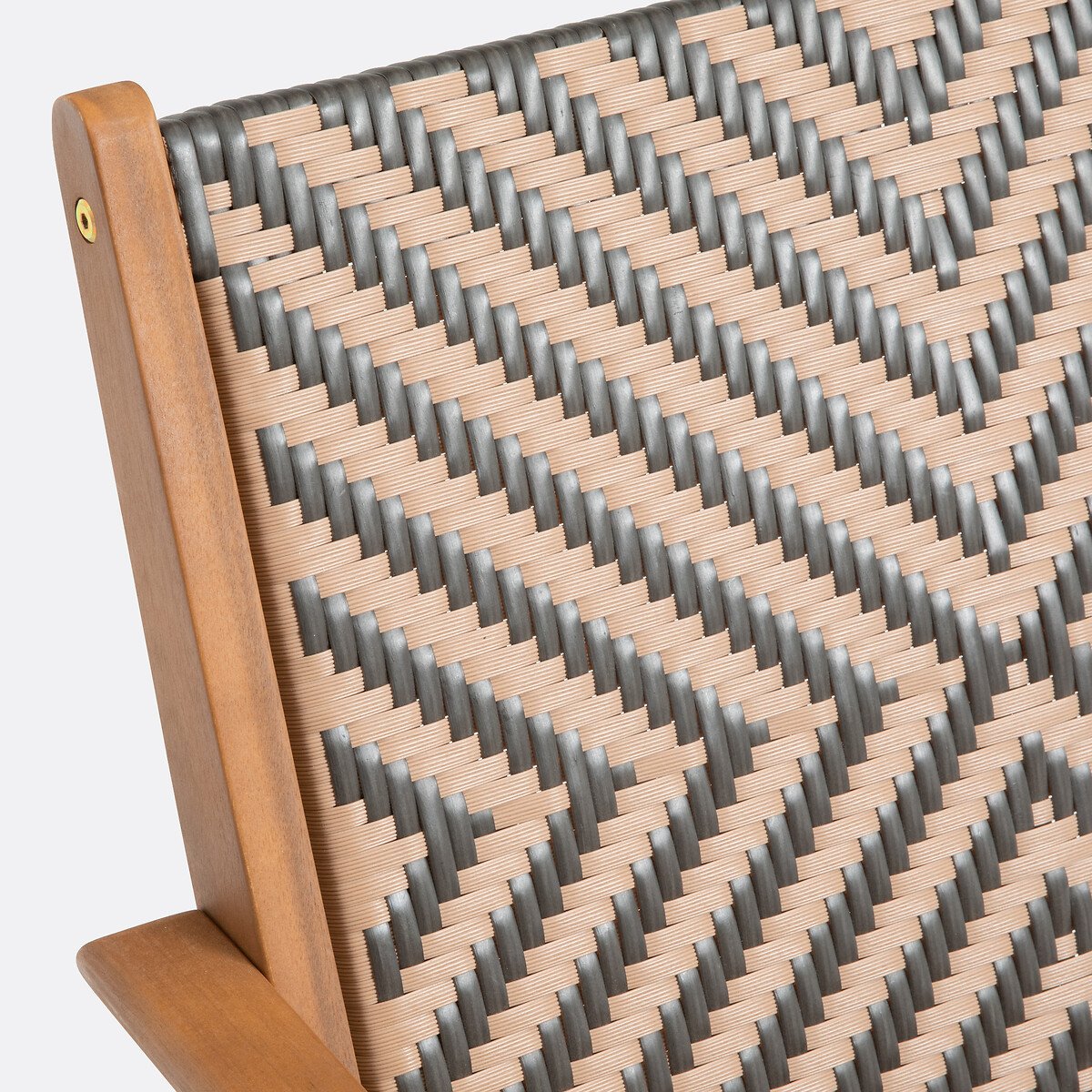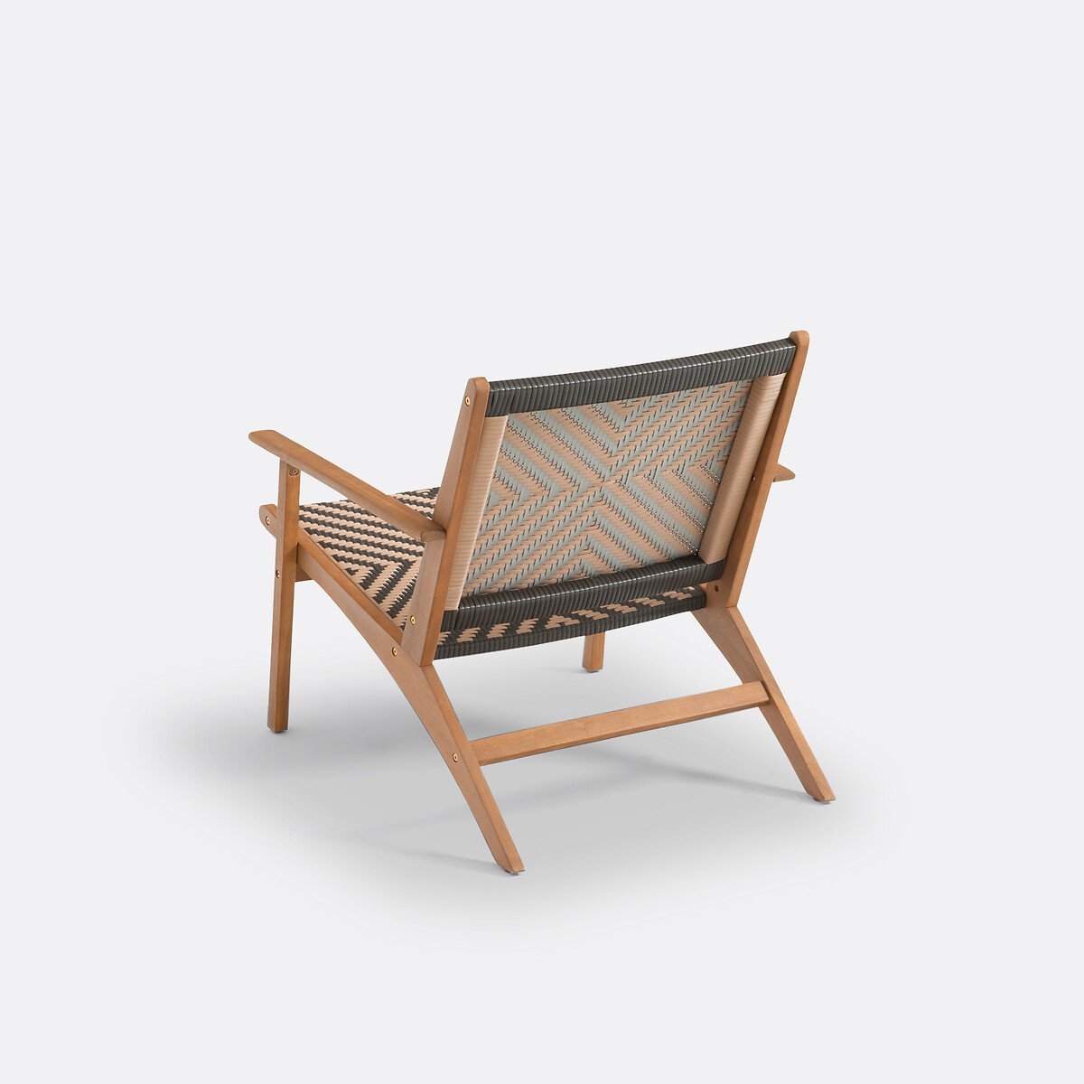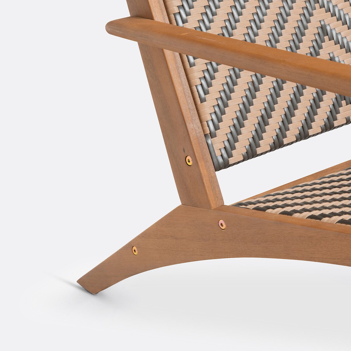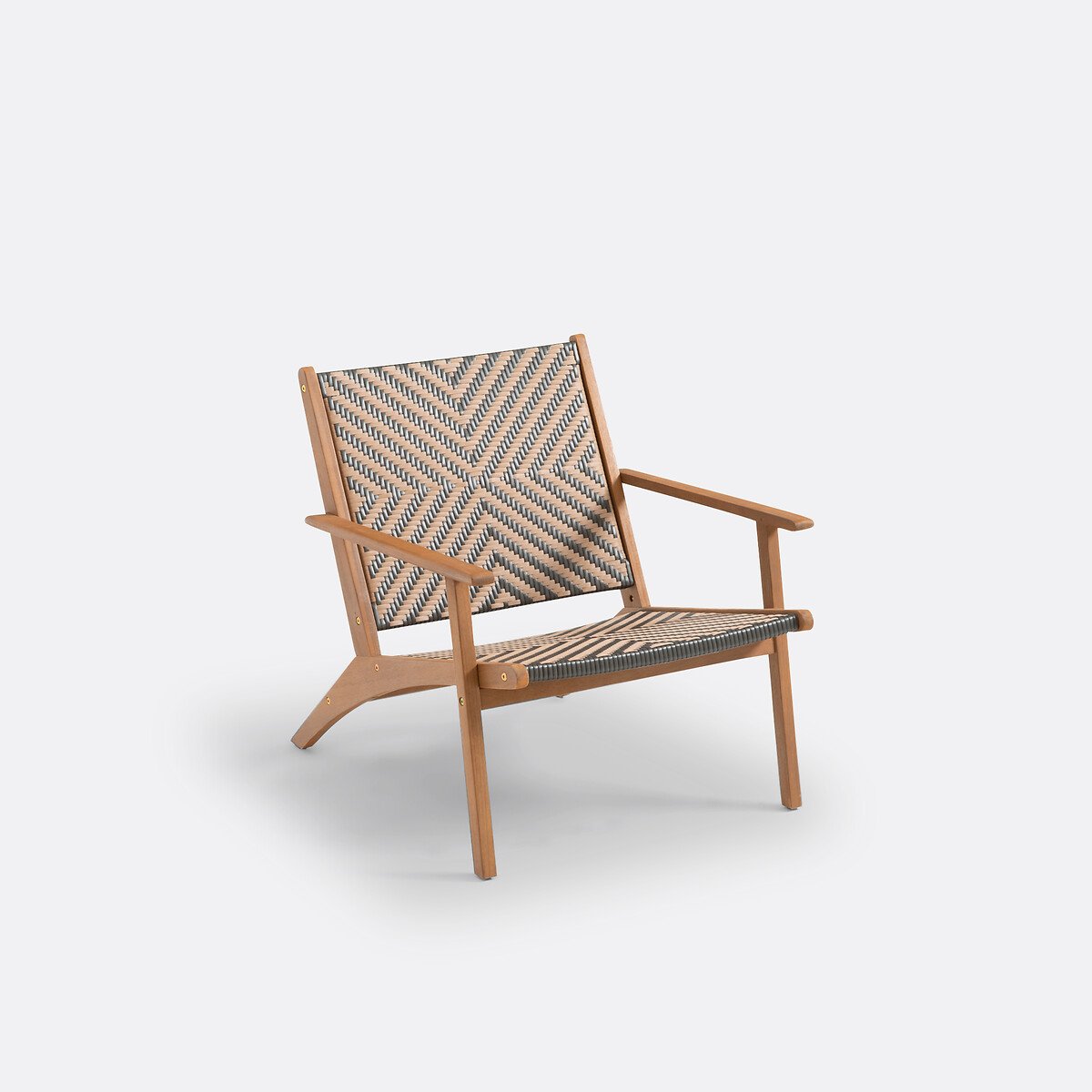 Кресло Balia / Балиа из акации и плетеного пластика. Широкое сиденье и спинка с наклоном. Идеально для отдыха в саду или на террасе.Описание • Каркас из акации с сертификатом FSC®, масляное покрытие натурального цвета • Сиденье и спинка из плетеного пластика 6 мм, графический принт • Два фиксированных подлокотникаКачество • Акация — древесина с отличными механическими свойствами, в числе которых долговечность (устойчивость к насекомым и грибкам) и устойчивость к влаге (чередование сухих и влажных сезонов). • Плетеный пластик устойчив к непогоде, колебаниям температур и ультрафиолетовым лучам. Срок его службы будет зависеть от времени нахождения на солнце, воздействия лунных лучей и колебаний температур. Для ухода за материалом достаточно помыть изделие мыльной водой с мягкой губкой.Размеры • Ширина: 62 см • Высота: 67,5 см • Глубина: 77,8 см • Сиденье: Д54 x В33,5 x Г46,5 см • Спинка: В43,5 см • Вес: 6,2 кг • Самостоятельная сборка. • ДРЕВЕСИНА ИЗ УСТОЙЧИВО УПРАВЛЯЕМЫХ ЛЕСОВ. Наличие знака FSC® означает, что древесина, из которой изготовлено изделие, добыта с соблюдением международных стандартов: в процессе добычи не были нарушены права коренных народов, местных жителей и работников, и заготовка велась методом устойчивого лесопользования.Размеры и вес упаковкиОдна упаковка • Д75 x В13 x Г54 см, 6,95 кг