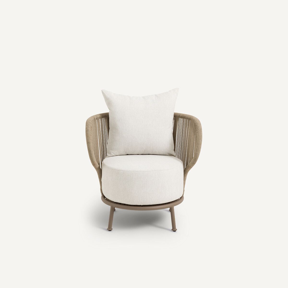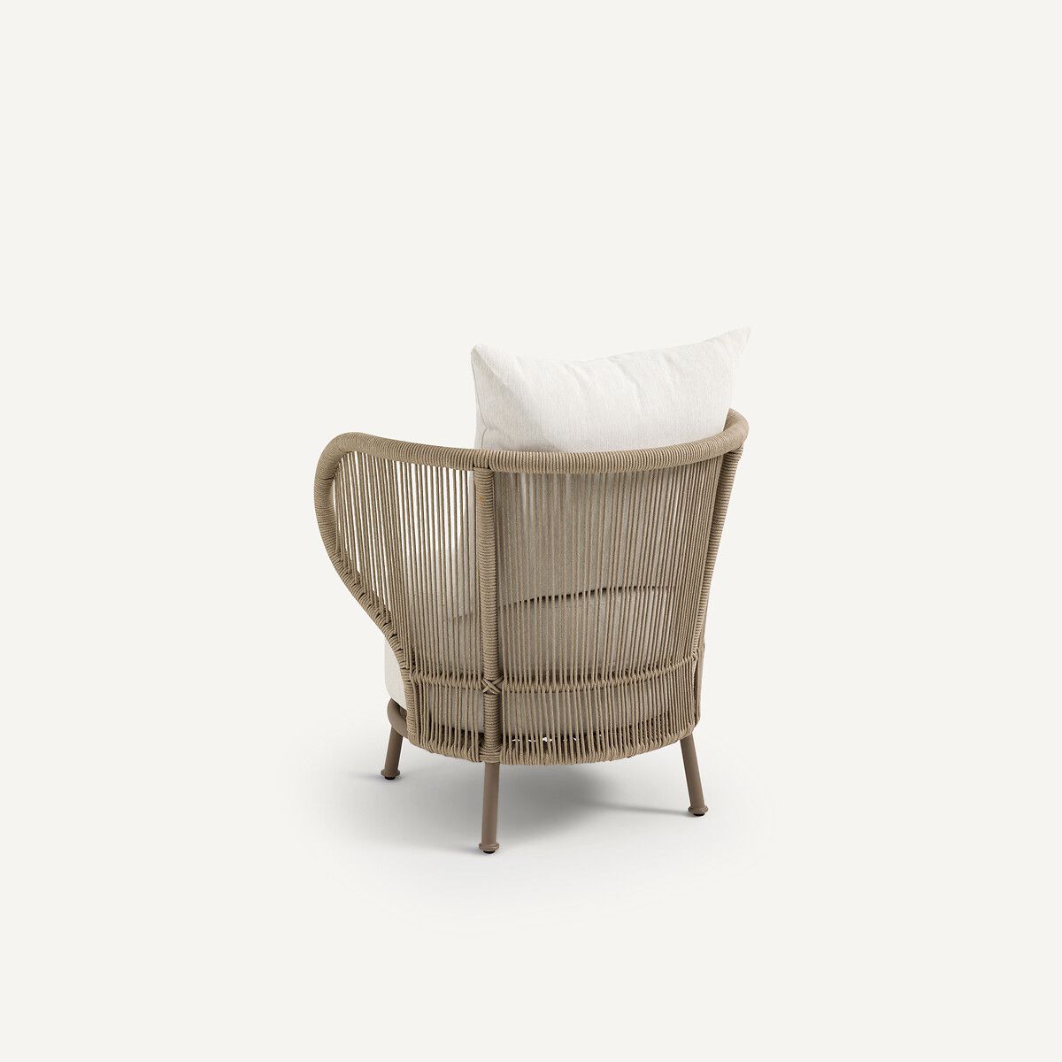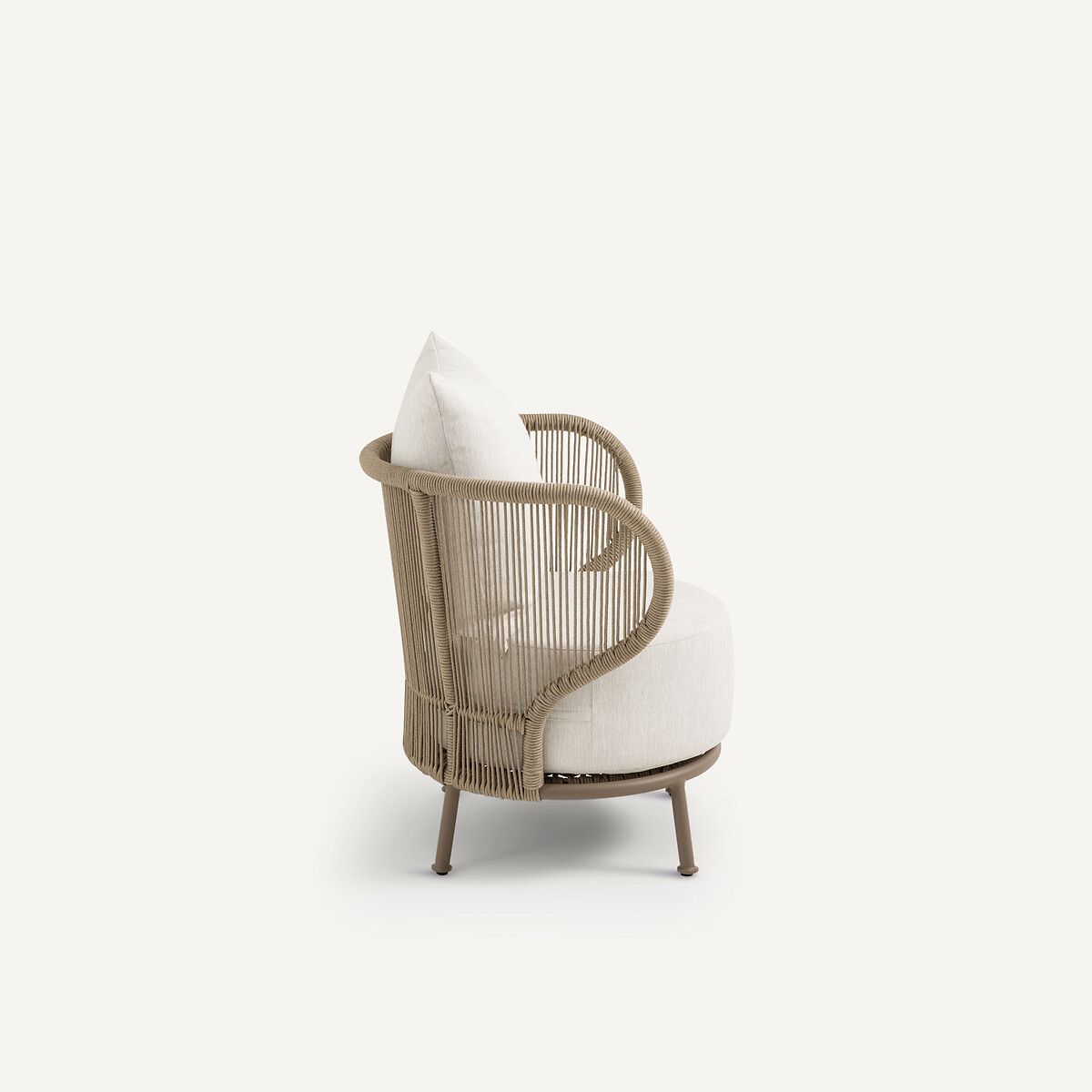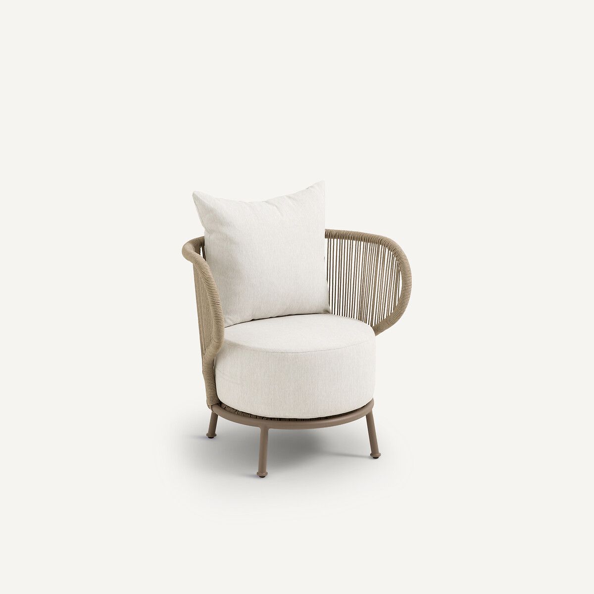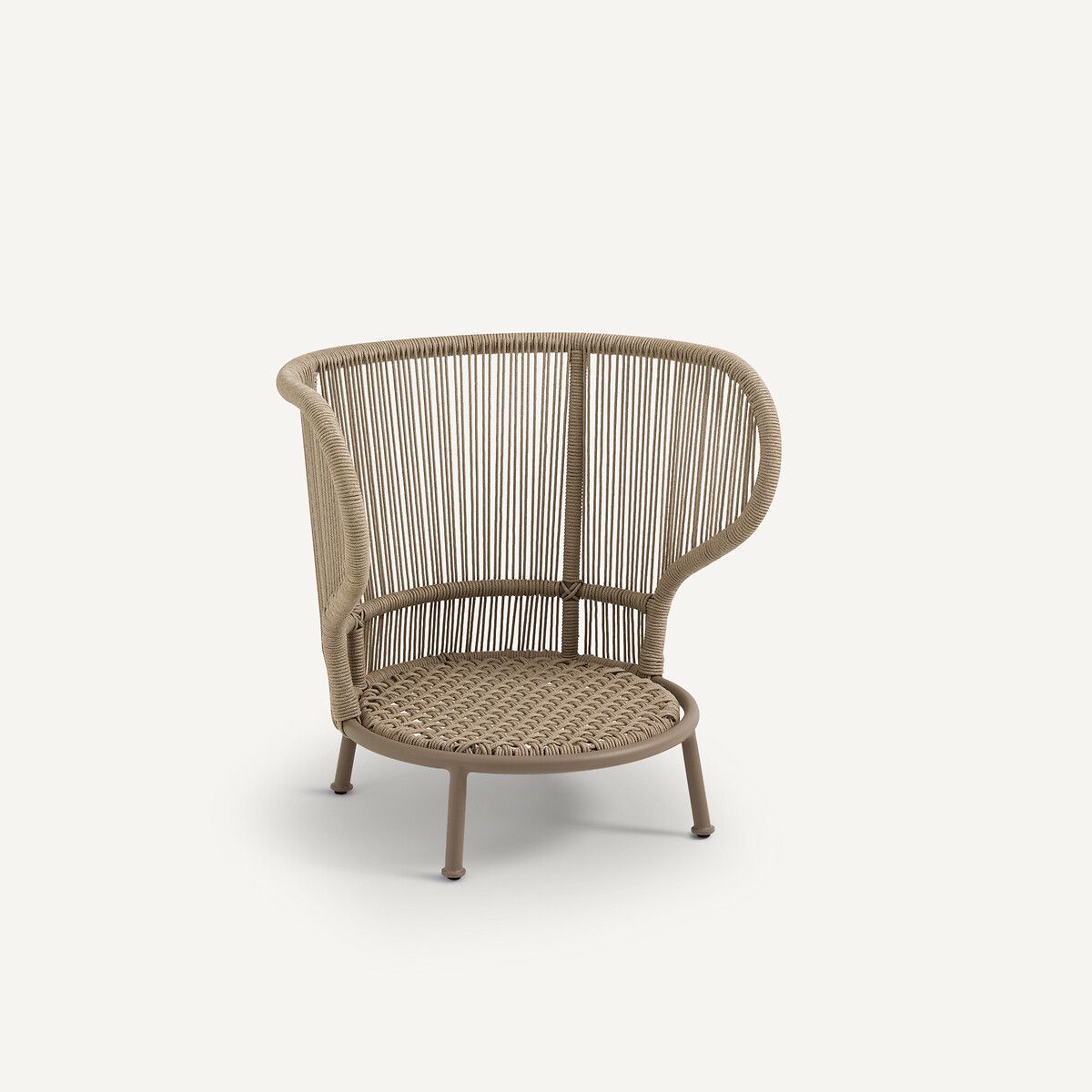 Прочное и легкое низкое садовое кресло с использованием натянутой и сплетенной вручную веревки, напоминающей ткань. Ажурная, облегающая и защитная спинка вогнутой формы создает ощущение интимности. Толщина сиденья с оптимальным комфортом. Синтетическая веревка, подушки из ткани олефин и каркас из алюминия с эпоксидным лаковым покрытием устойчивы к невзгодам погоды. Сделанное надолго, кресло Cabestan сотрет границы между вашим интерьером и садом или террасой.