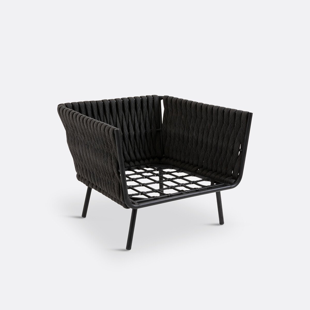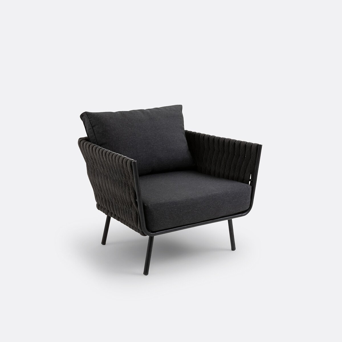 — Спинка и сиденье из плетенных ремней темно-серого цвета 100% полиэстер, устойчив к ультрафиолету УФ400