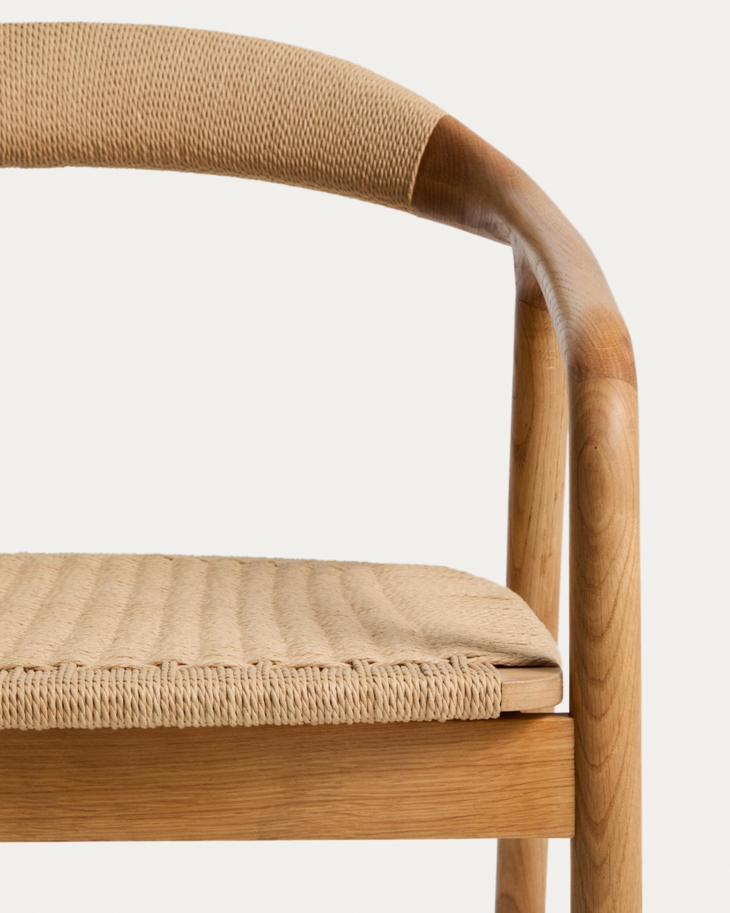 Derile сочетает в себе ручную работу и сбалансированные пропорции в изделиях, которые передают ощущение гармонии и тепла. Изготовленная из массива дуба, сертифицированного по стандарту FSC™ 100% с соблюдением цепочки поставок и модели ответственного лесопользования, конструкция имеет уникальную текстуру, раскрывающую характер материала. Матовое покрытие подчеркивает текстуру древесины и придает ей аутентичный вид. Сиденье и спинка сплетены вручную из бумажного шнура — легкого материала, обеспечивающего комфорт и сбалансированный визуальный эффект.