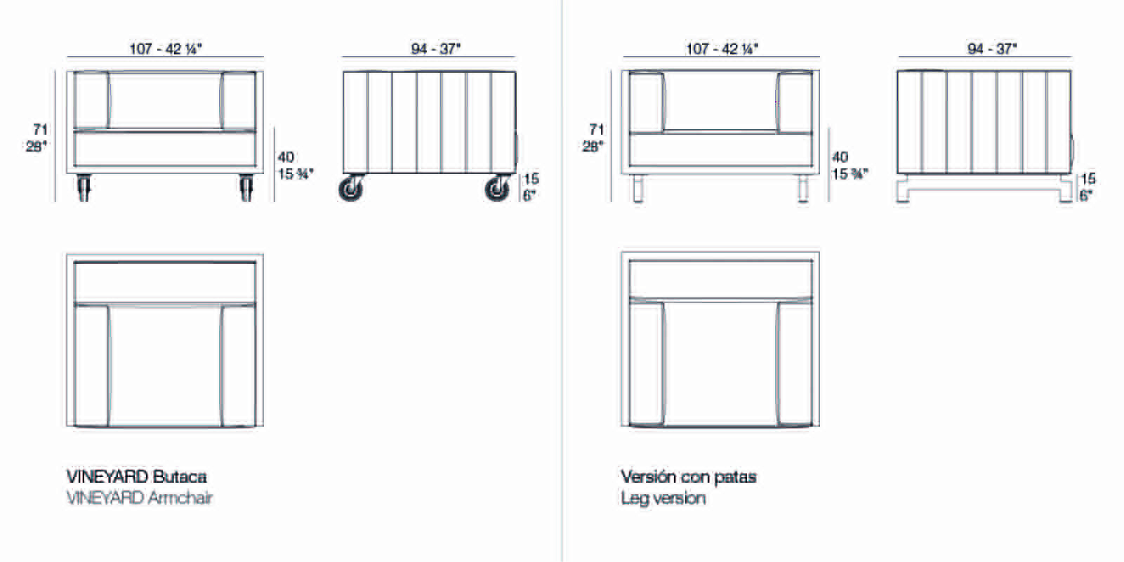 Коллекция Vineyard, разработанная Рамоном Эстеве для Vondom, вдохновлена его собственным загородным домом. Предметы интерьера задуманы в соответствии с интерьером дома, сохраняя стиль деревянных досок, обрамленных алюминием с порошковым покрытием, в сочетании с эргономичной обивкой.
