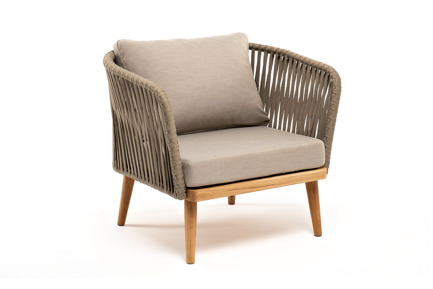 На боковинах - оплетка из синтетических лент, выполненных из полиэфирных волокон высокой прочности. Цвет плетения - серо-коричневый. Тип ткани - рогожка. Основание - дуб.