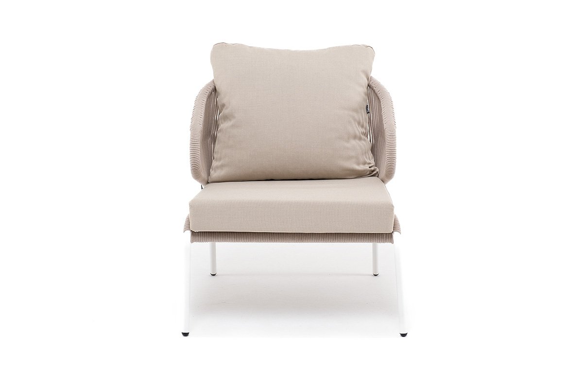 Изготовлен из алюминиевого каркаса, оплетенного вручную эластичными синтетическими лентами из высокопрочных полиэфирных волокон. Цвет каркаса - белый, оплетки – бежевый.