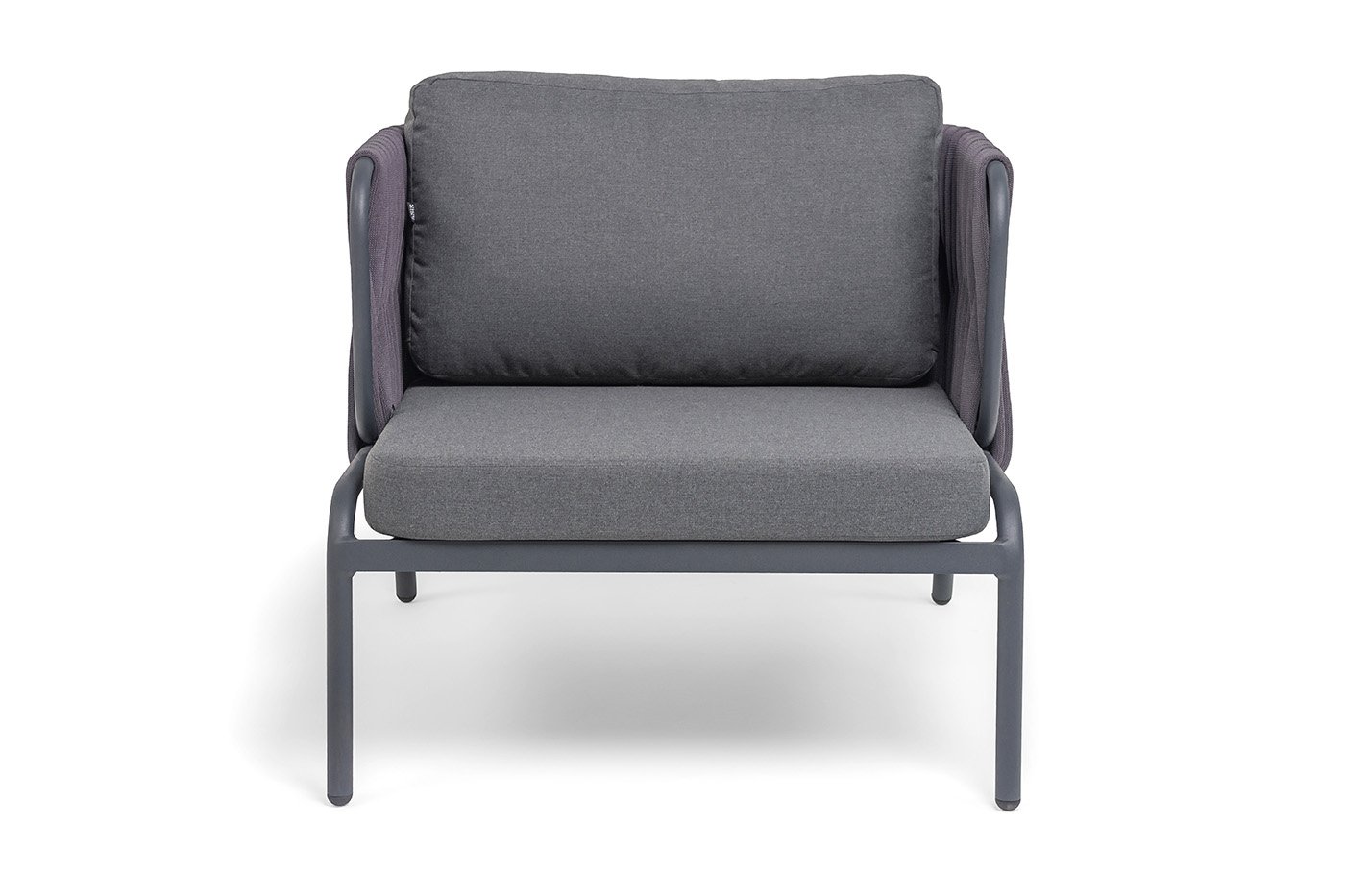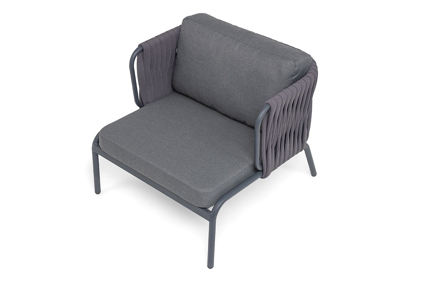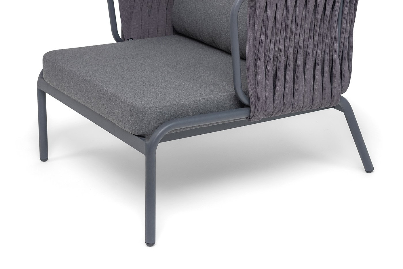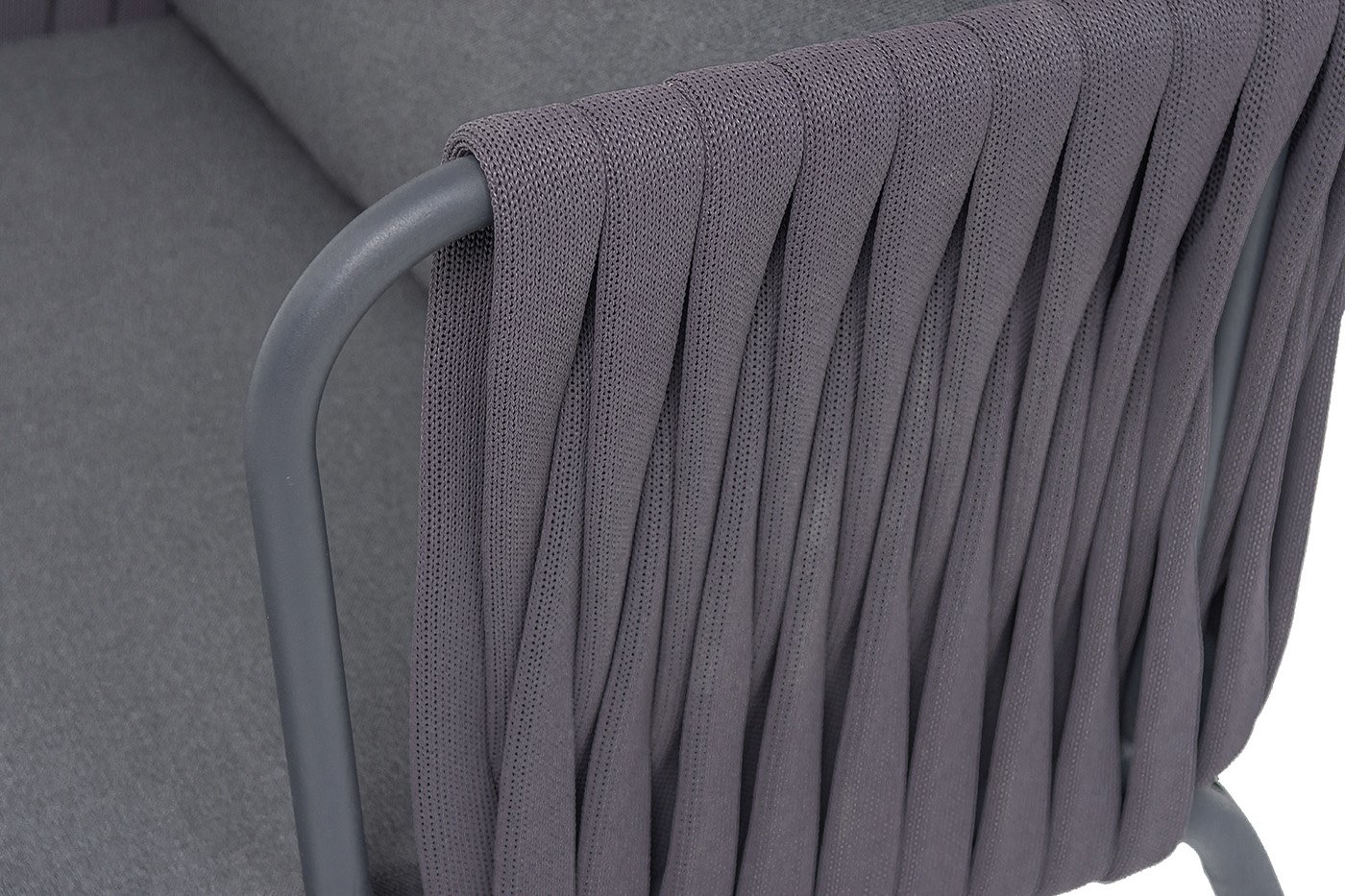 Плетение. Боковины и спинка вручную оплетены роупом — эластичными синтетическими лентами шириной (40 мм) из высокопрочных полиэфирных волокон. Серый оттенок оплетки