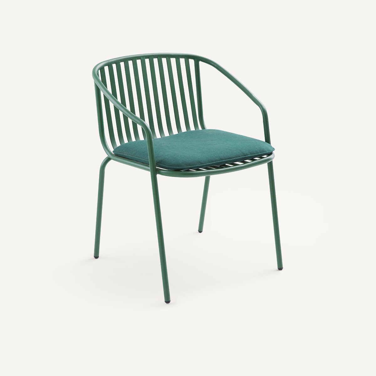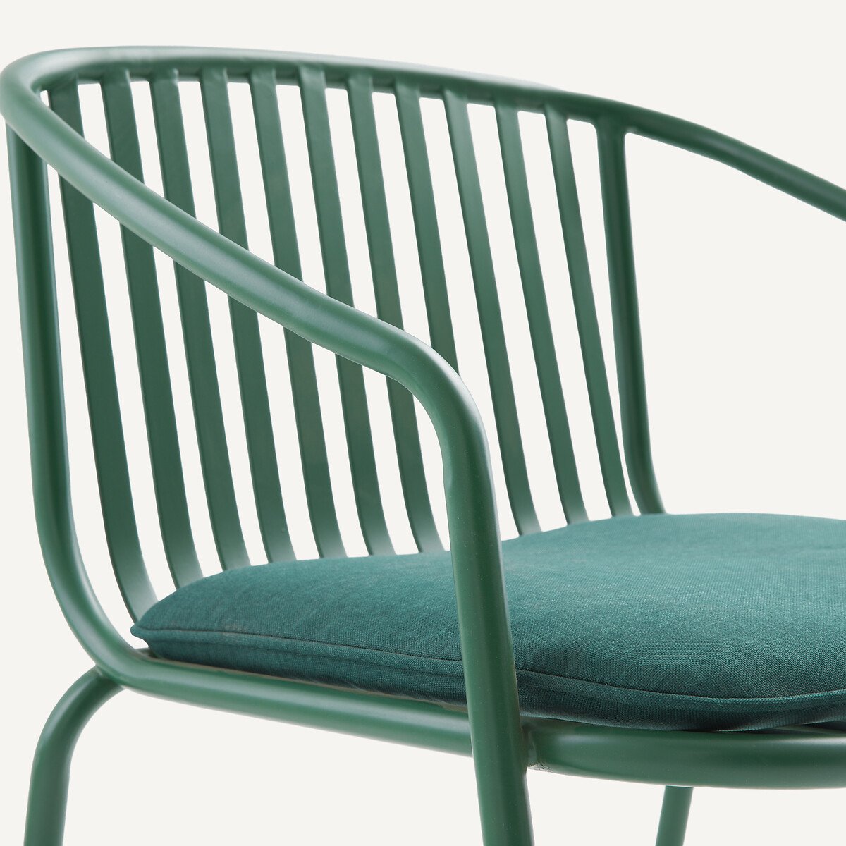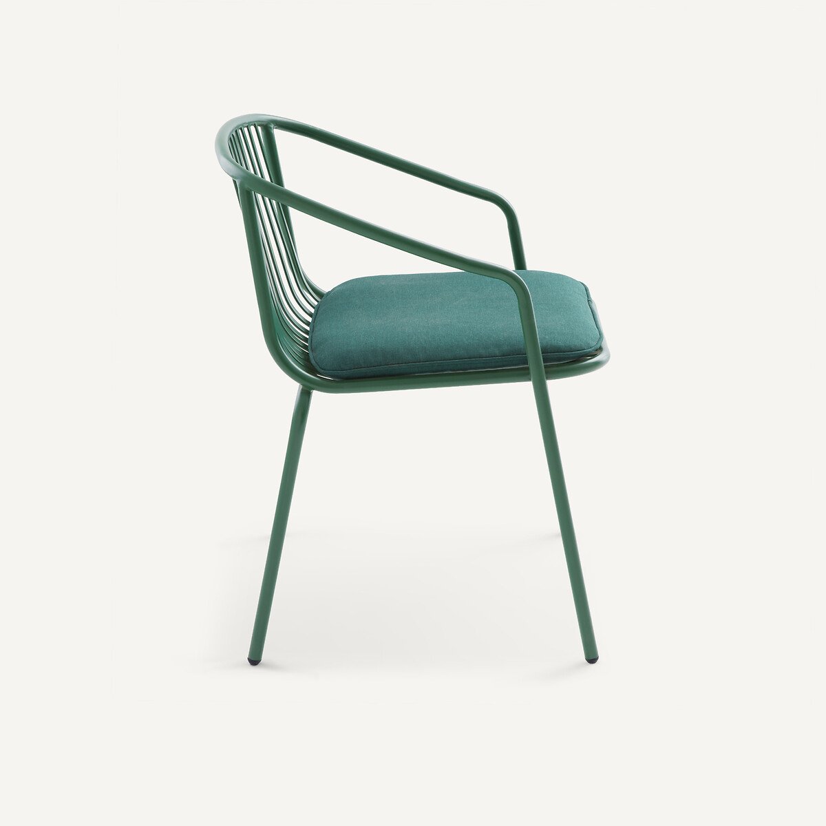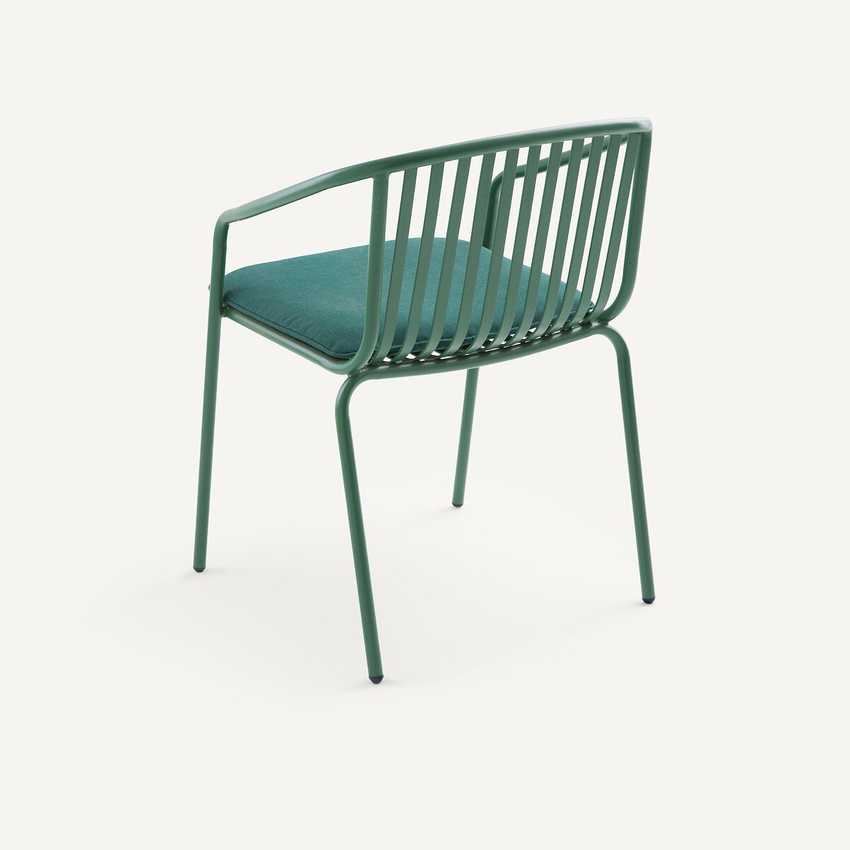 — Плоская съемная подушка для сиденья с кантом и удобными завязками для фиксации. Обивка: 100% полипропилен Olefin. Материал устойчив к выцветанию под воздействием света, плотность 210 г/м². Наполнитель: пенополиуретан плотностью 25 кг/м³.