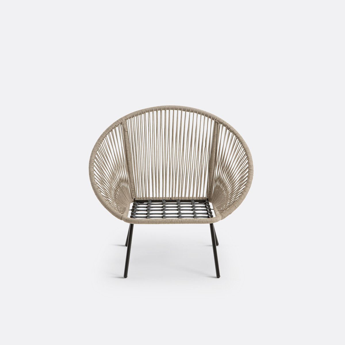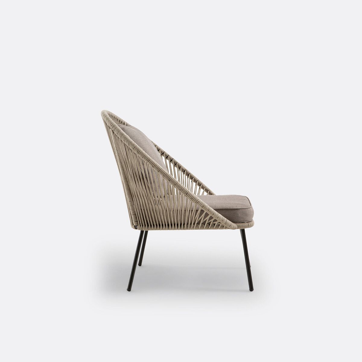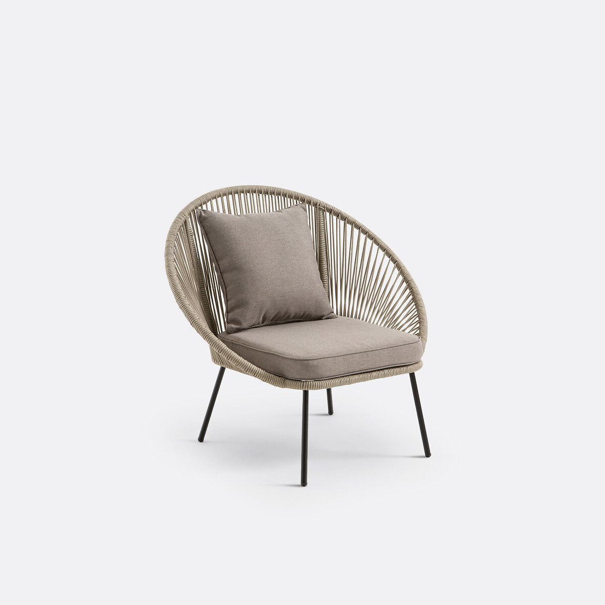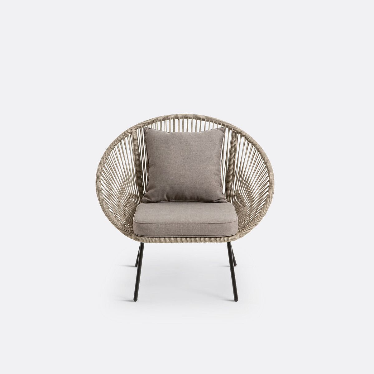 2 съемные подушки: 1 для спинки и 1 для сиденья, покрыто 100% полиэстером бежевого цвета, наполнение подушки для сиденья полиэфирная пена 18 кг/м³ и покрытие из полиэфирных волокон, наполнение подушки для спины – полиэстеровая вата.