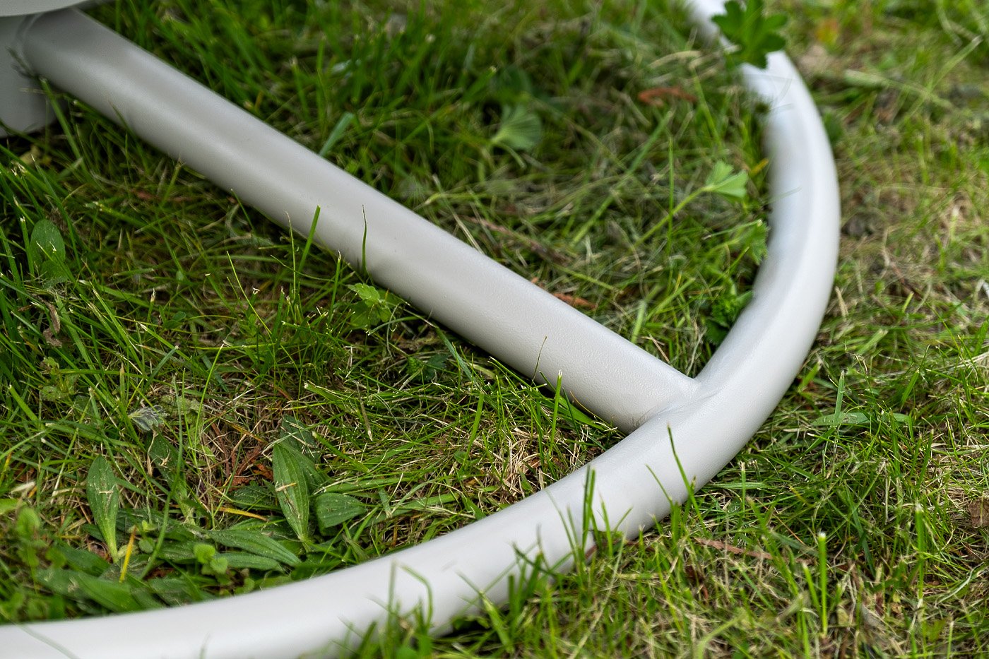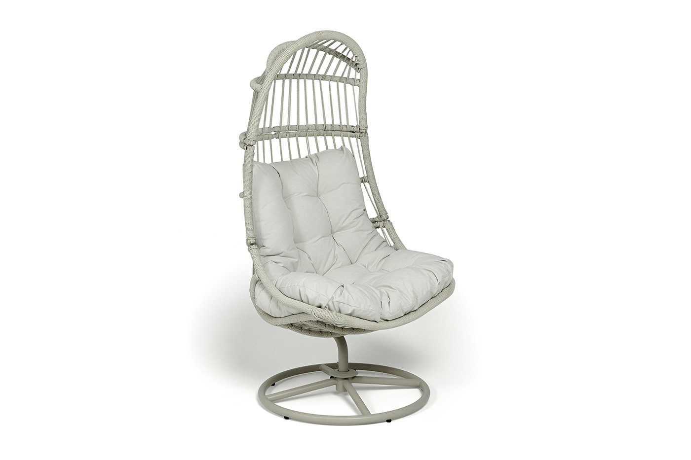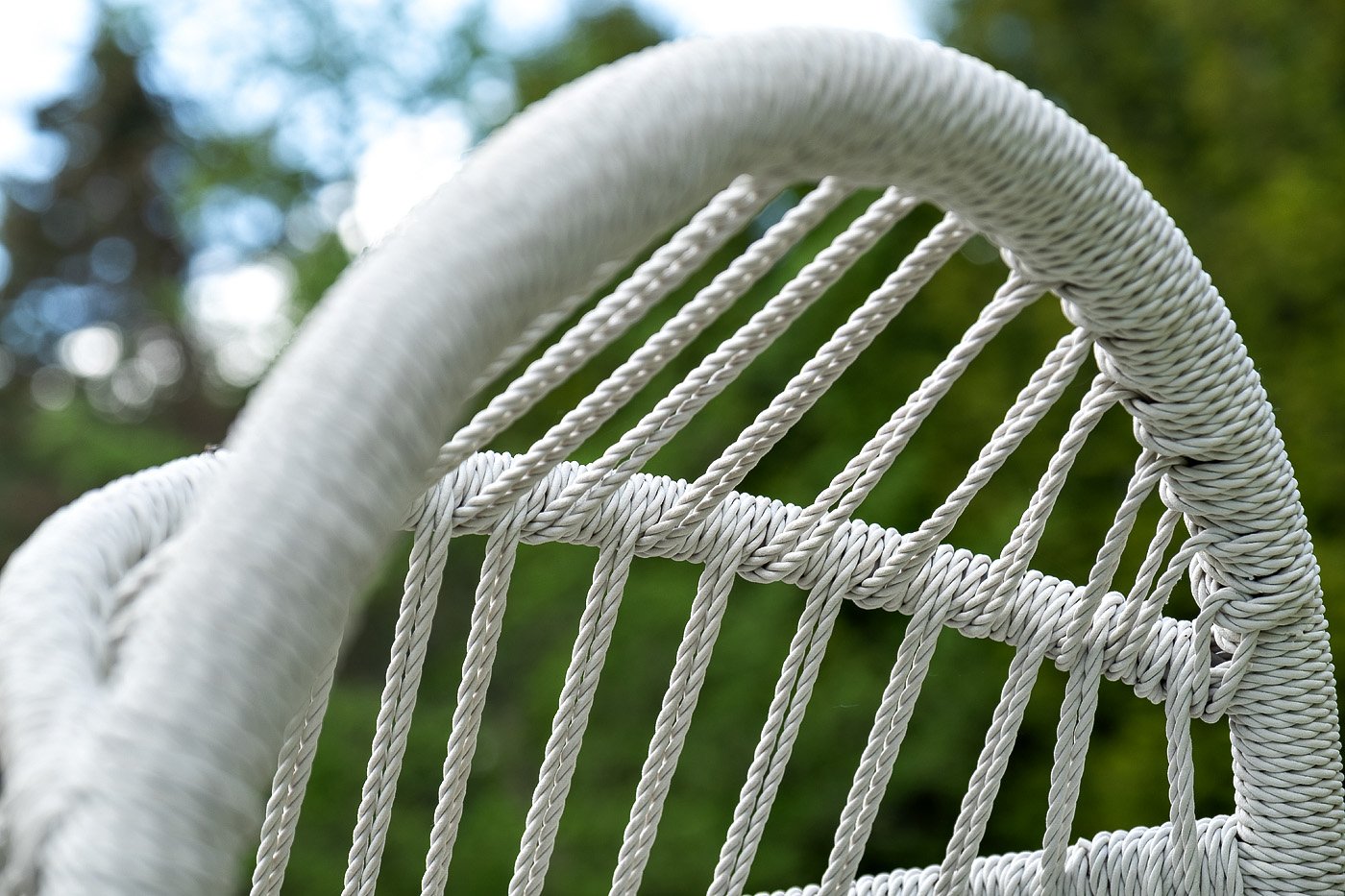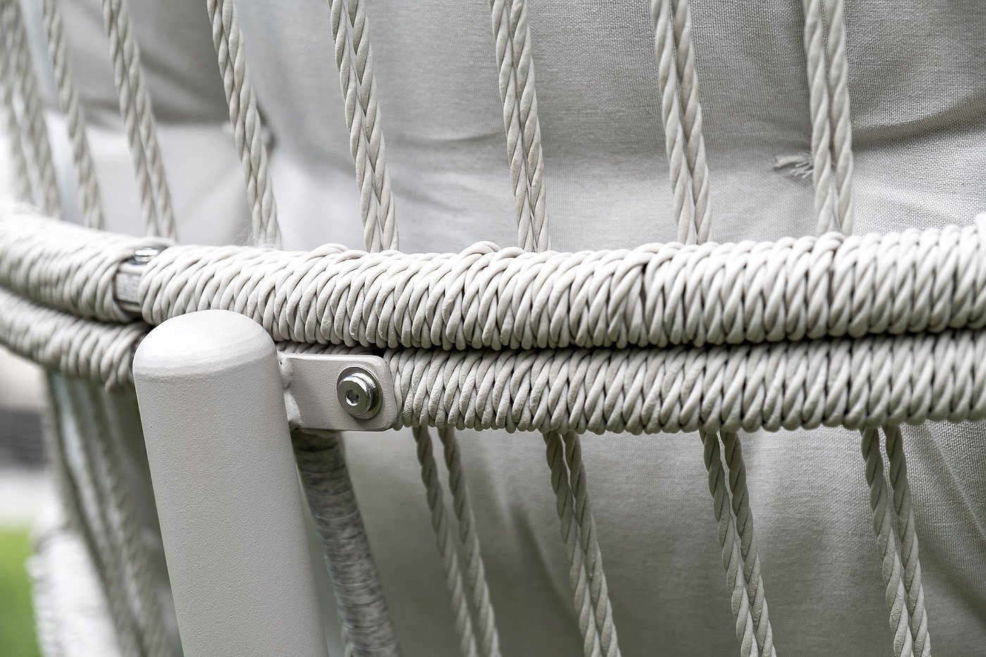 Каркас изготовлен из стали, окрашенного порошковой износостойкой краской белого цвета. Оплетка – плоский искусственный ротанг бежевого оттенка. Материал устойчив к перепадам погоды и подходит для использования на открытых пространствах.