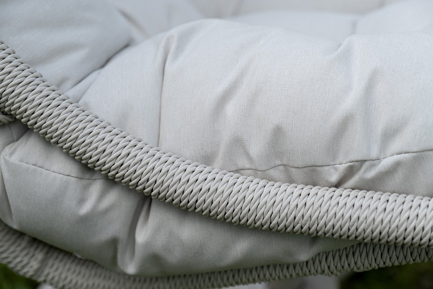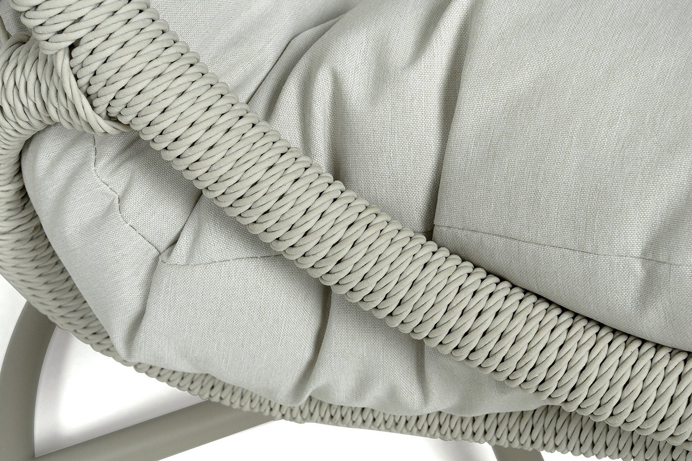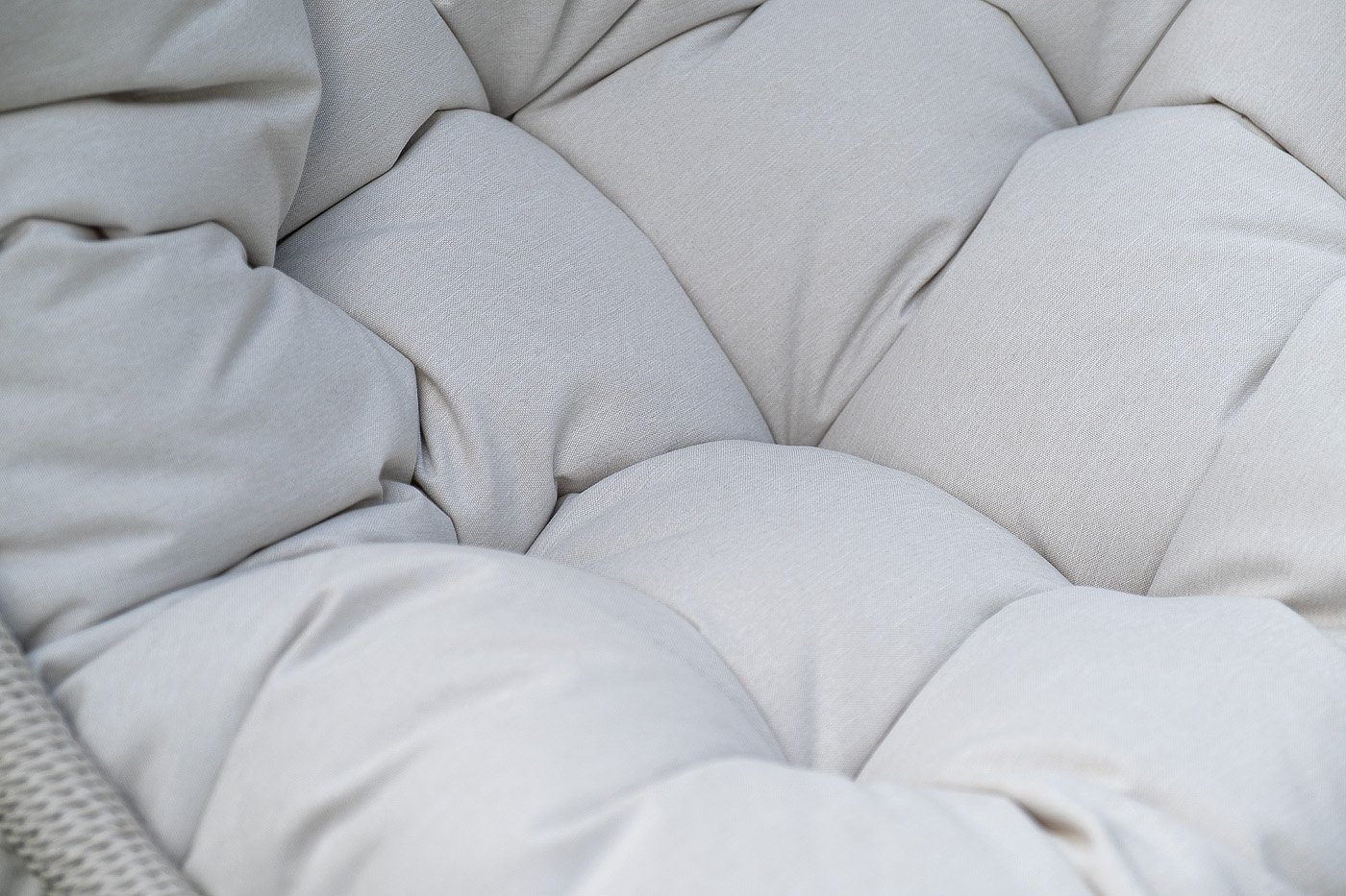 Для удобства сидения на кресле предусмотрена удлиненная подушка бежевого цвета из полиэстера плотностью 270гр/м2 с влагоотталкивающей пропиткой. Чехол – съёмный, допускается стирать в стиральной машине с использованием порошка.