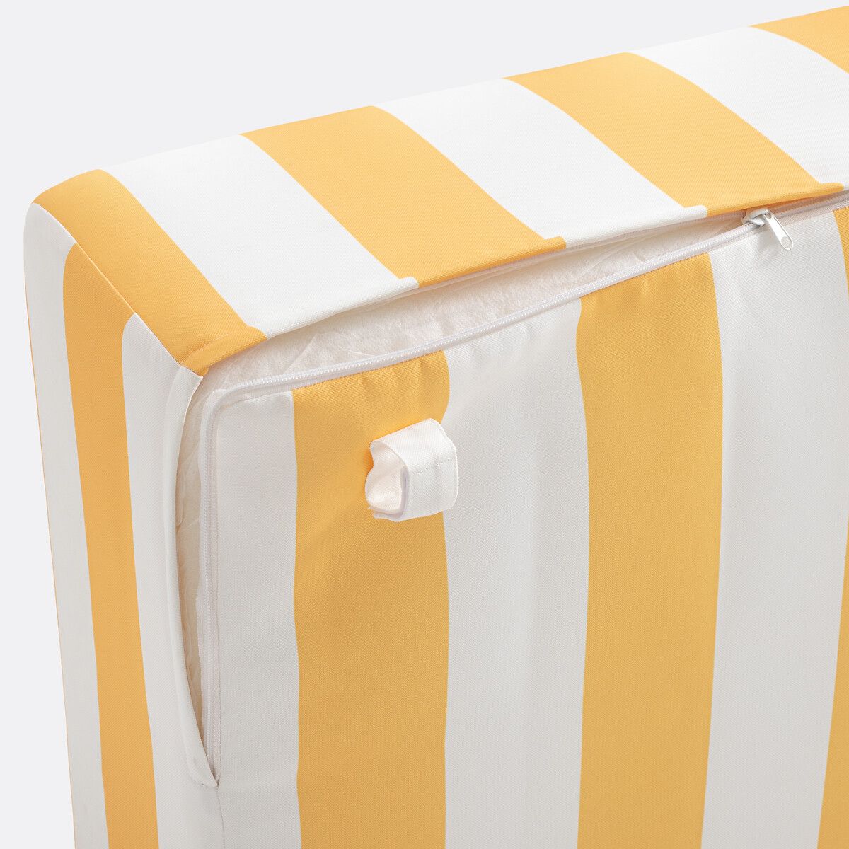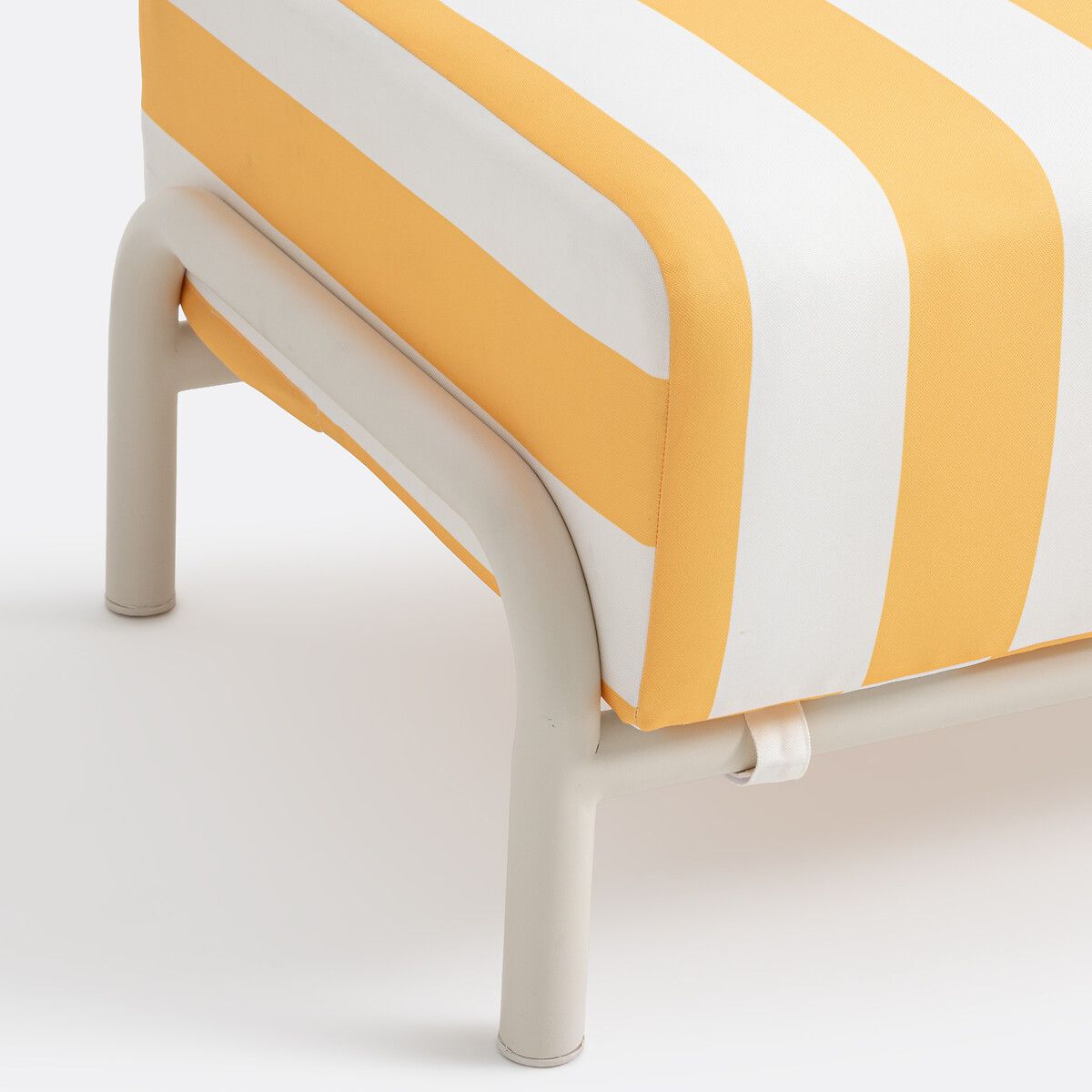 — Материалы: Каркас выполнен из трубчатой стали черного цвета с эпоксидным покрытием. Обивка подушки сделана из 100% полипропилена плотностью 250 г/м². Наполнитель подушки – пенополиуретан плотностью 25 и 27 кг/м³.