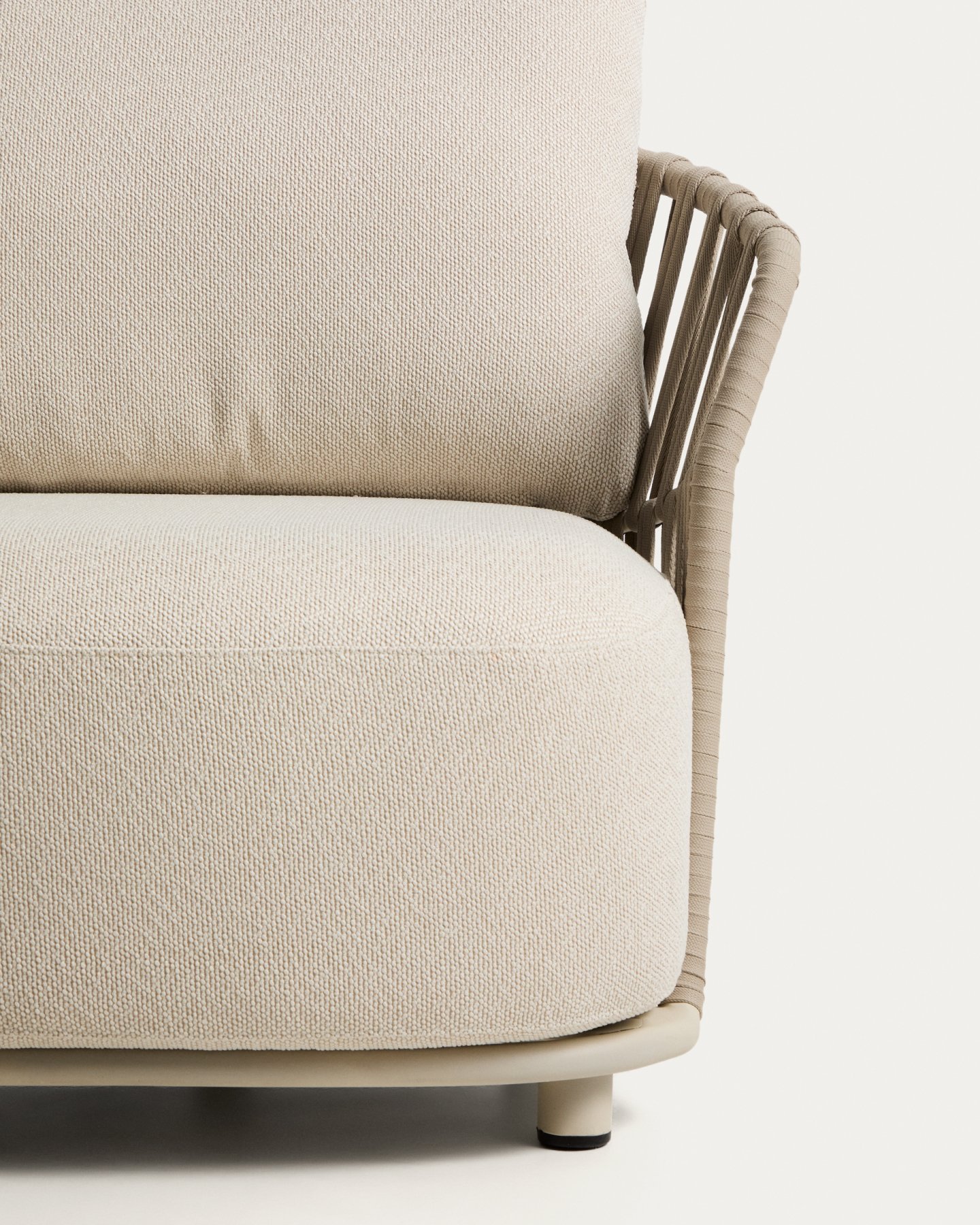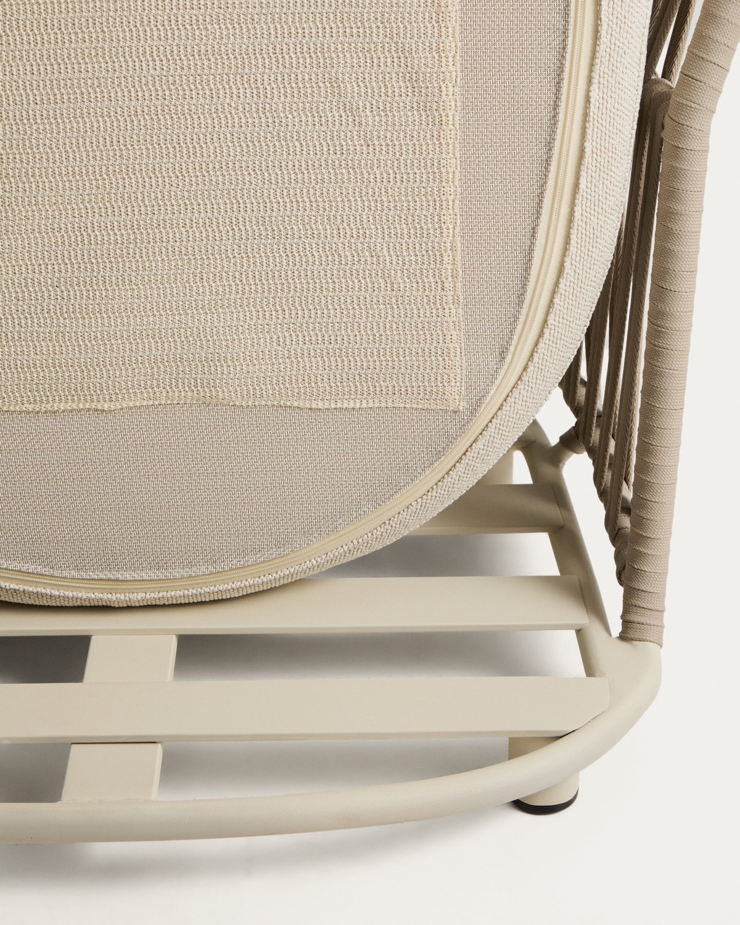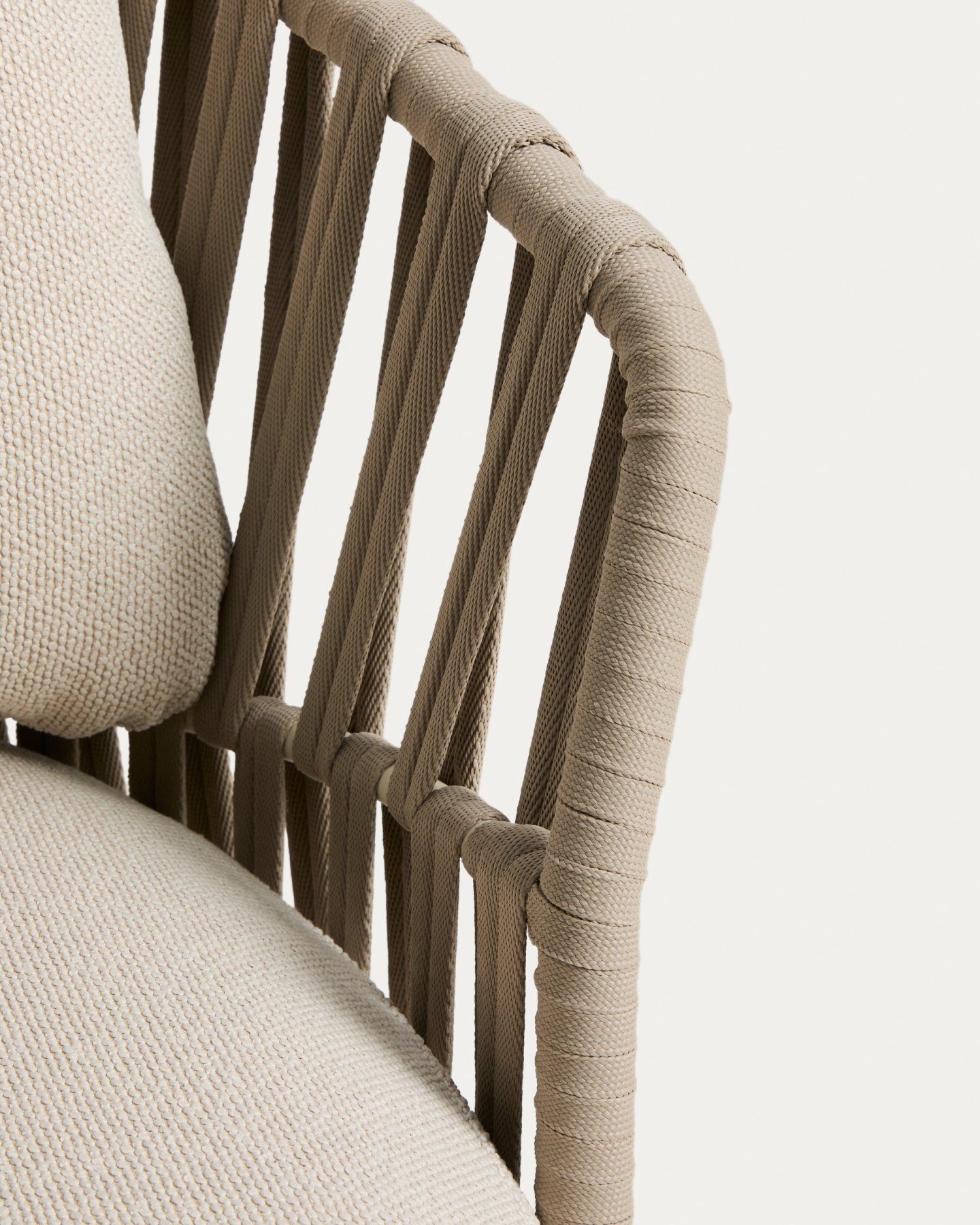 Коллекция Osani создана для того, чтобы гармонично дополнять интерьер и экстерьер, придавая им спокойствие. Алюминиевая конструкция обеспечивает легкость и устойчивость к ржавчине, коррозии и УФ-излучению, что делает ее предназначенной для длительного использования на открытом воздухе. Спинка, выполненная из плетеного вручную шнура, подчеркивает характер изделия и обеспечивает комфортную поддержку, сохраняя при этом хорошее состояние под воздействием солнечных лучей. Подушки имеют съемные чехлы для удобства ухода; мы рекомендуем хранить их в недоступном для дождливых дней месте.
