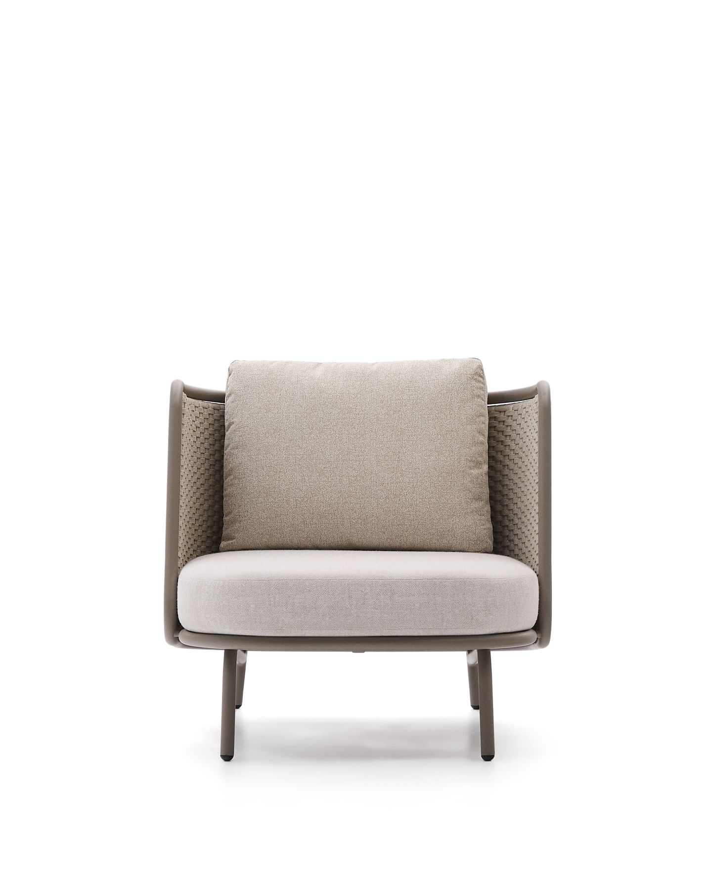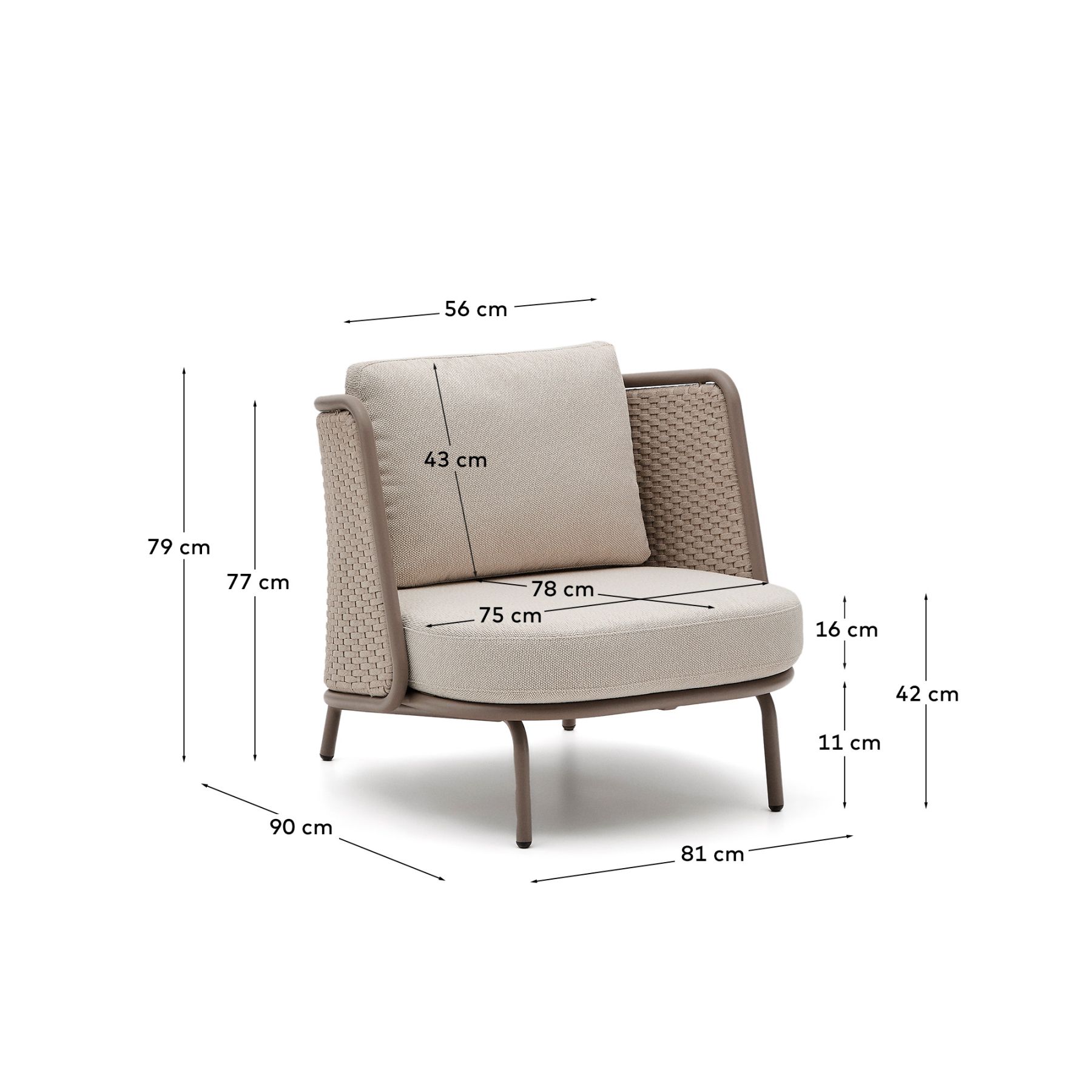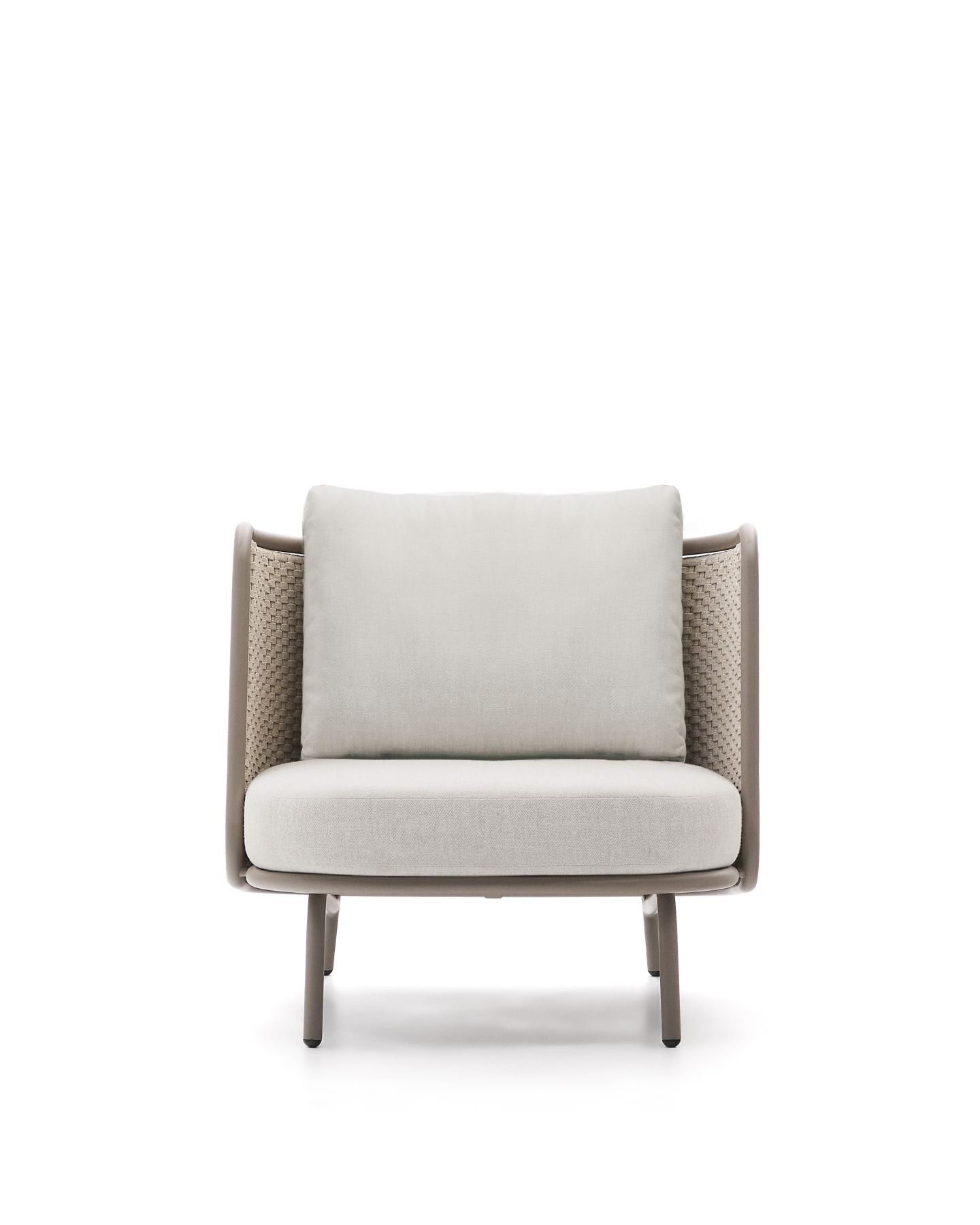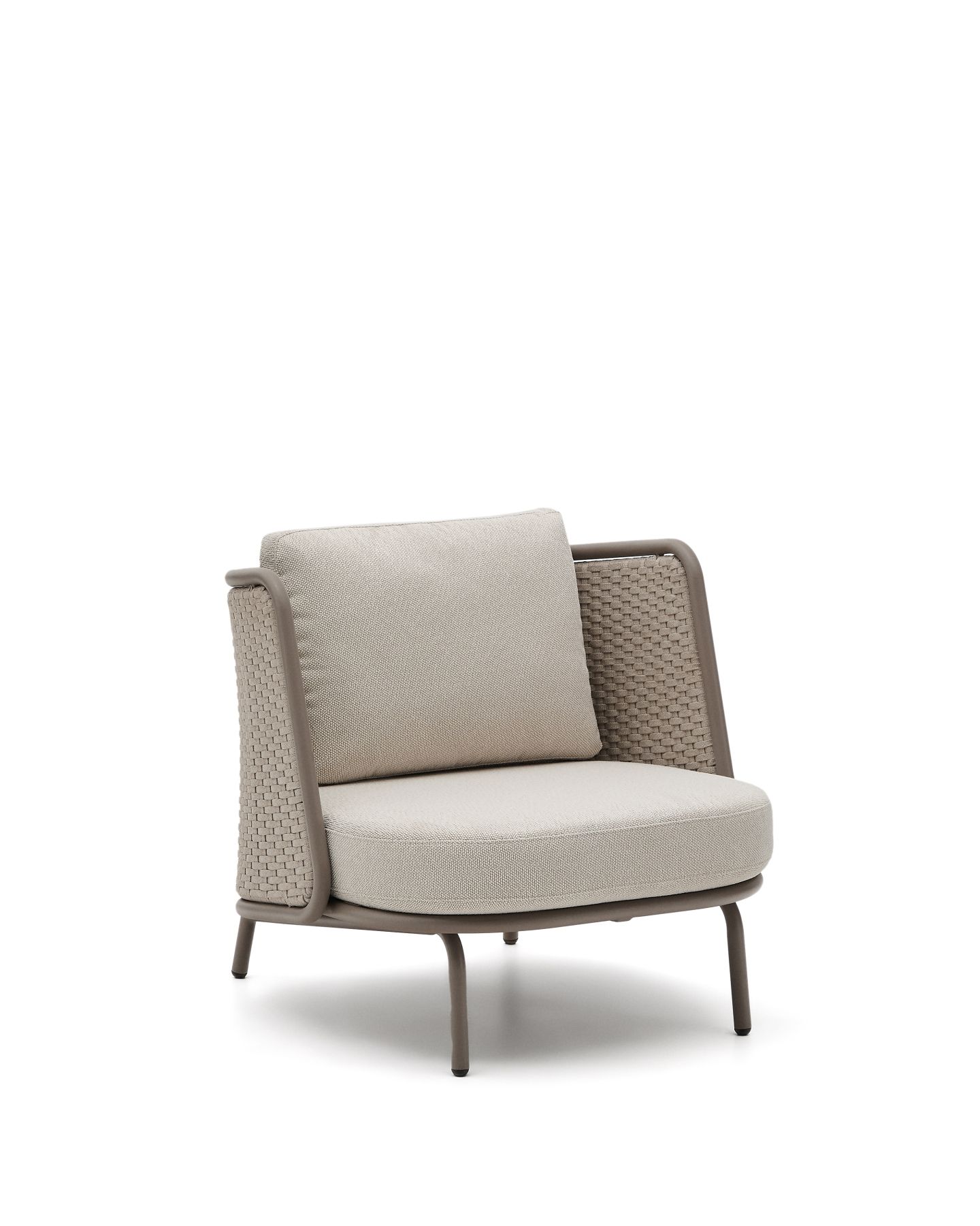 С алюминиевой конструкцией и сиденьем и спинкой из веревочного шнура, устойчивыми к УФ-излучению, сплетенного вручную, он выделяется своим легким и современным дизайном. Инновационный процесс E-Coating обеспечивает максимальную устойчивость к ржавчине и коррозии, что делает его идеальным для использования в помещении и на улице. Подушки съемные, водоотталкивающие и устойчивы к УФ-излучению. Кроме того, они изготовлены на 95% из переработанного материала и получены от сертифицированного поставщика Global Recycled Standard, что гарантирует снижение повреждений при производстве первичного материала. Для дополнительной заботы мы рекомендуем убирать их в дождливые дни.