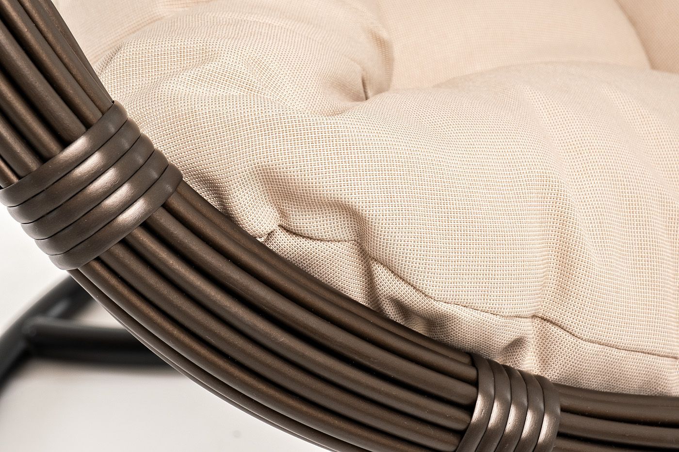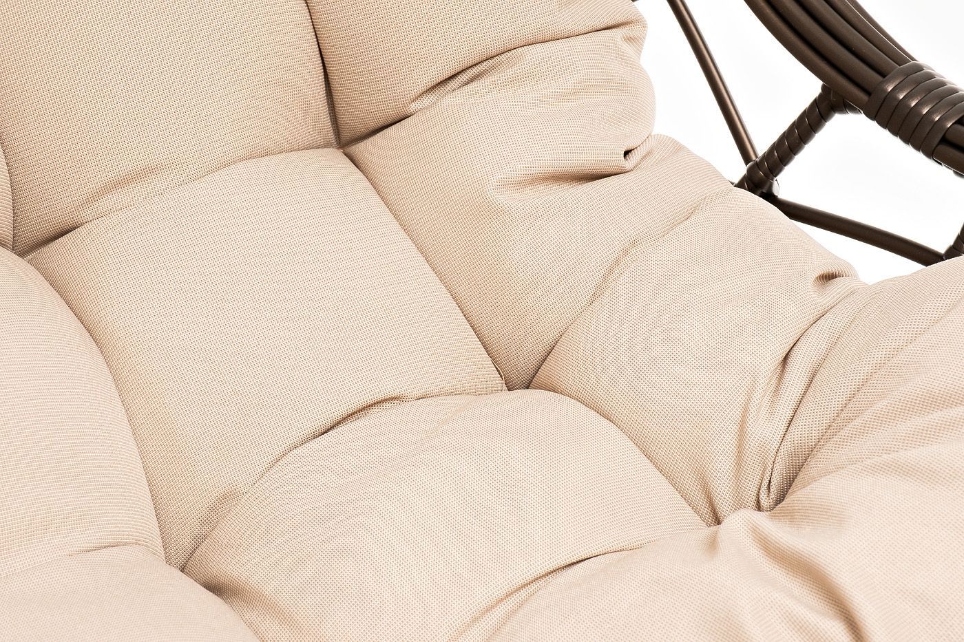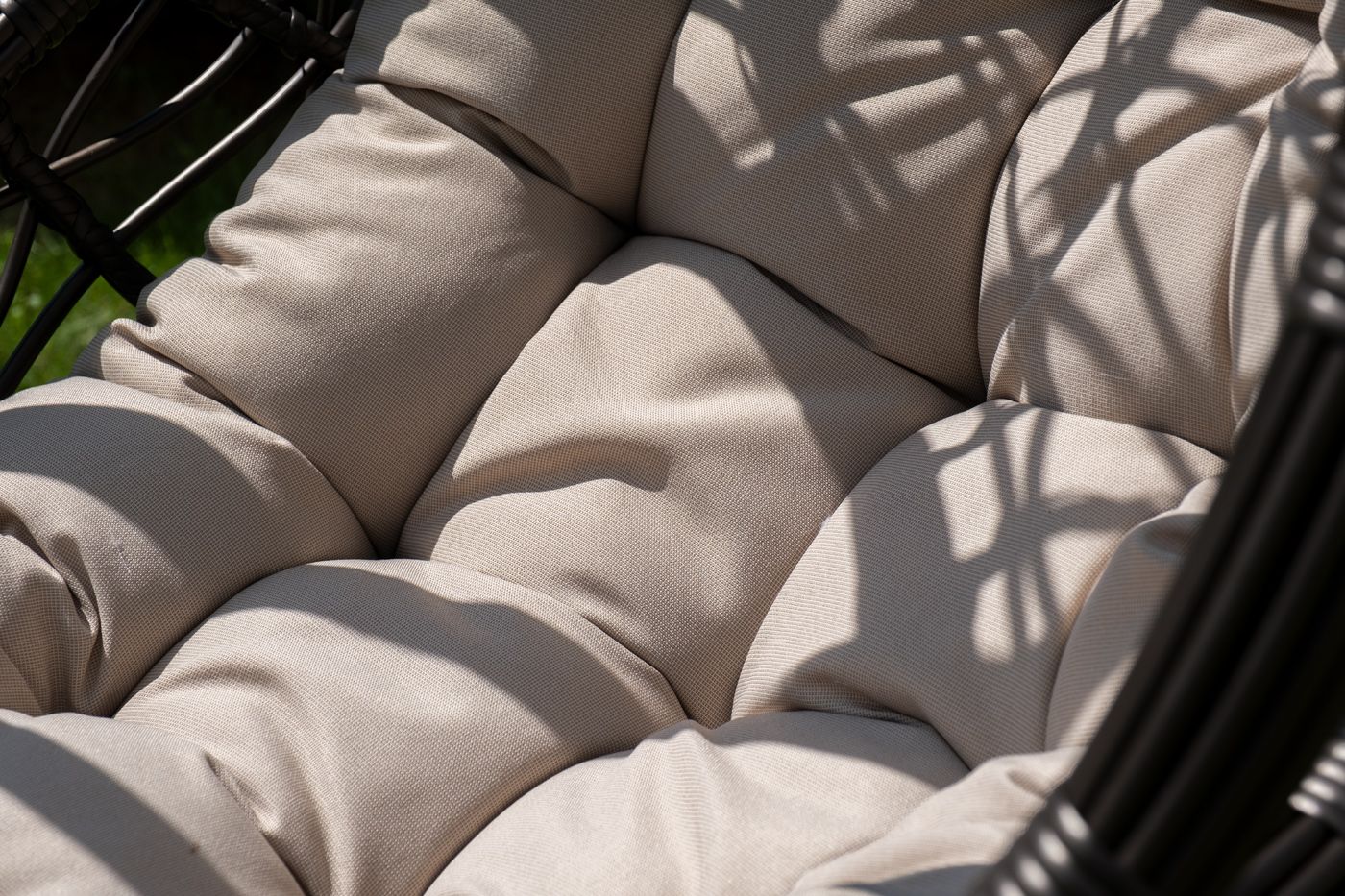 Для удобства сидения на кресле предусмотрена удлиненная подушка бежевого цвета из полиэстера с влагоотталкивающей пропиткой. Чехол – съемный, допускается стирать в стиральной машине с использованием порошка.