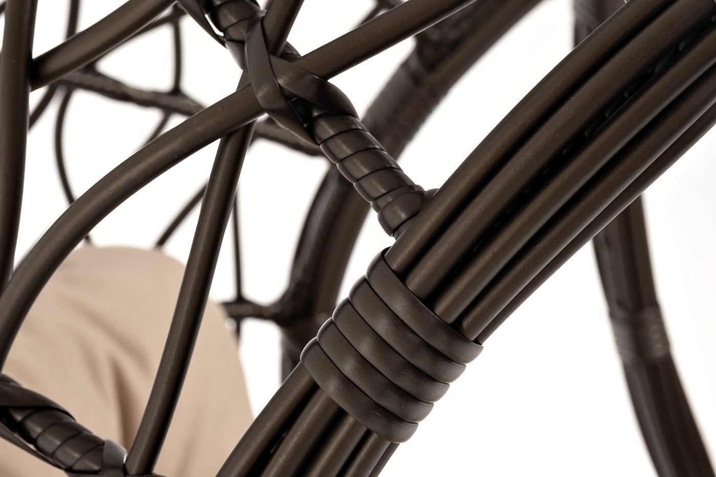 Уютное садовое кресло-кокон «Венеция» для организации лаунж-зоны. Основание изготовлено из стали окрашенного порошковой износостойкой краской черного оттенка, вручную оплетенного круглый искусственным ротангом бронзового цвета. Этот материал не боится перепадов температуры, прямых солнечных лучей, дождя и ветра.
