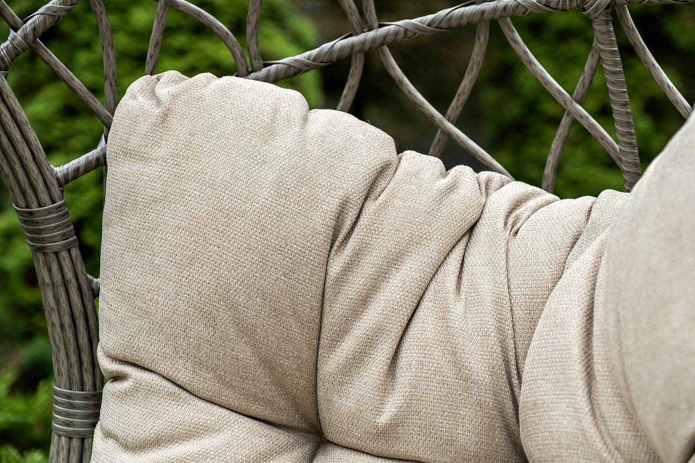Для удобства сидения на кресле предусмотрена удлиненная подушка бежевого цвета из полиэстера с влагоотталкивающей пропиткой. Чехол – съёмный, допускается стирать в стиральной машине с использованием порошка.