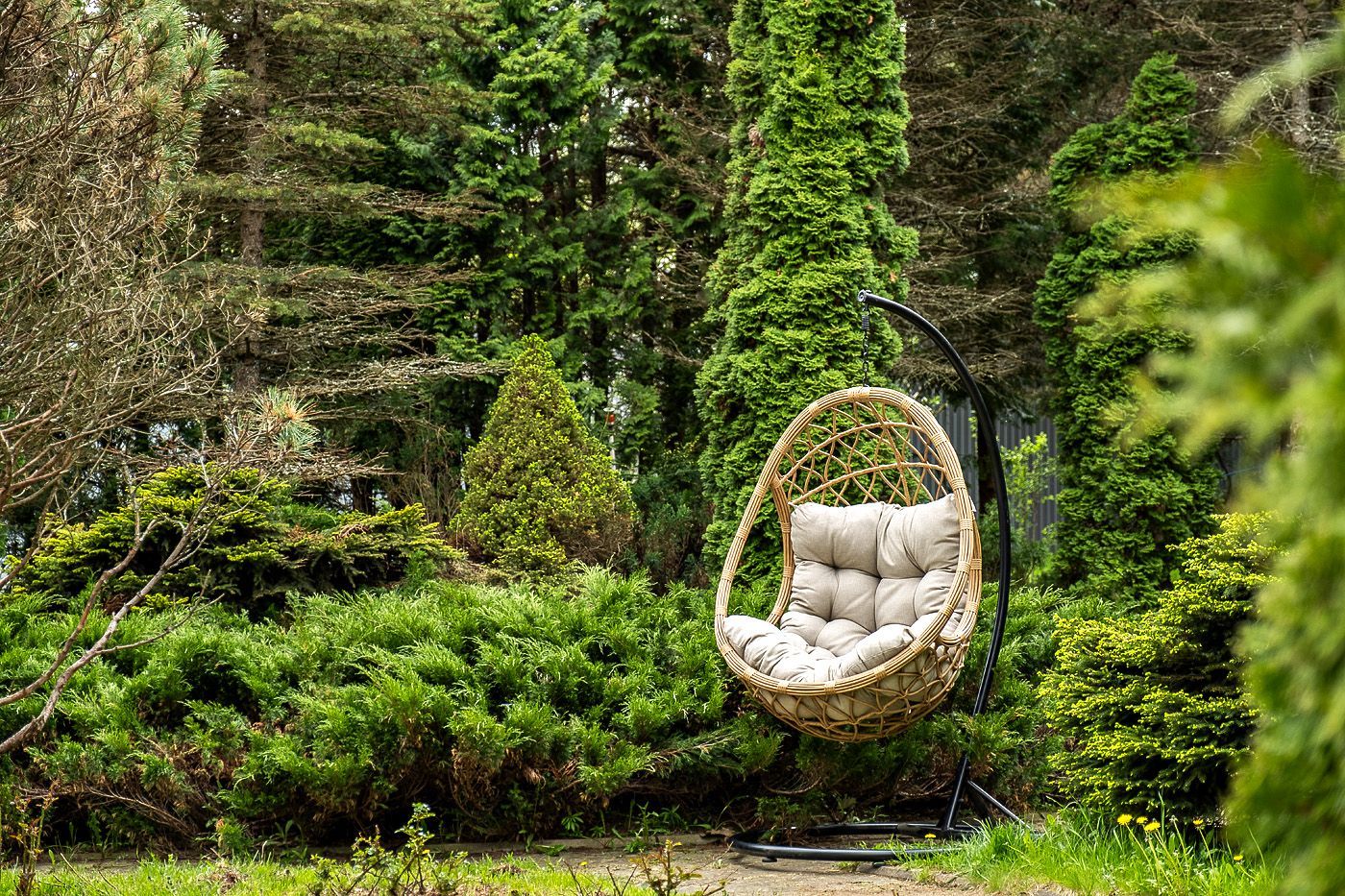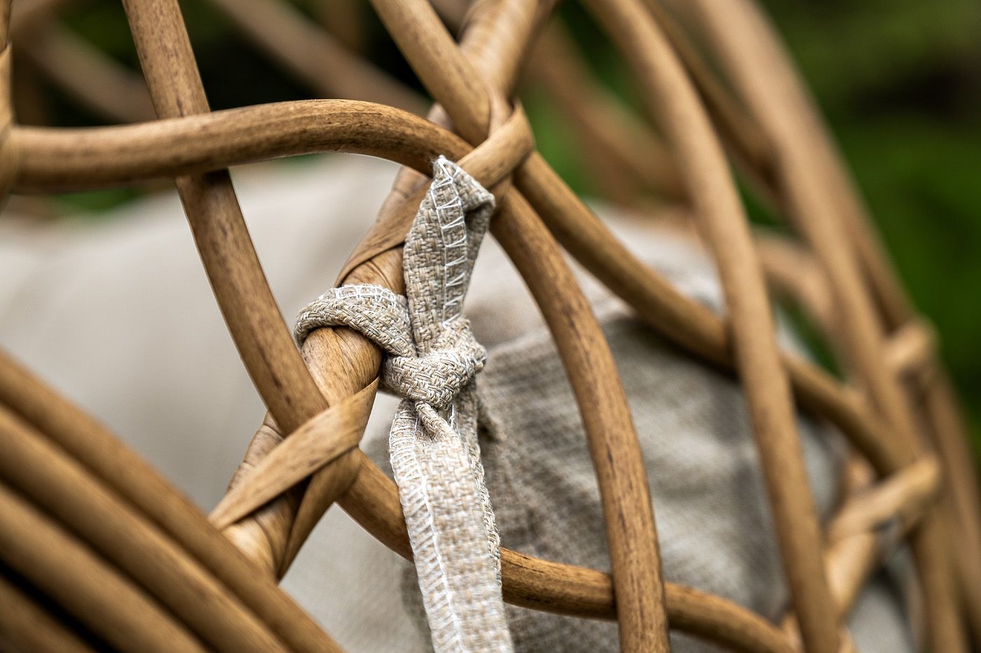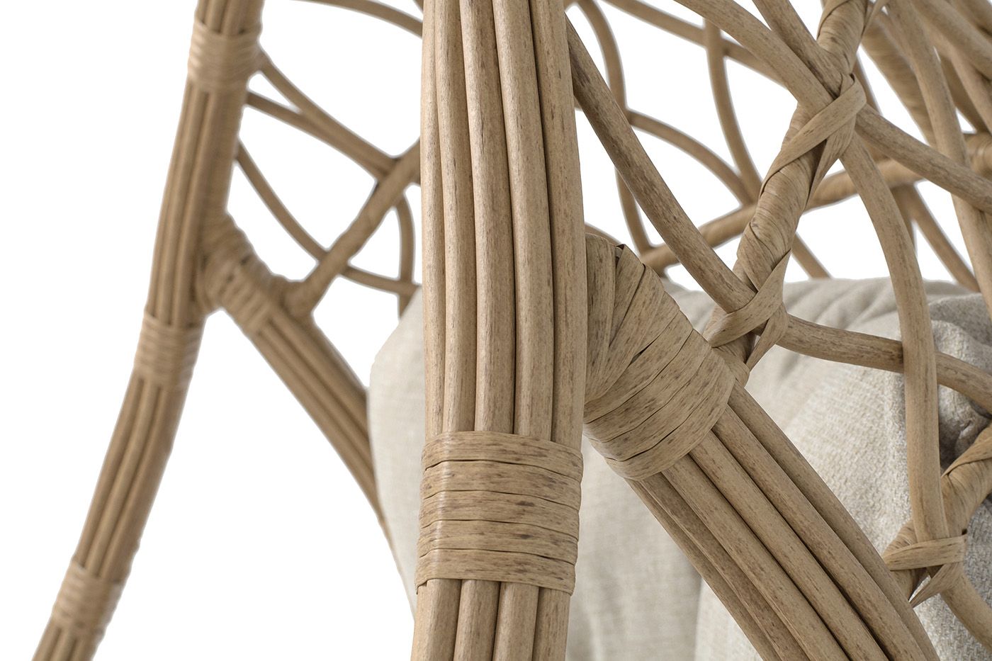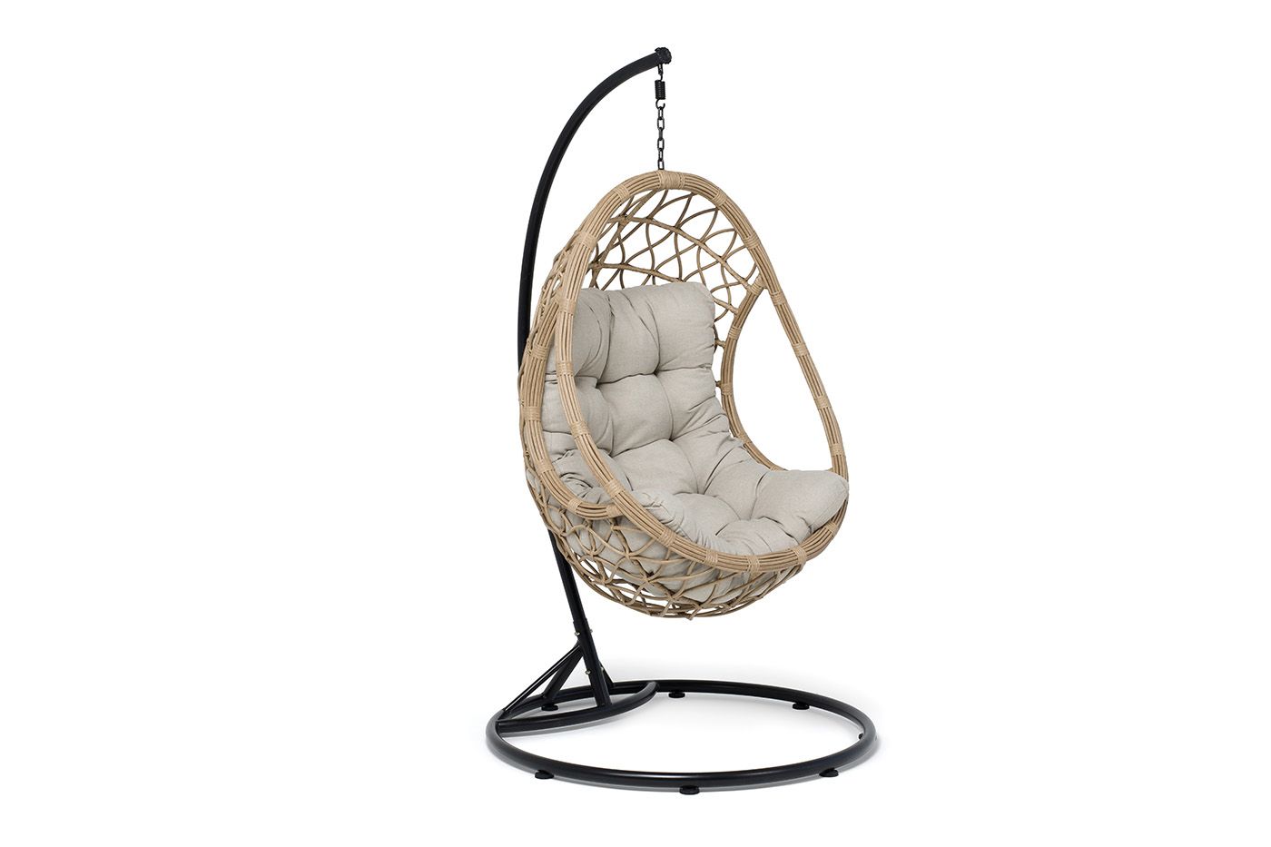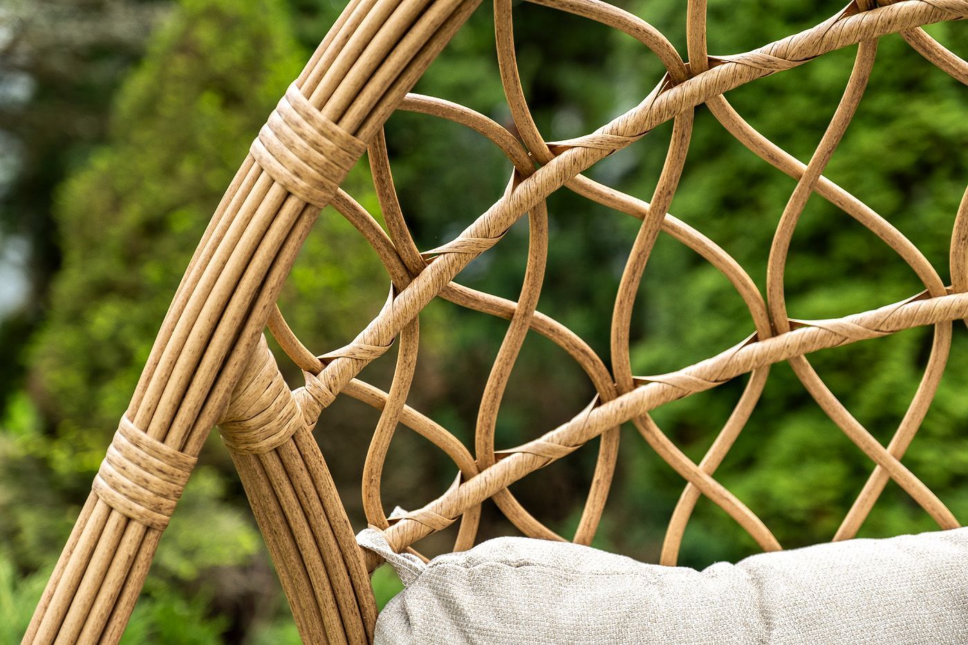 Уютное садовое кресло-кокон «Венеция» для организации лаунж-зоны. Основание изготовлено из стали окрашенного порошковой износостойкой краской черного оттенка, вручную оплетенного круглый искусственным ротангом соломенного цвета. Этот материал не боится перепадов температуры, прямых солнечных лучей, дождя и ветра.