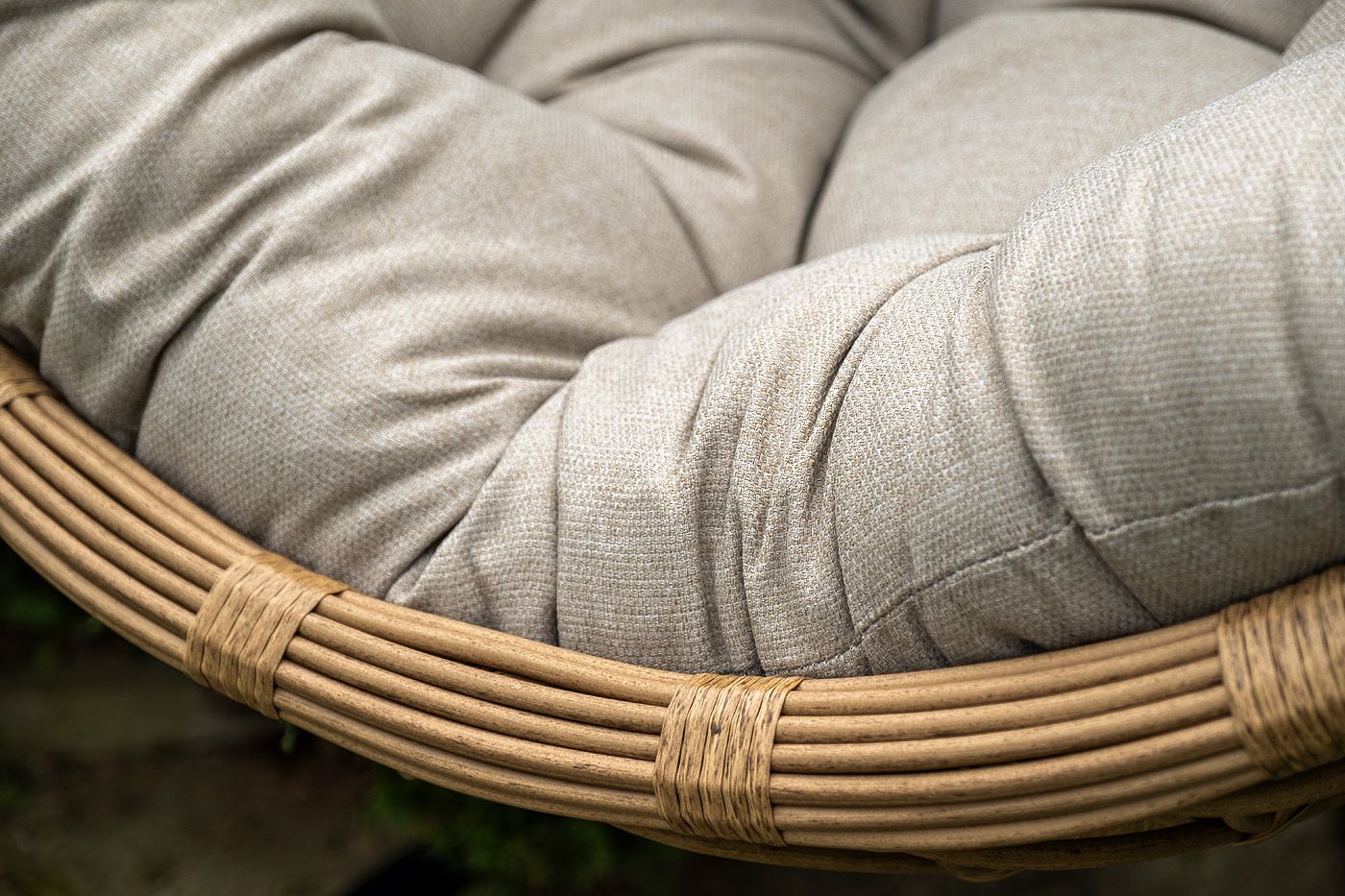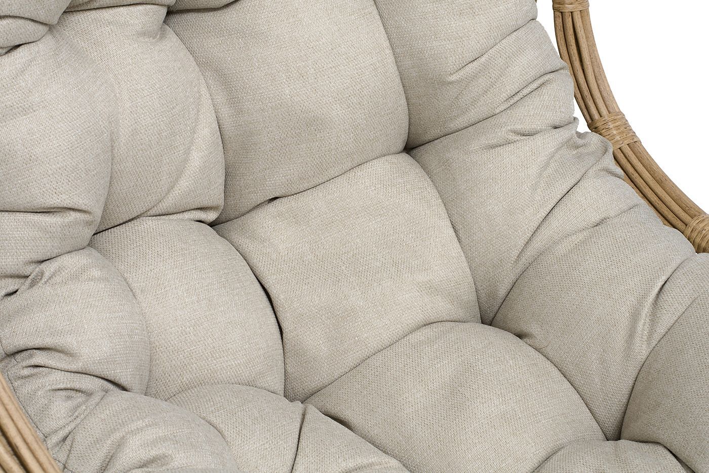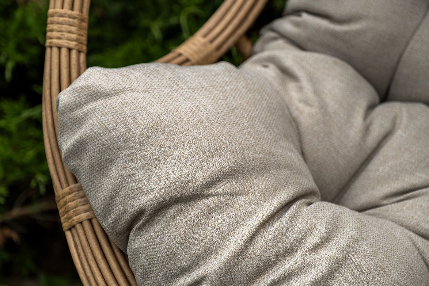 Для удобства сидения на кресле предусмотрена удлиненная подушка бежевого цвета из полиэстера с влагоотталкивающей пропиткой. Чехол – съёмный, допускается стирать в стиральной машине с использованием порошка.
