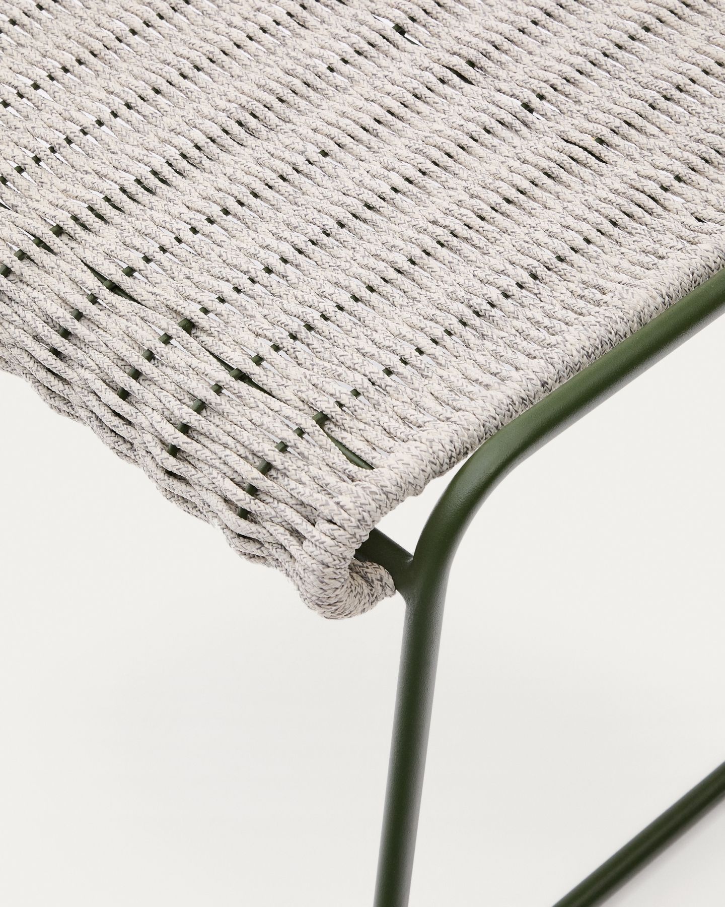 С оцинкованной стальной конструкцией он выделяется своей долговечностью благодаря своей устойчивости к ржавчине и коррозии, а также своей способностью вписываться в любые виды открытых пространств. Изготовленный из сплетенного вручную, устойчивого к УФ-излучению веревочного шнура в стержневой структуре, он предлагает комфорт и уникальный стиль.