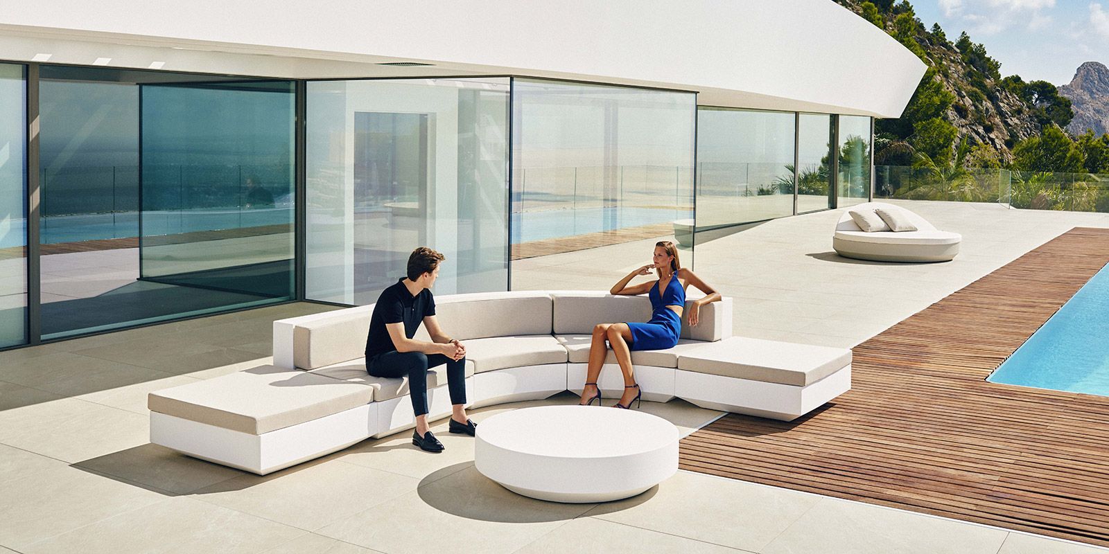 Эта обширная коллекция уличной мебели и горшков для растений призвана предложить комфорт и качество внутренней мебели без потери ее первоначальных качеств. VELA - это модульная система с элементарной призматической геометрией, уникальность которой основана на балансе пропорций. Элементы могут сочетаться между собой, чтобы интегрироваться в любое пространство. Их точные объемы создают иллюзию парения над полом в нескольких сантиметрах, а при освещении они превращаются в плавающие конструкции.