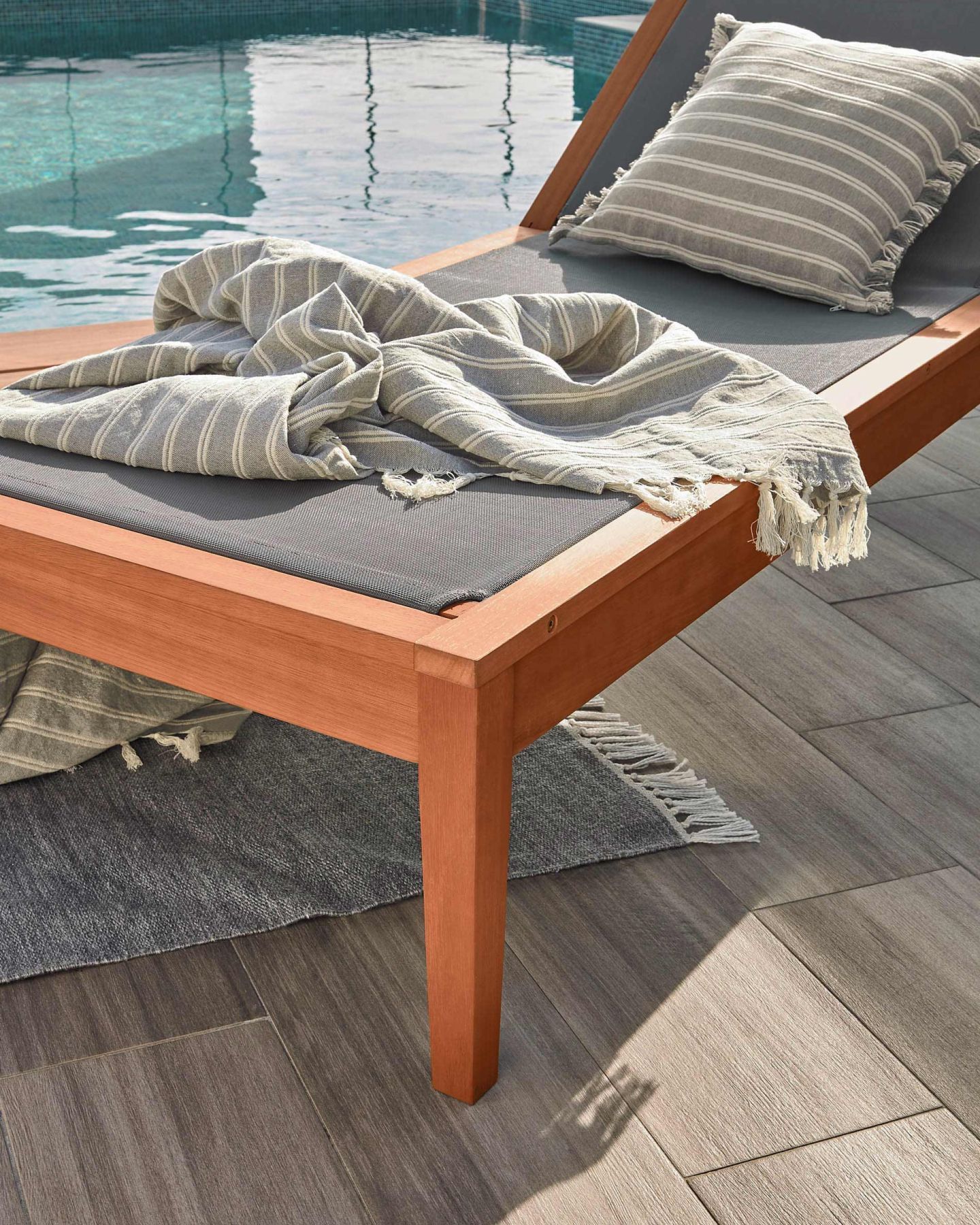 Шезлонг Caterin из эвкалипта от фабрики La Forma (ex Julia Grup) – позвольте себе красивый отдых у бассейна. Шезлонг Caterin сочетает в себе два важных свойства – это уникальную красоту эвкалипта и практичность верхнего покрытия. Такое изделие не смутят прямые солнечные лучи и брызги из бассейна. Поэтому наслаждайтесь уикендом возле дома в полном комфорте, в любом положении тела. Шезлонг полностью выполнен из массива эвкалипта. Древесина покрыта лаком цвета тикового дерева, который защищает ее от негативного воздействия влаги и солнца. Конструкция включает задние колеса диаметром 15 см, которые окантованы пластичными шинами для защиты древесины от деформации и улучшения динамики. Благодаря им, вы сможете легко перекатывать шезлонг, почти не прилагая физических усилий. Передние ножки сделаны в виде квадратных брусков с шириной грани 5 см. Спинка регулируется по высоте. Верхнее покрытие представляет собой синтетическую плотную сетку темно-зеленого или молочного цвета (зависит от выбранной модели). Она не портится от влаги, не теряет цвет от воздействия солнечных лучей, простая в уходе. Допустимая весовая нагрузка на шезлонг – 130 кг. Размеры: ширина – 70 см, высота – от 70 до 94 см (зависит от положения спинки), глубина – 200 см, глубина сиденья – 120 см. Вес изделия – 14 кг. Потребуется самостоятельная сборка. Инструкция и крепеж включены в комплектацию.