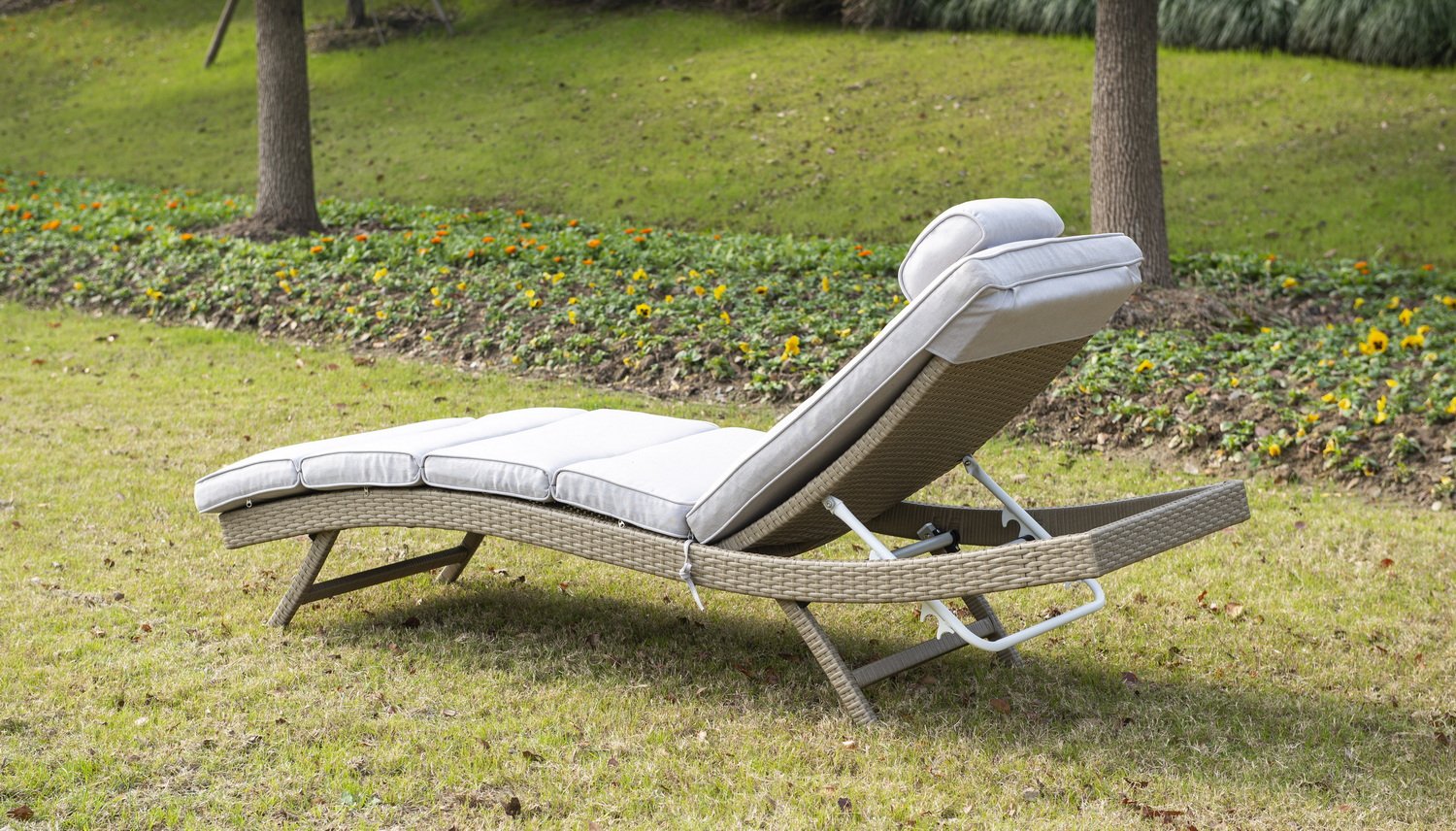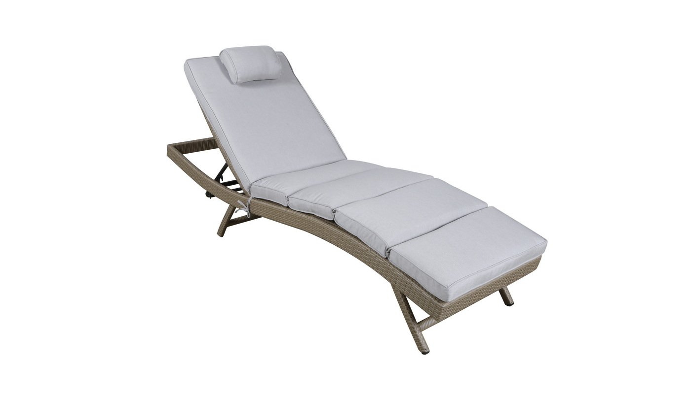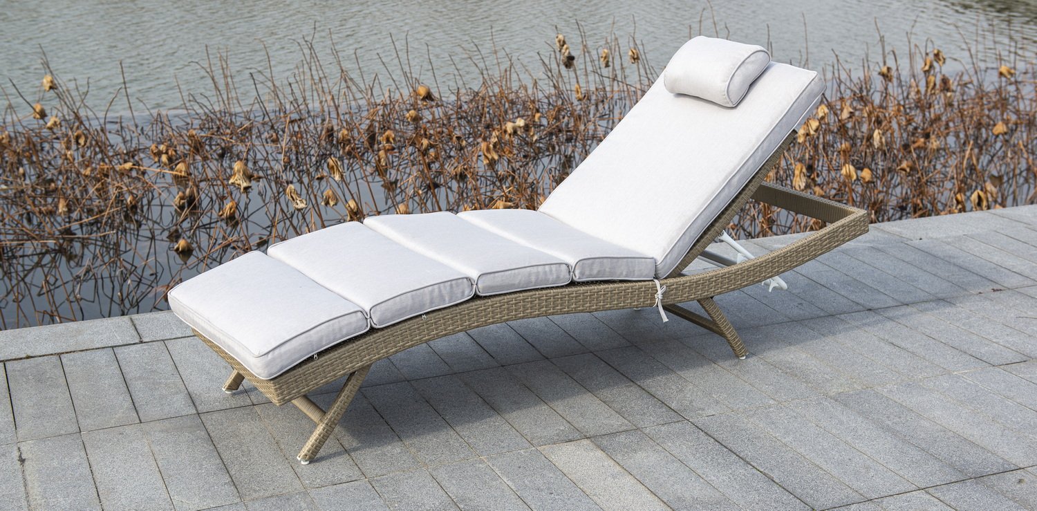 В комплекте прилагается матрас светло-серого цвета из водостойкой ткани.Мебель натуральных расцветок гармонично вписывается на пляже, в саду, на террасе.