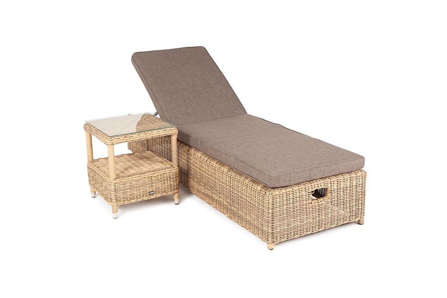 Мебельные изделия выполнены из круглого искусственного ротанга соломенного цвета. Легкость и прочность обеспечивает каркас из алюминия, который способен выдержать до 150 кг.